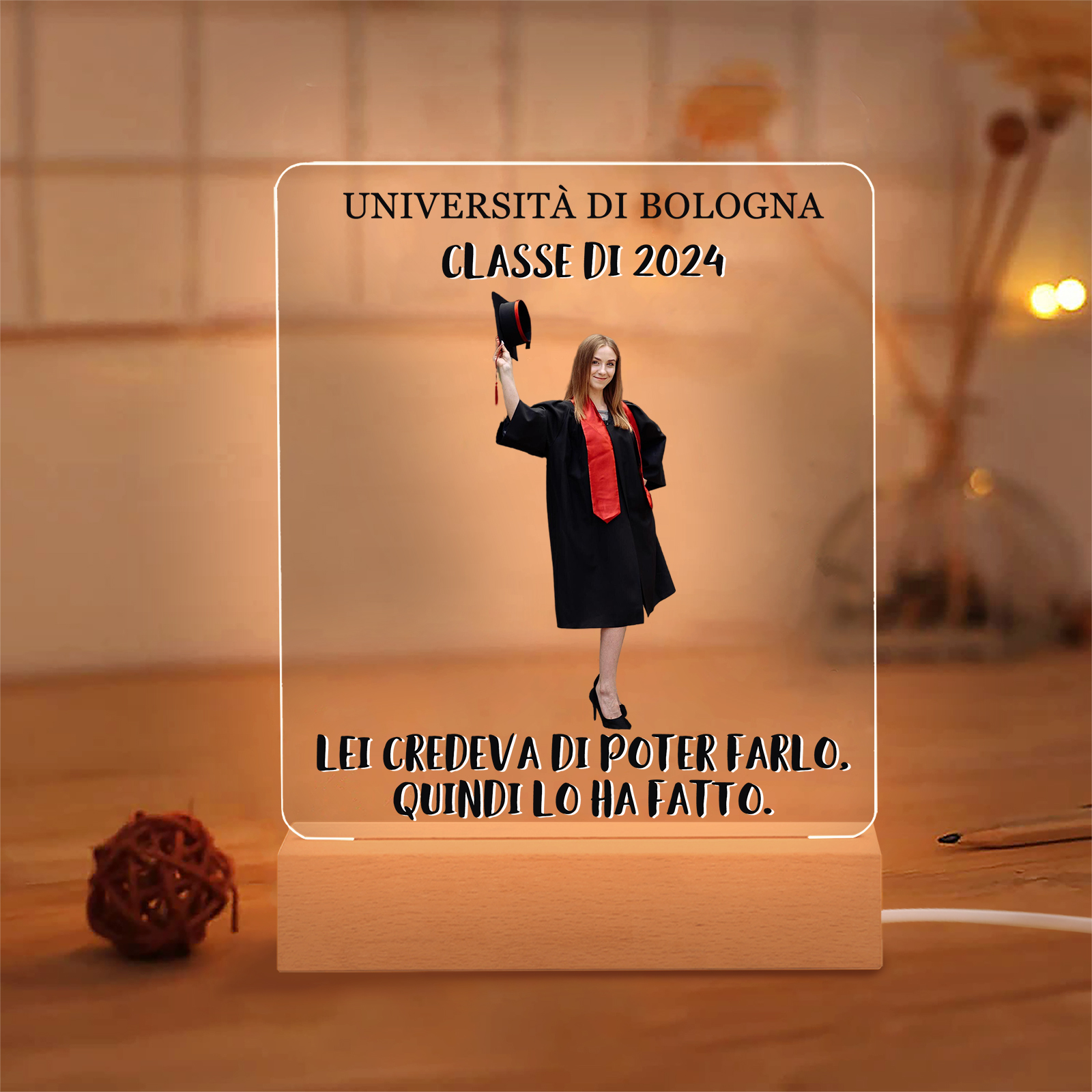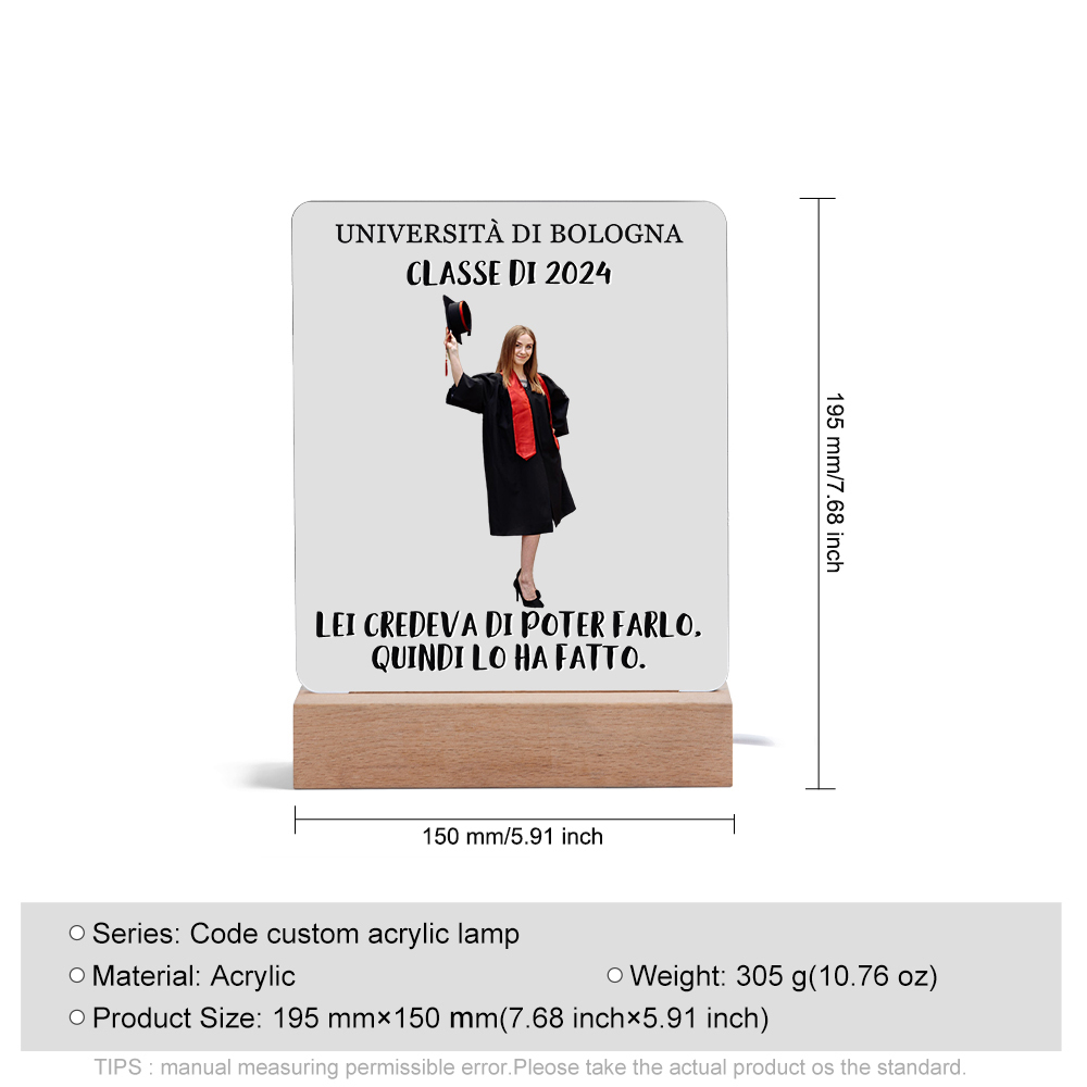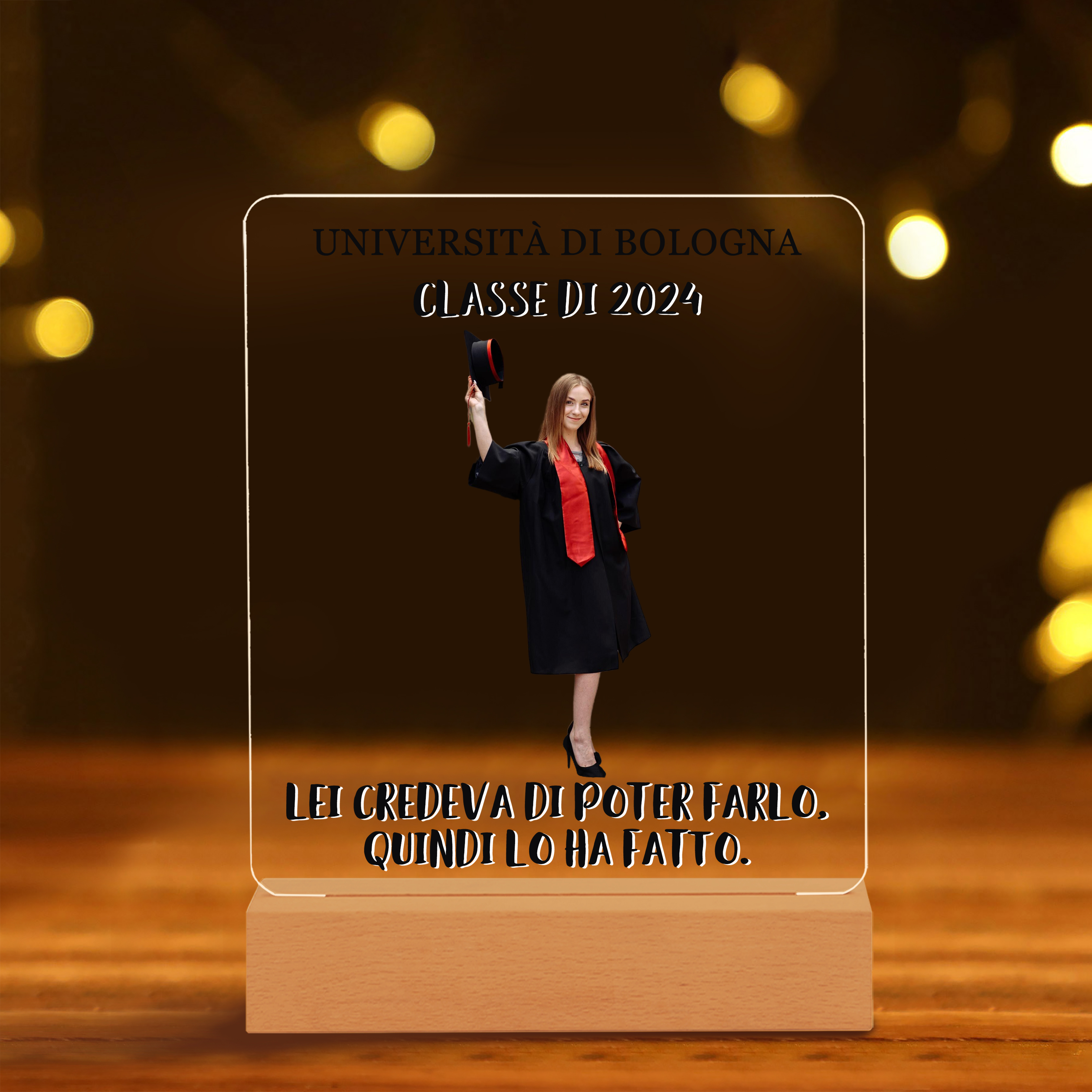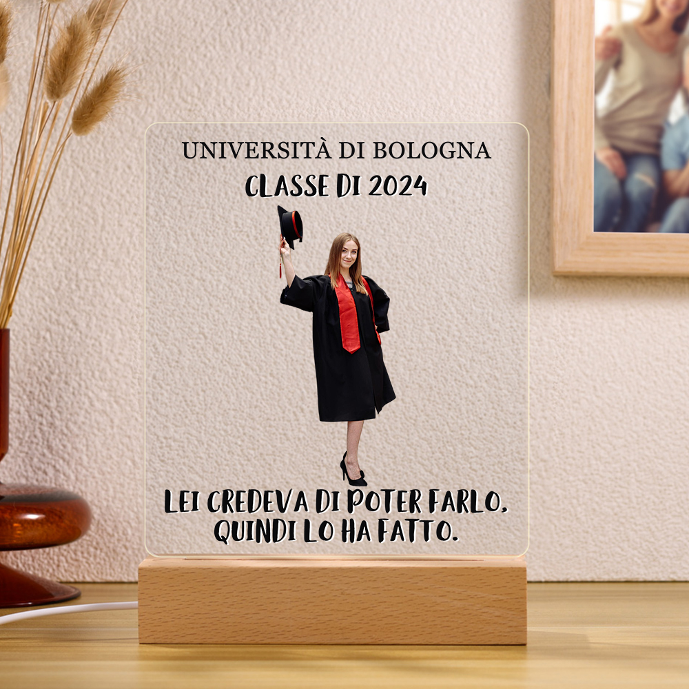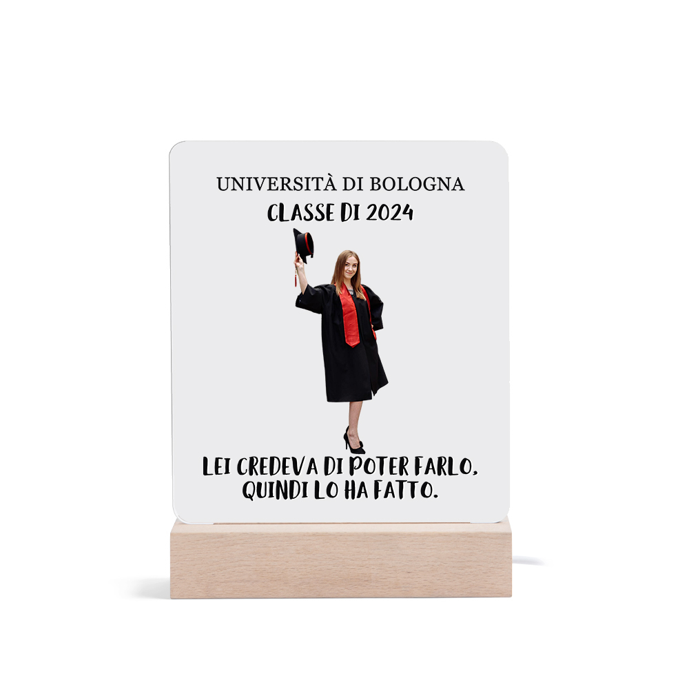 Lampada acrilica con 1 foto e 2 testi personalizzati regalo di laurea