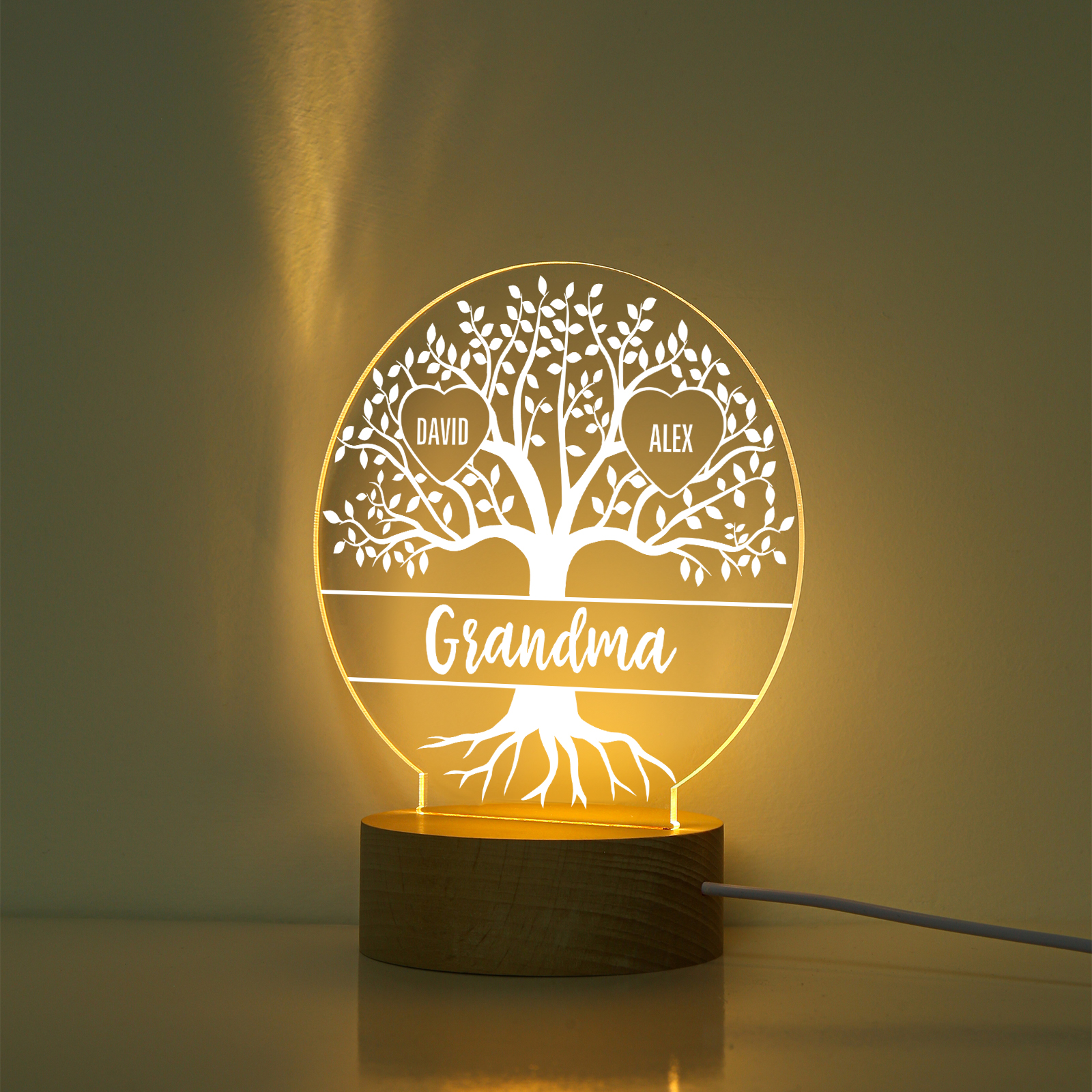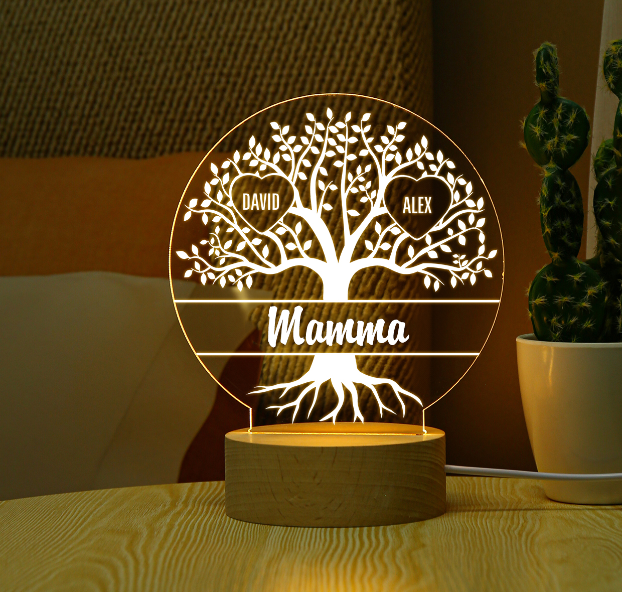 Lampada acrilica con albero di vita 3 nomi personalizzabili per mamma/nonna