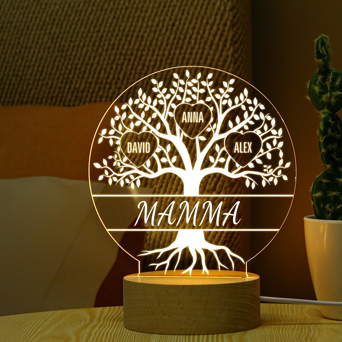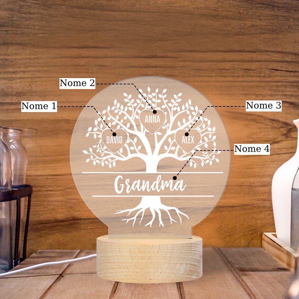 Lampada acrilica con albero di vita 4 nomi personalizzabili per mamma/nonna