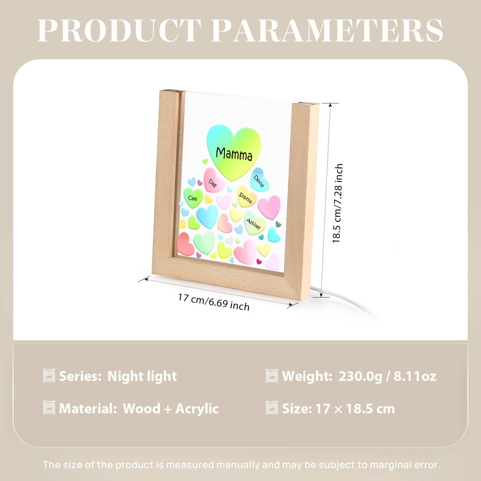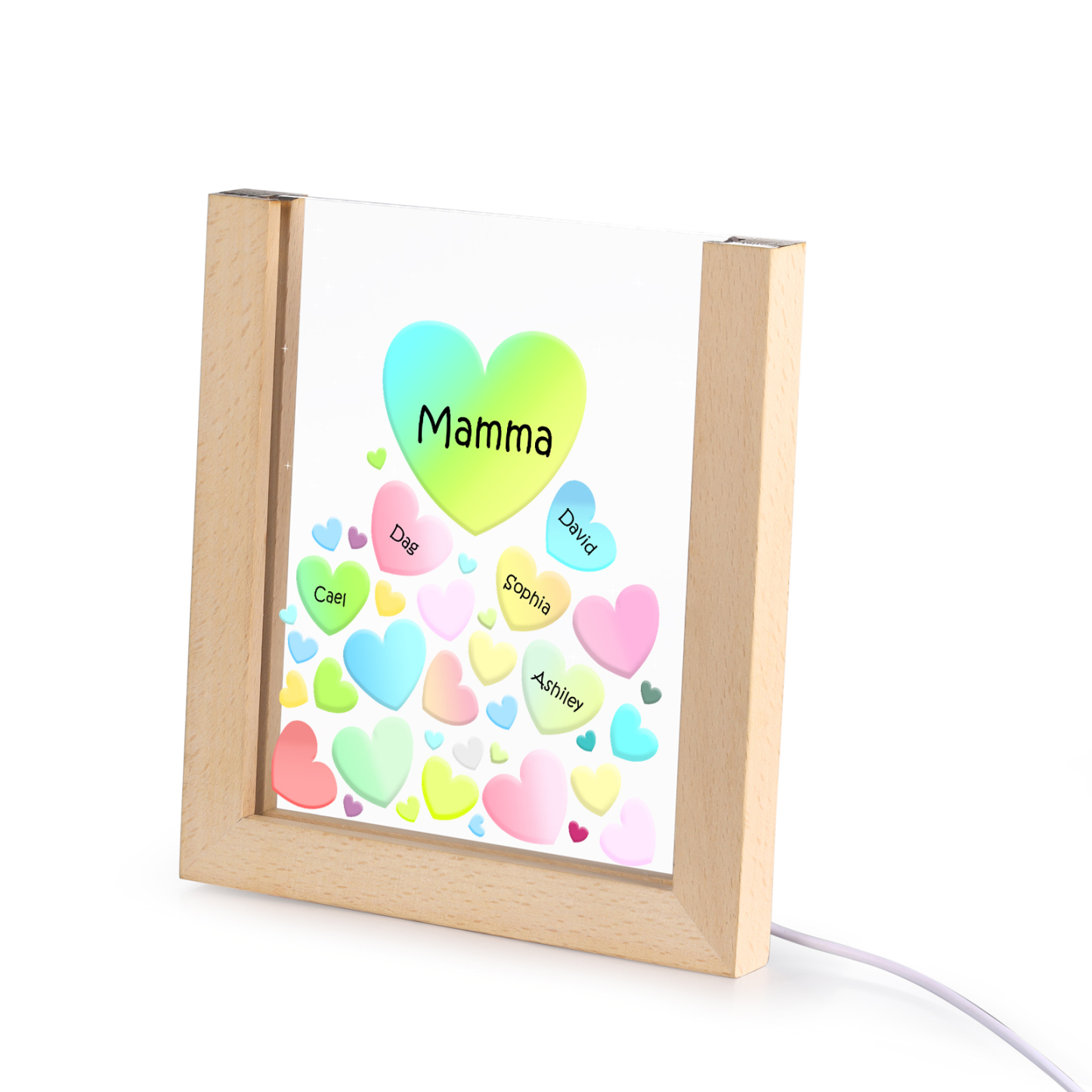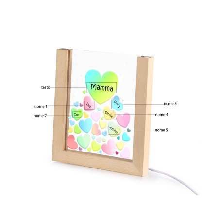 Lampada acrilica con cuore colorato 5 nomi e 1 testo personalizzabili per mamma/nonna