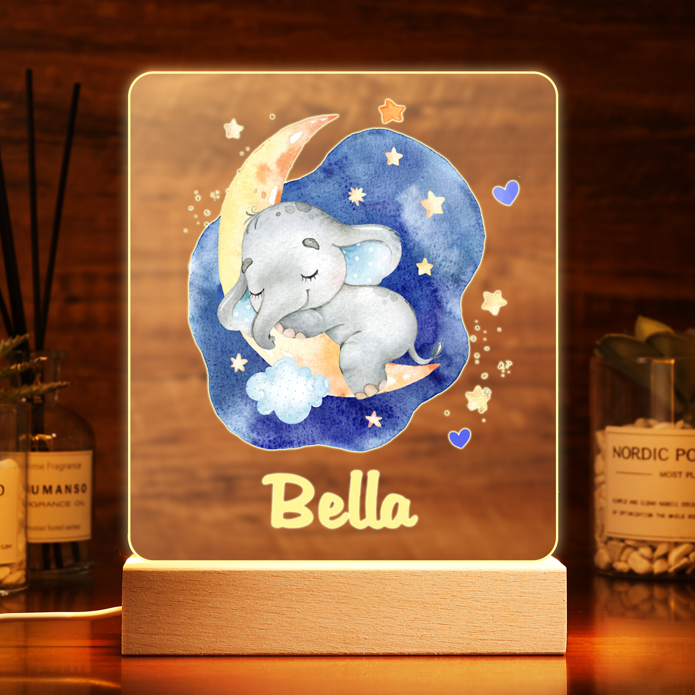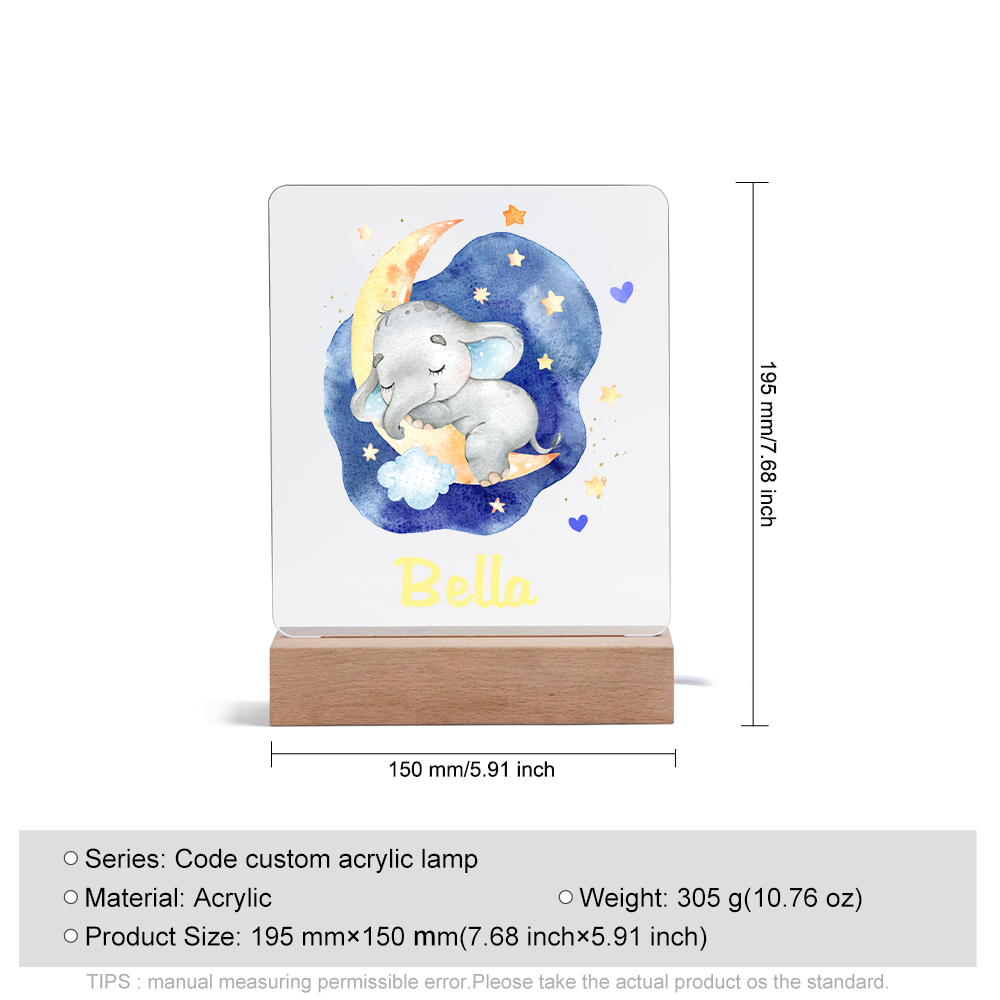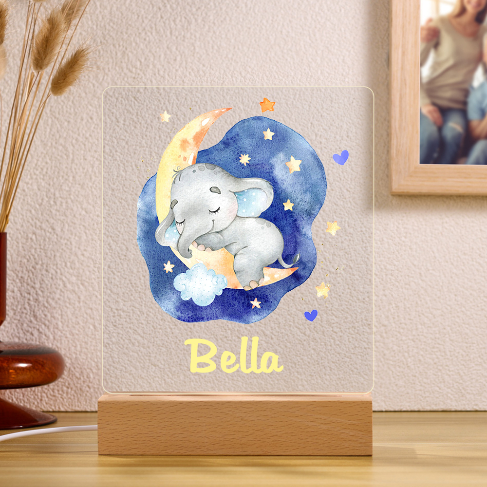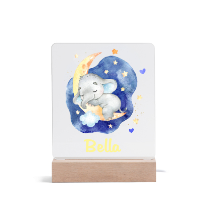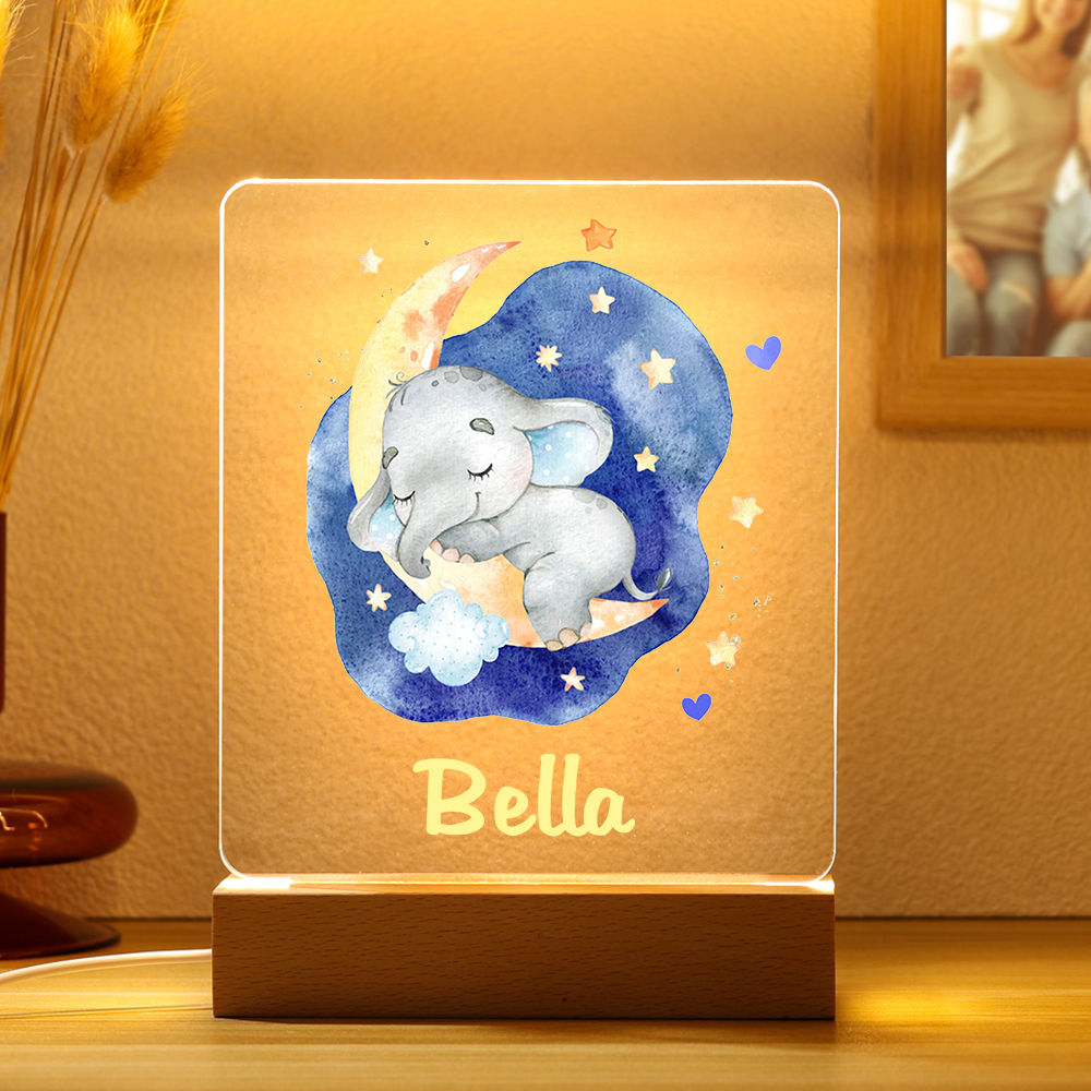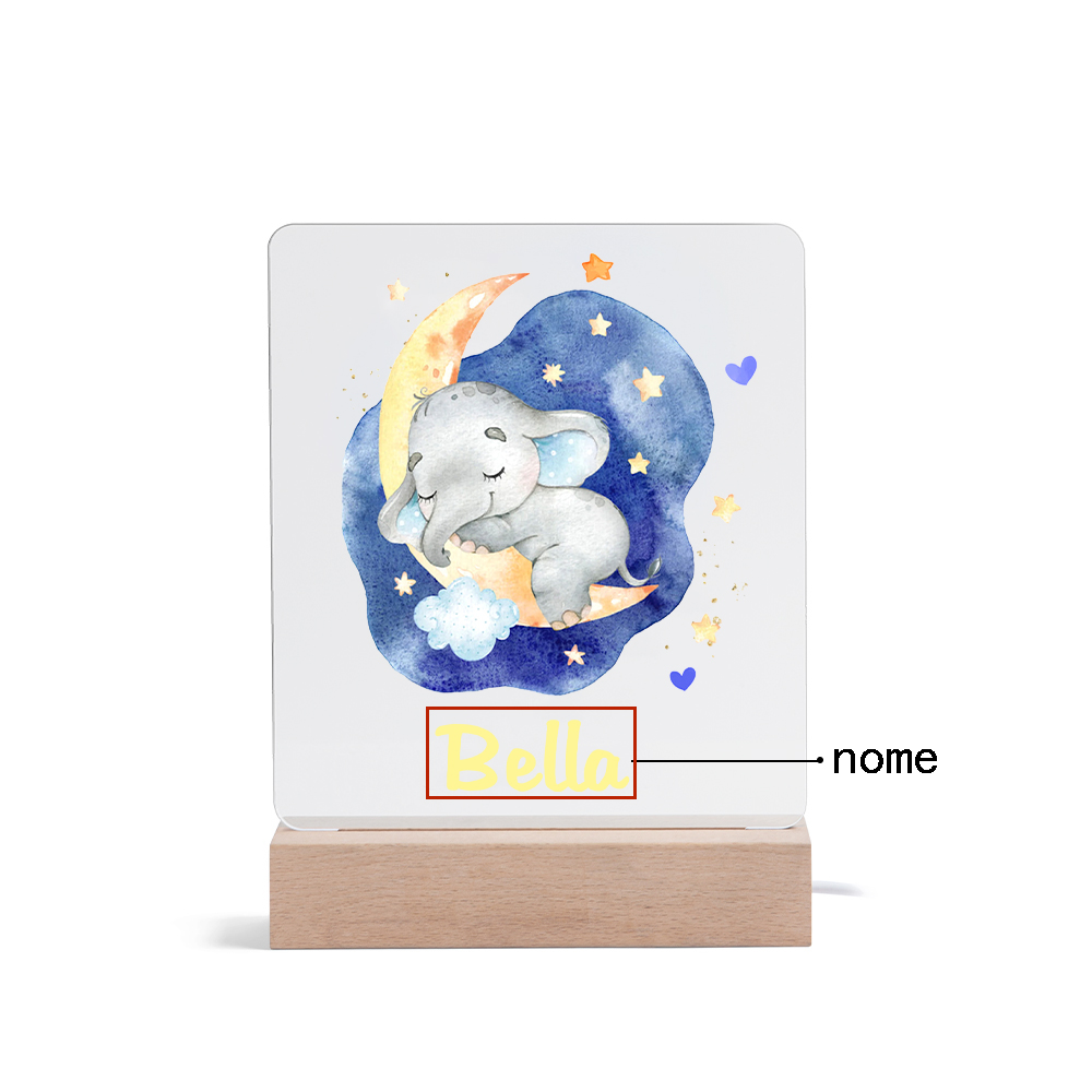 Lampada acrilica con elefantino blu per i bambini 1 nome personalizzabile