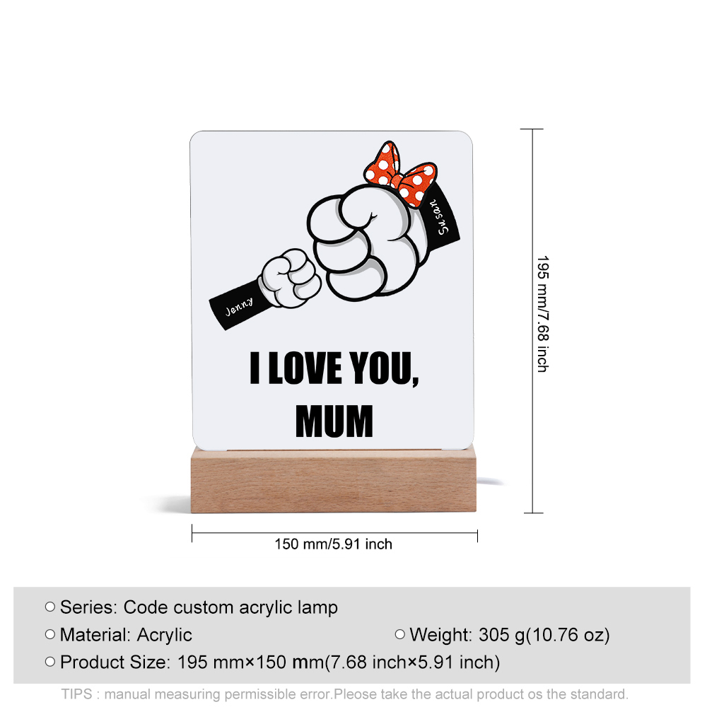 Lampada acrilica pugno a pugno 2 nomi e 1 testo personalizzabili per mamma