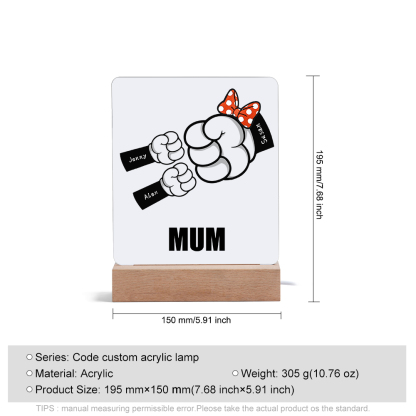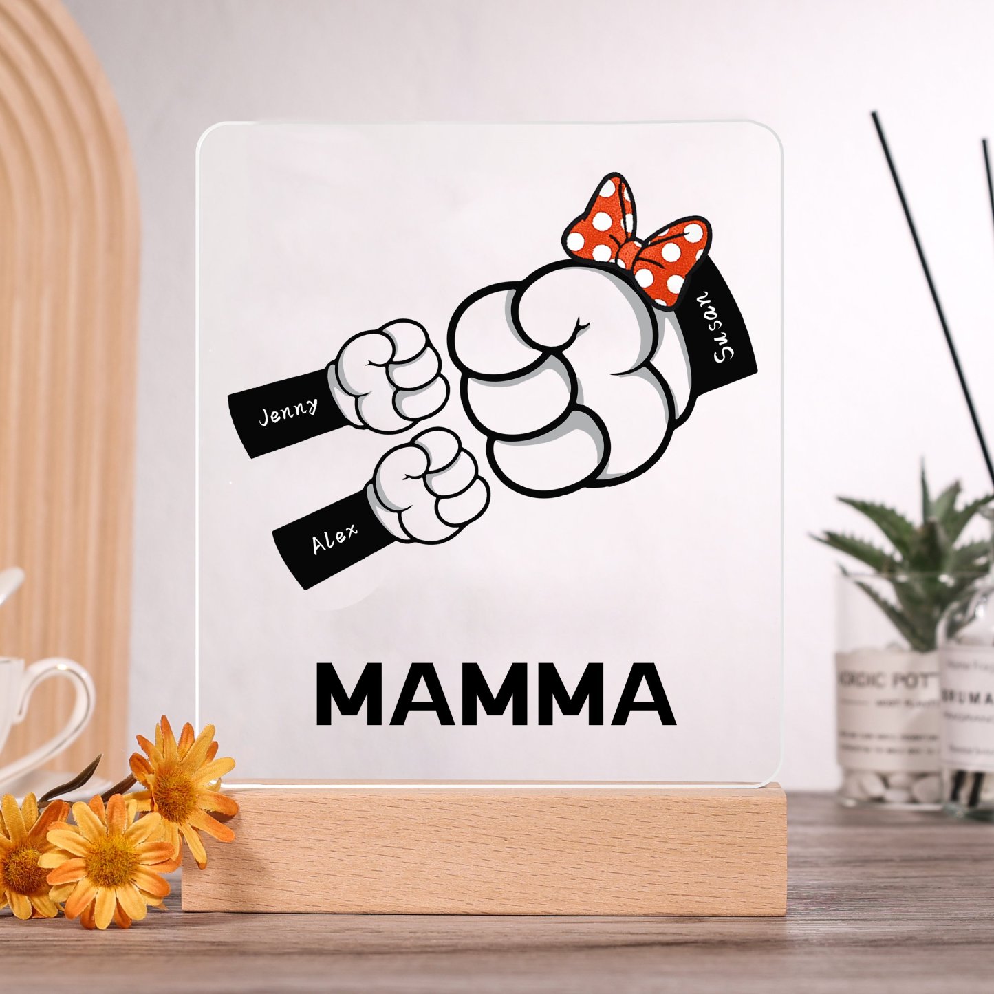 Lampada acrilica pugno a pugno 3 nomi e 1 testo personalizzabili per mamma