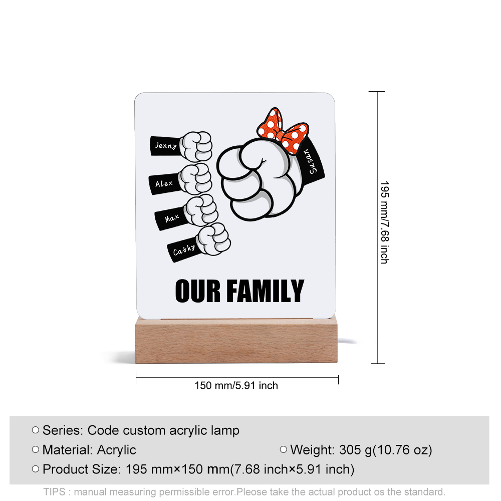 Lampada acrilica pugno a pugno 5 nomi e 1 testo personalizzabili per mamma