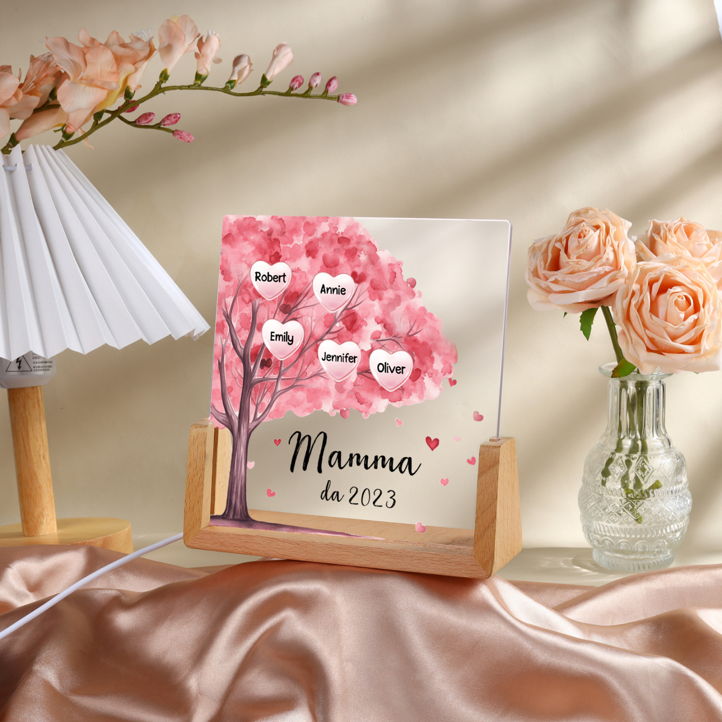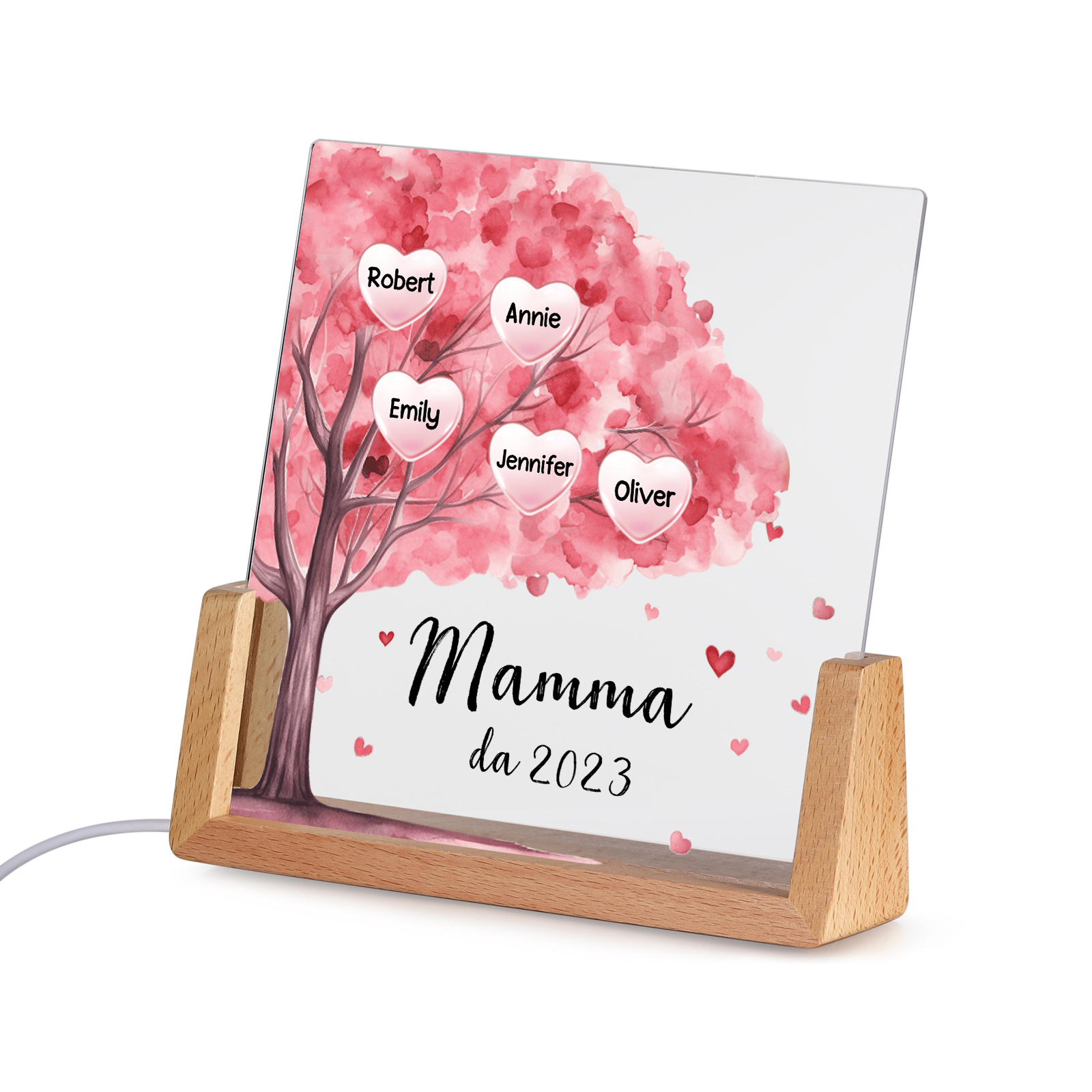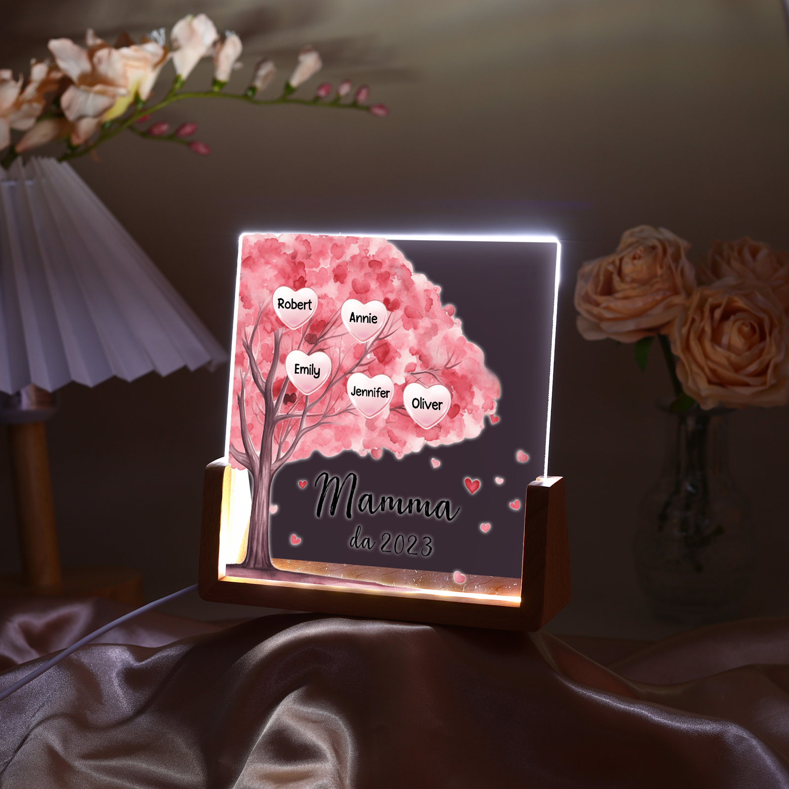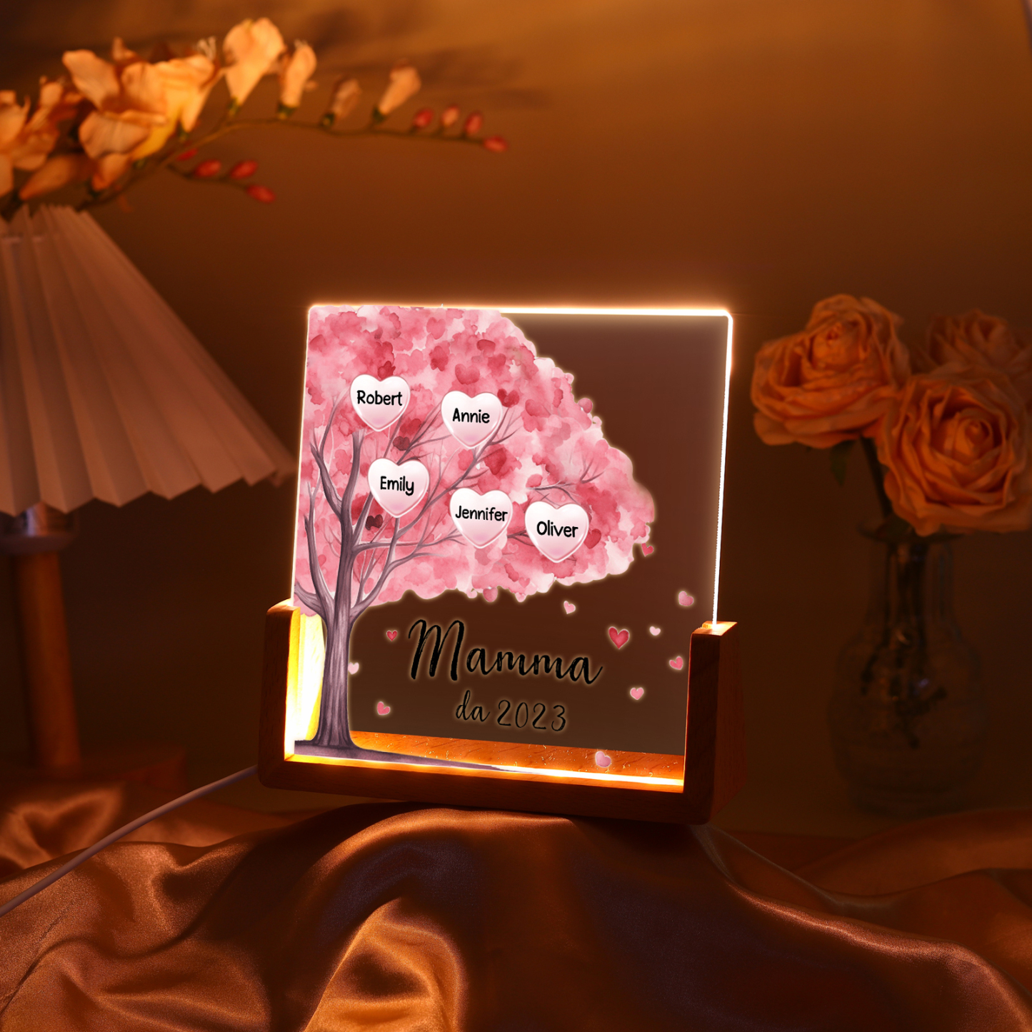 Lampada albero di cuore rosa con 3 tipi di colori di LED luce 5 nomi e 1 testo e 1 data personalizzati per mamma/nonna