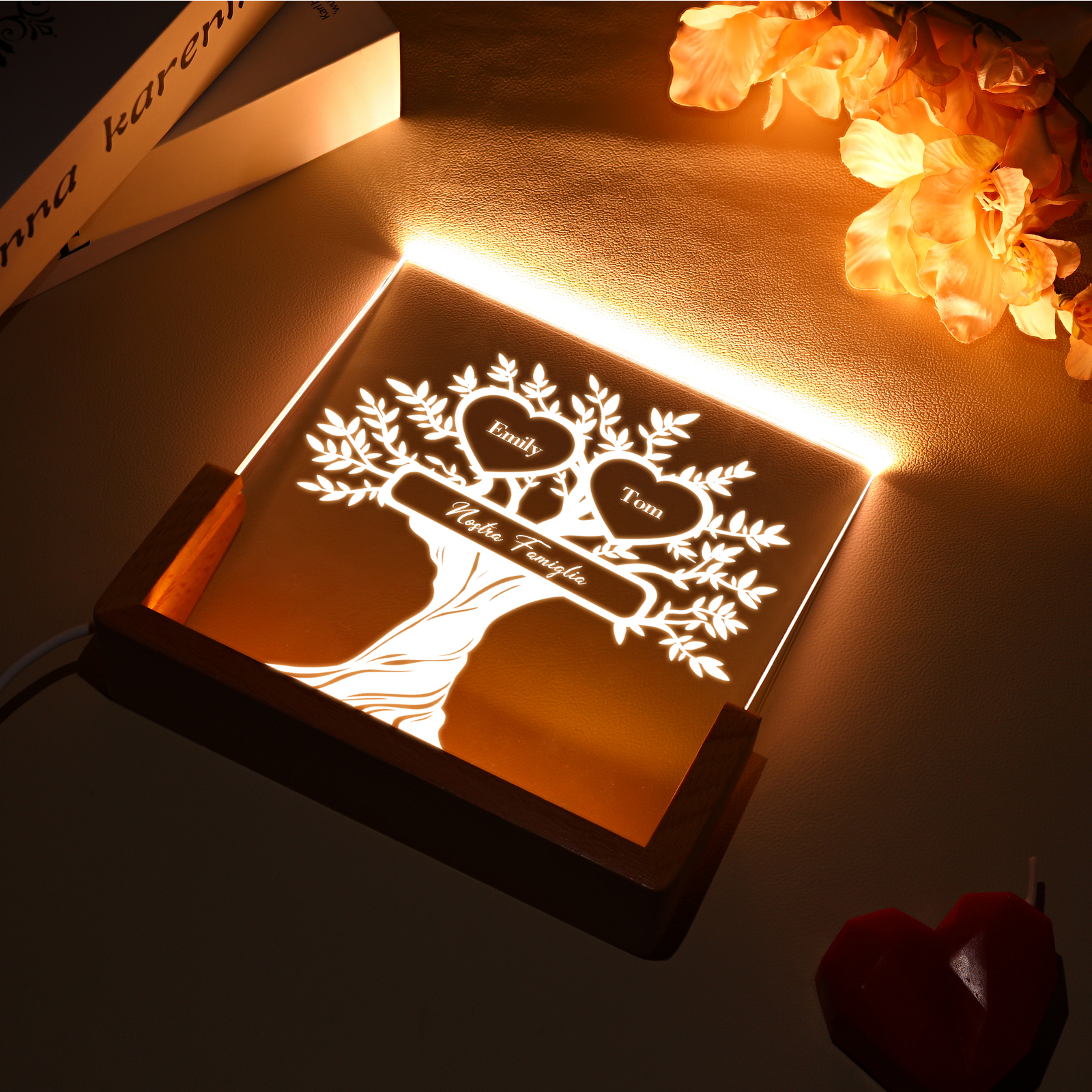 Lampada albero di vita con 3 tipi di colori di LED luce 2 nomi e 1 testo personalizzati per mamma/nonna