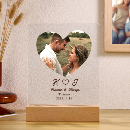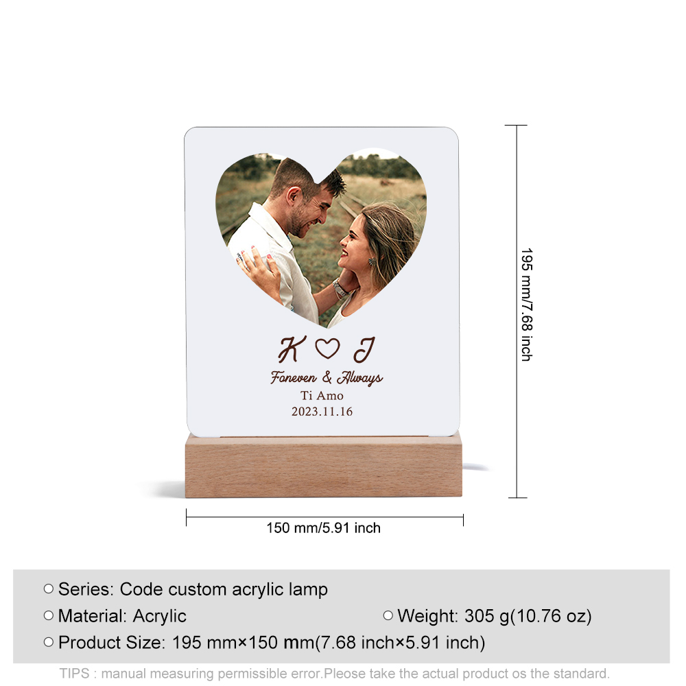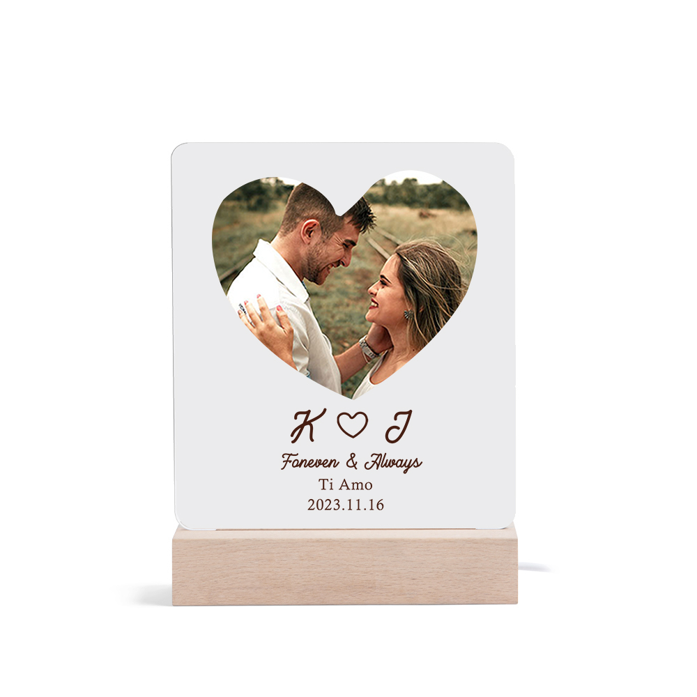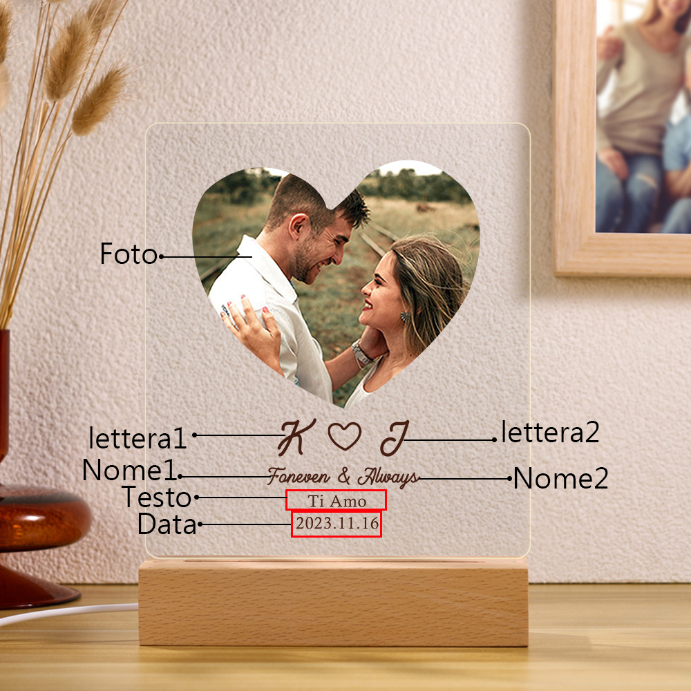 Lampada con 2 nomi 2 lettere1 foto e testo personalizzabile per coppia