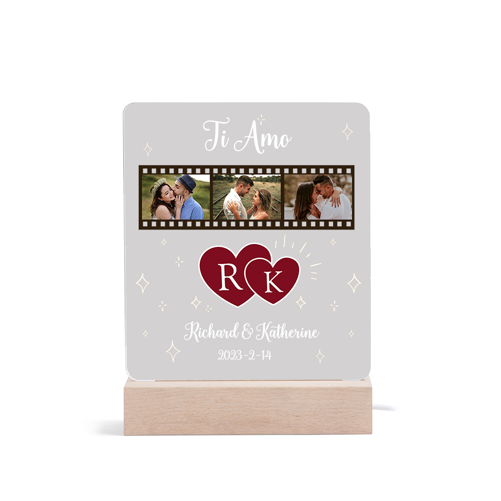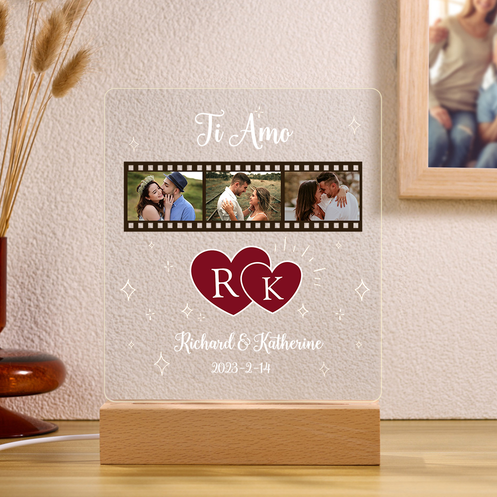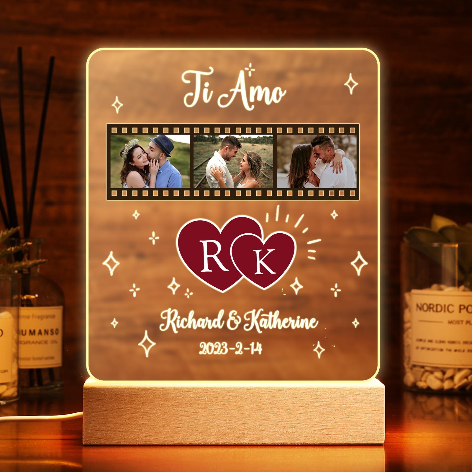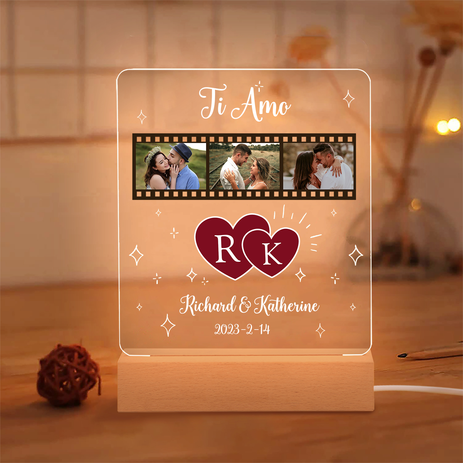 Lampada con 3 foto 2 nomi 2 lettere e testo data personalizzabile per coppia