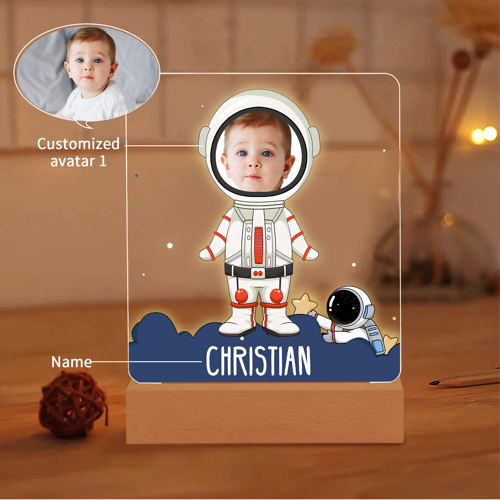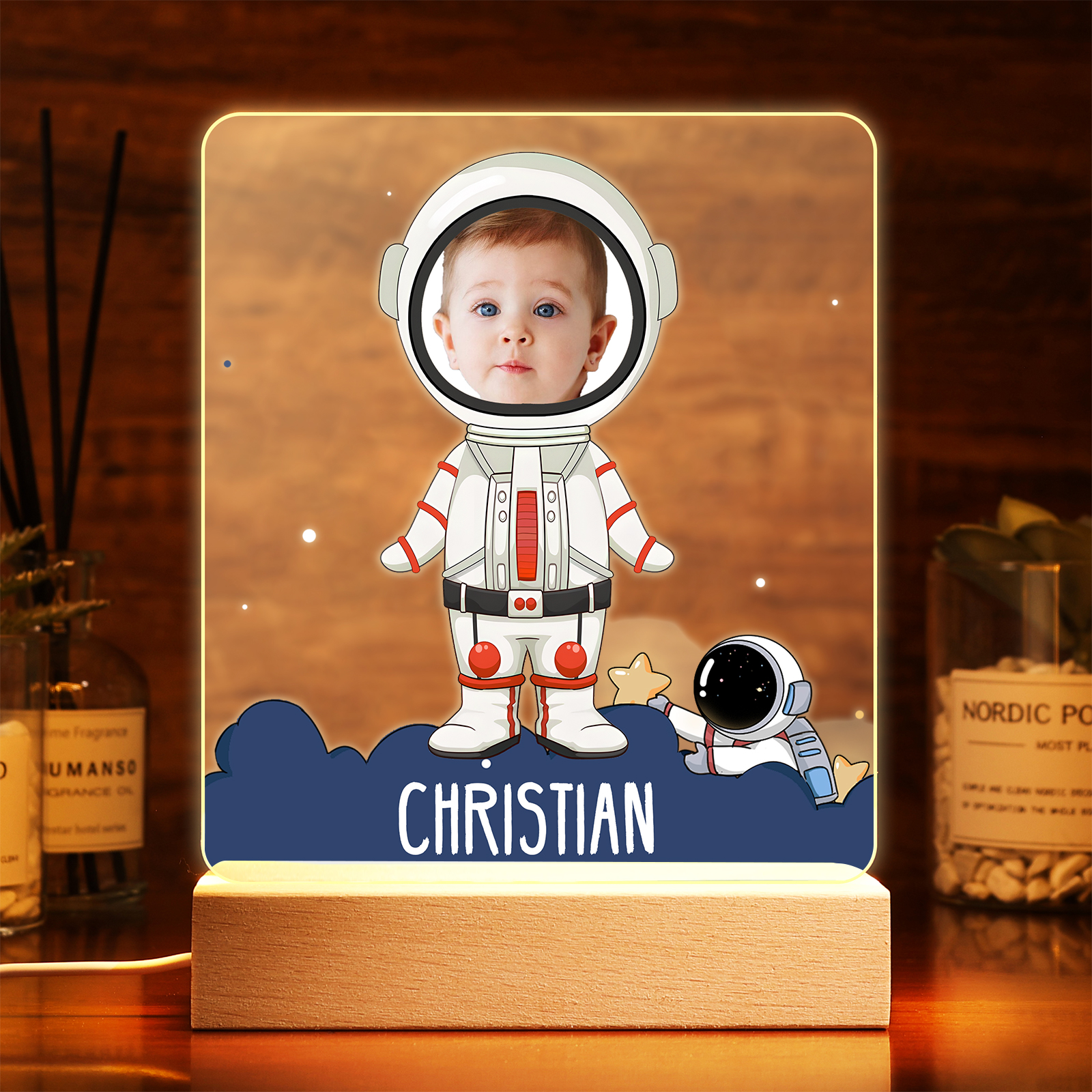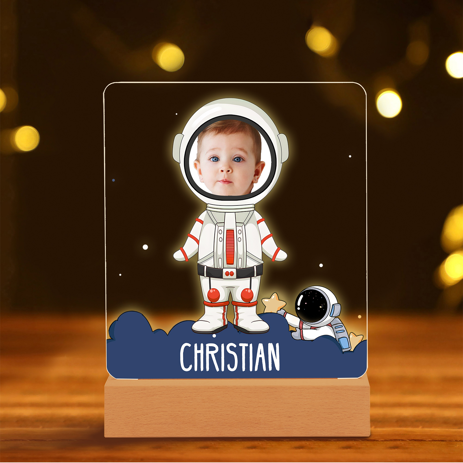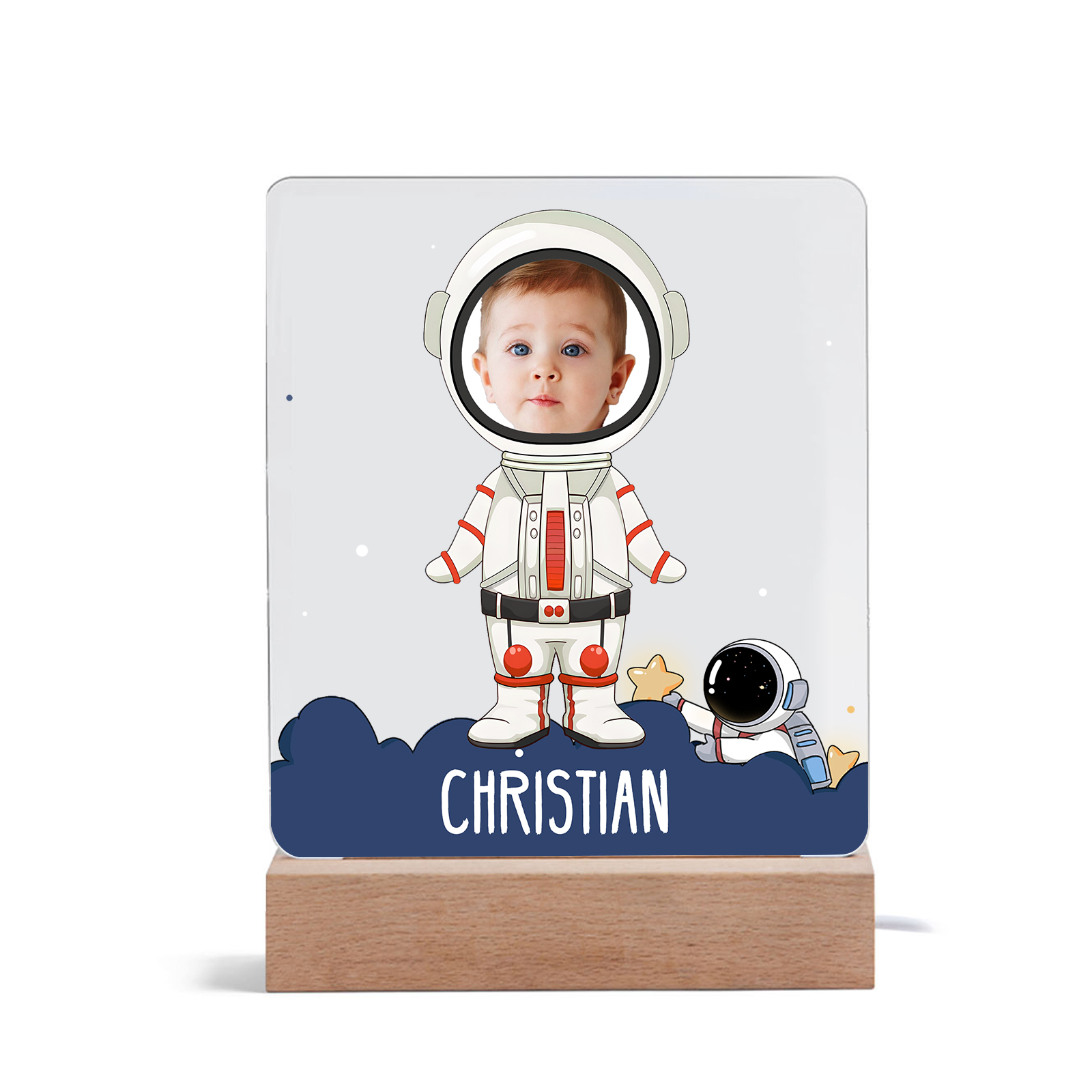 Lampada con astronauta 1 nome e 1 foto personalizzabili per bambino/bambina