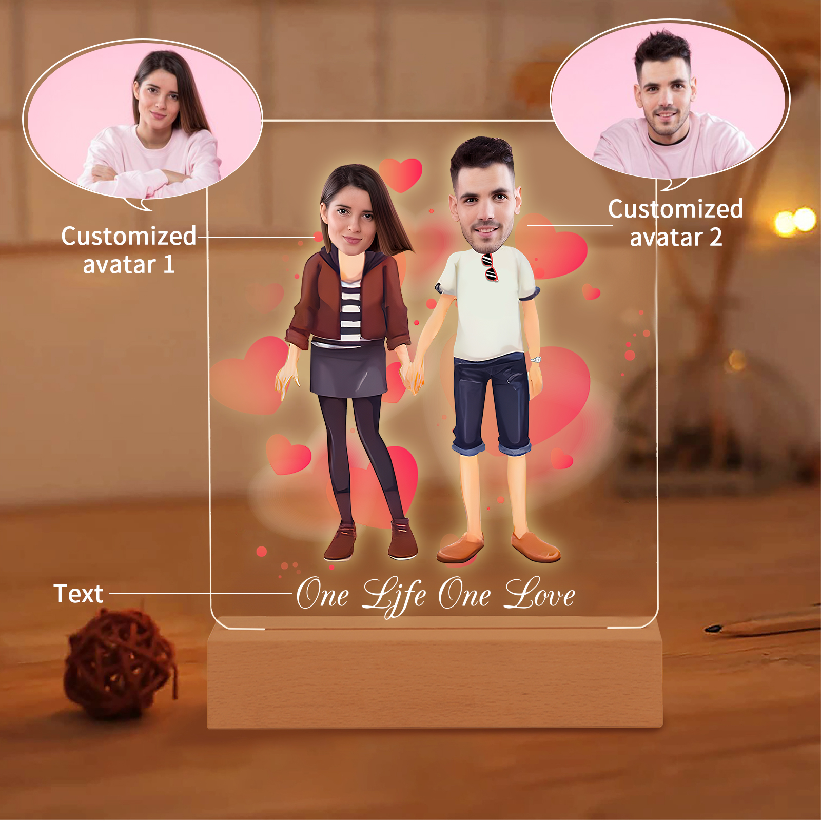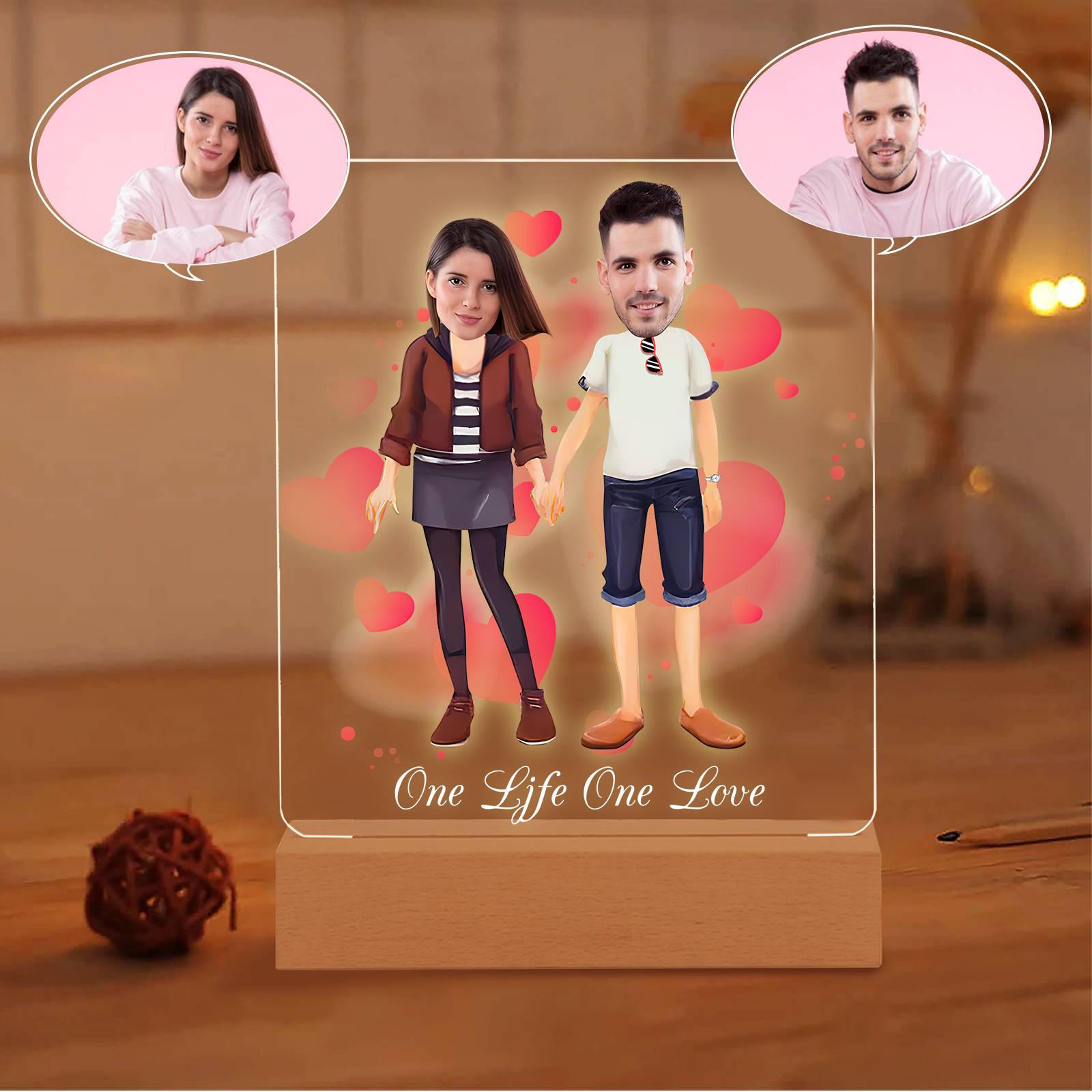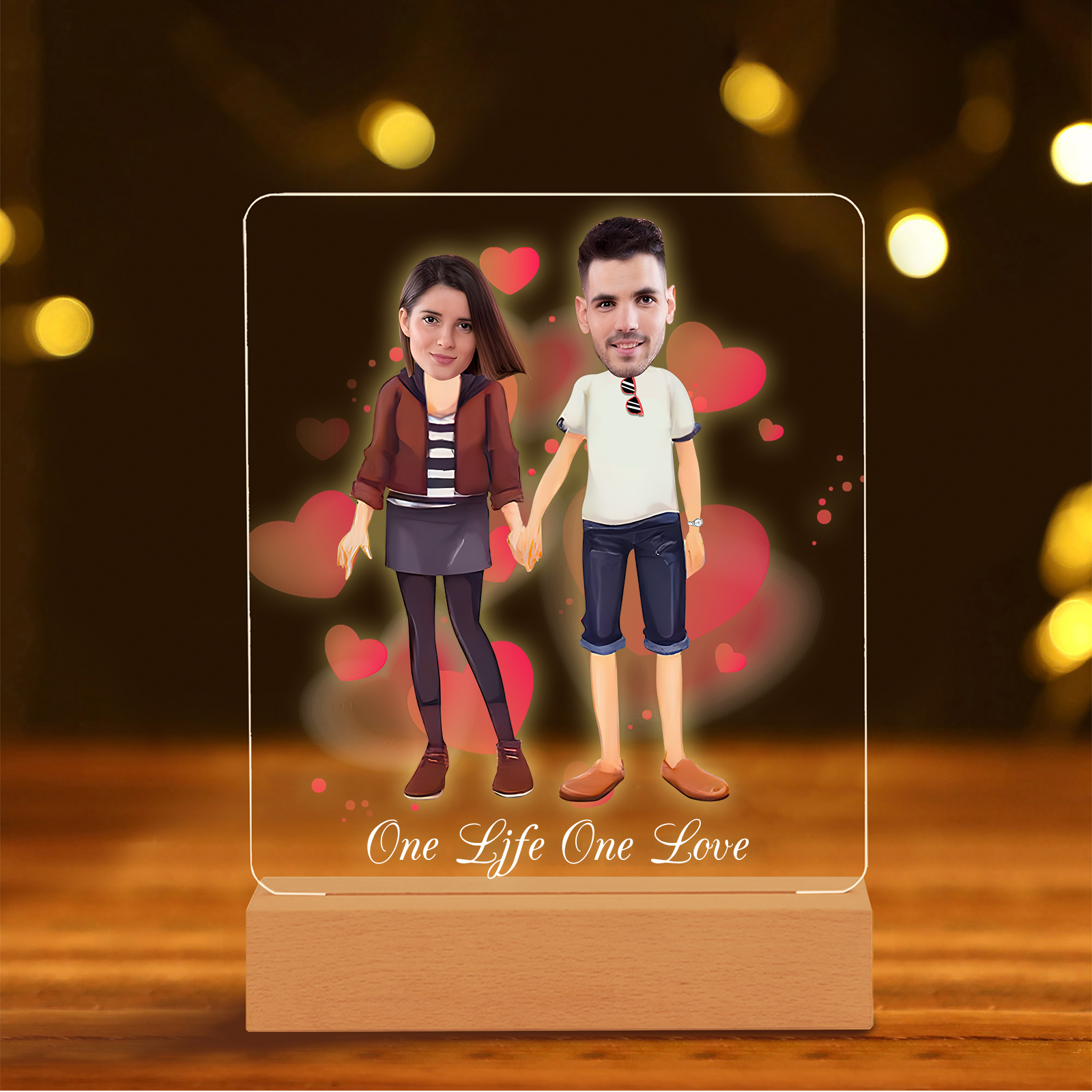 Lampada con coppia mano nella mano 1 testo e 2 foto personalizzabili per bambino/bambina