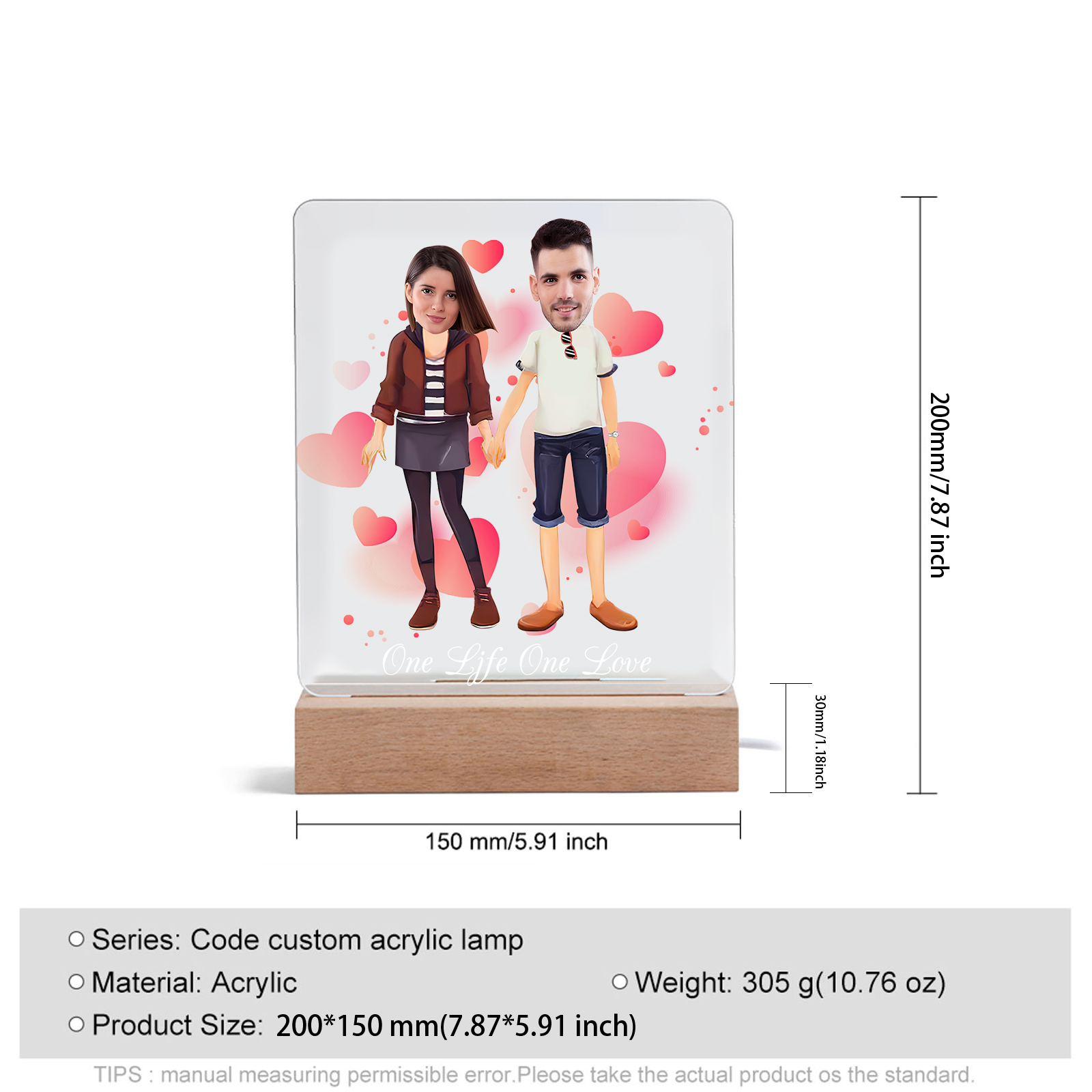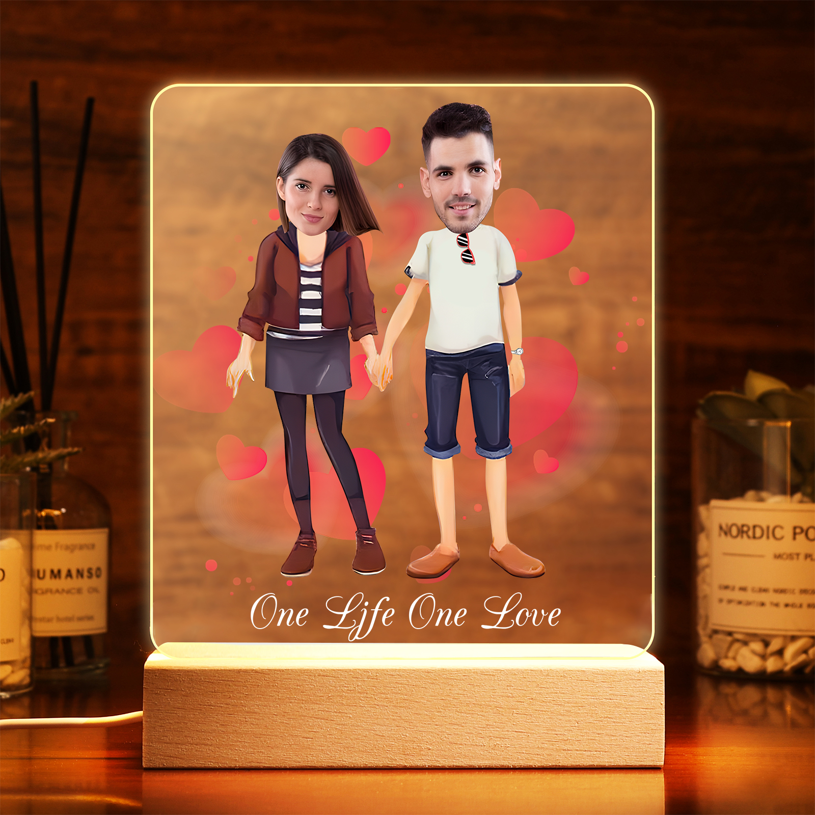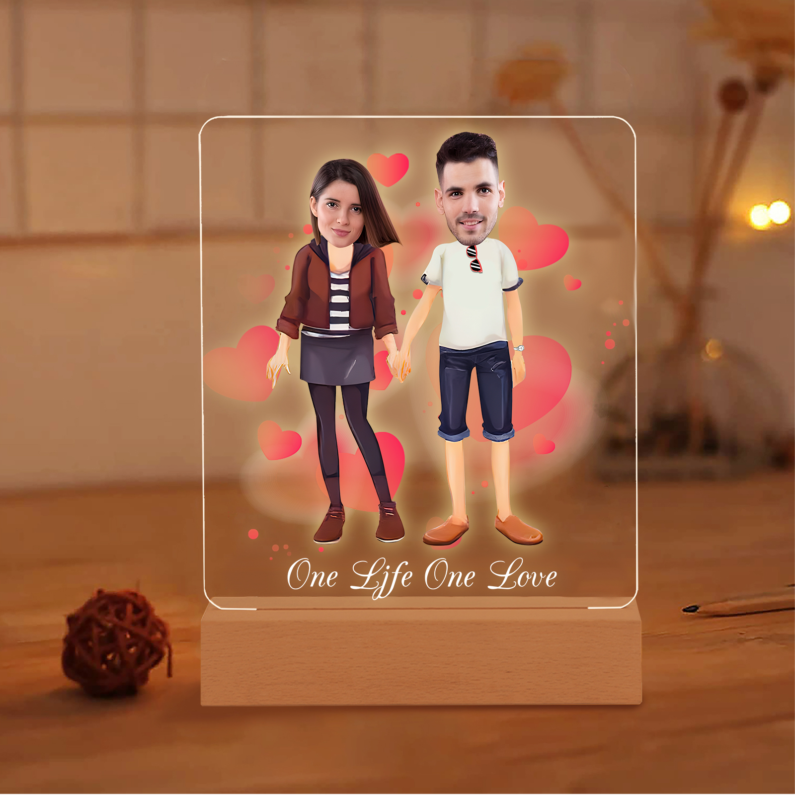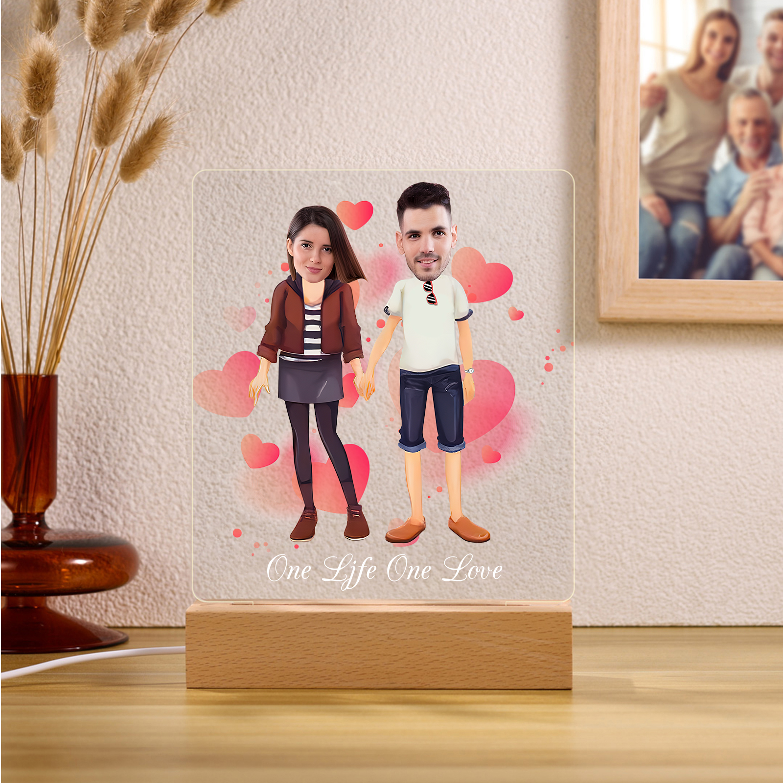 Lampada con coppia mano nella mano 1 testo e 2 foto personalizzabili per bambino/bambina
