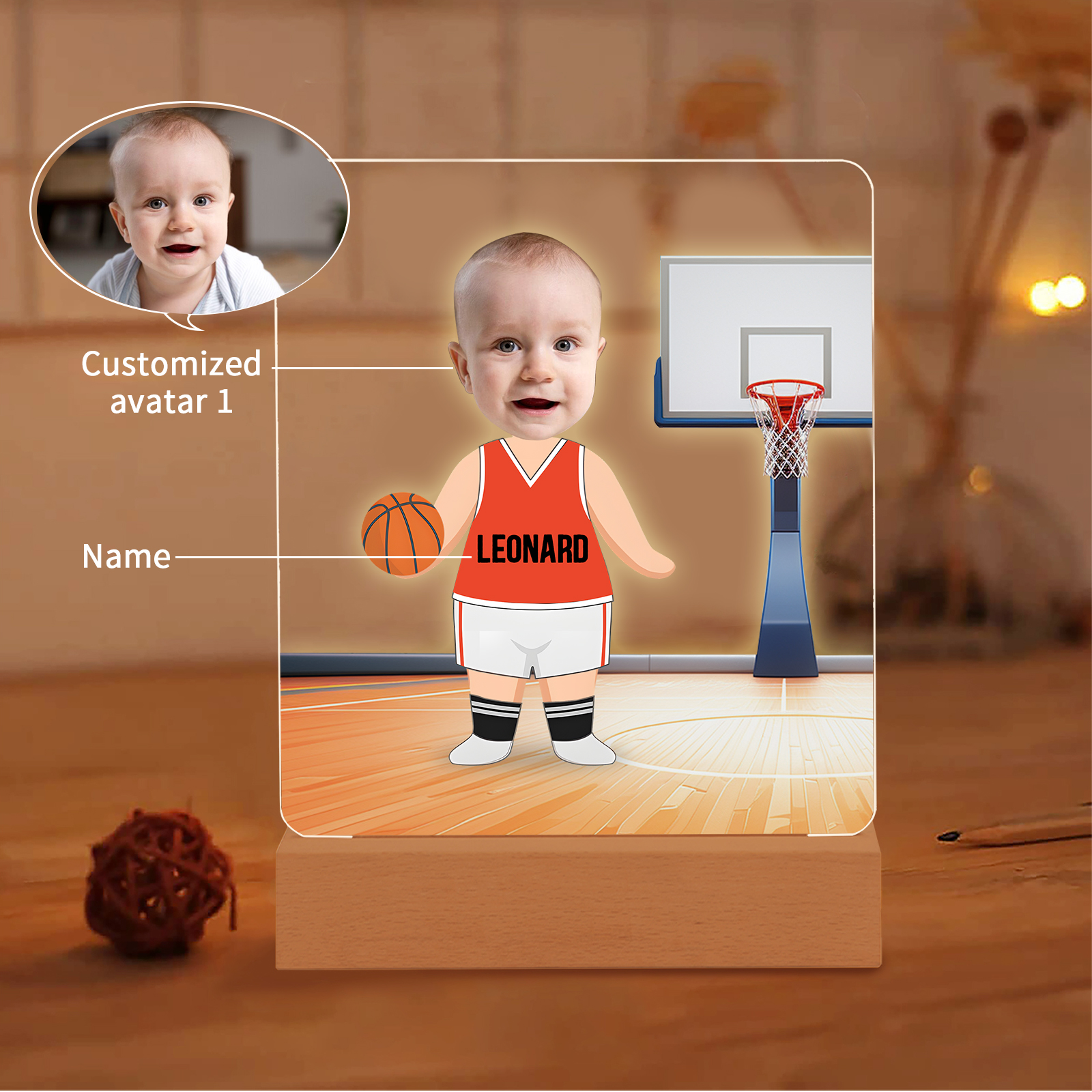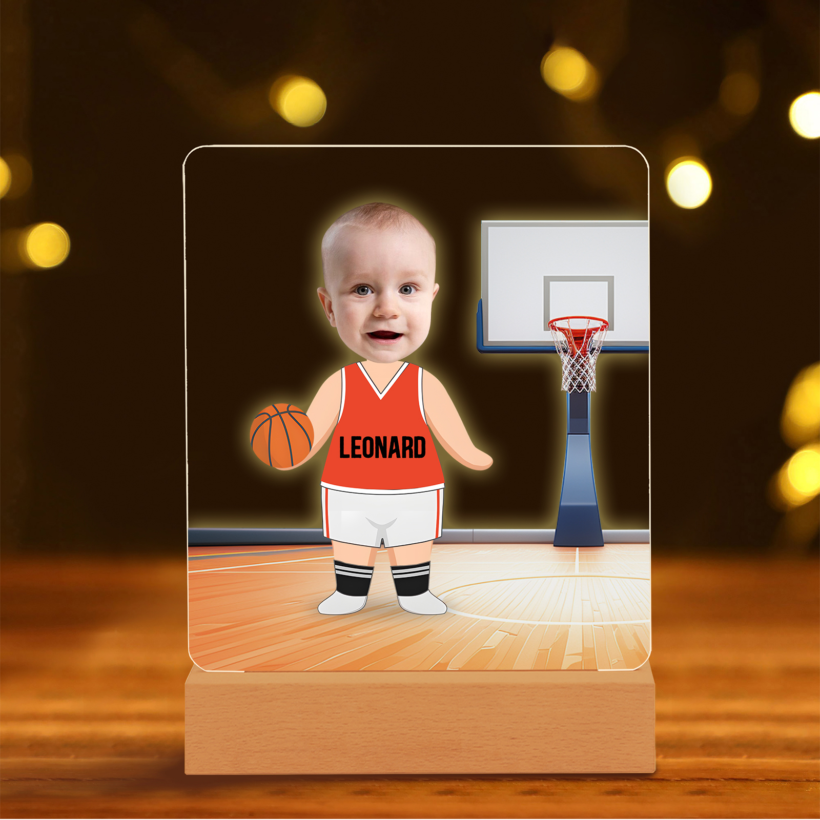 Lampada con giocatore/giocatrice di pallacanestro 1 nome e 1 foto personalizzabili per bambino/bambina
