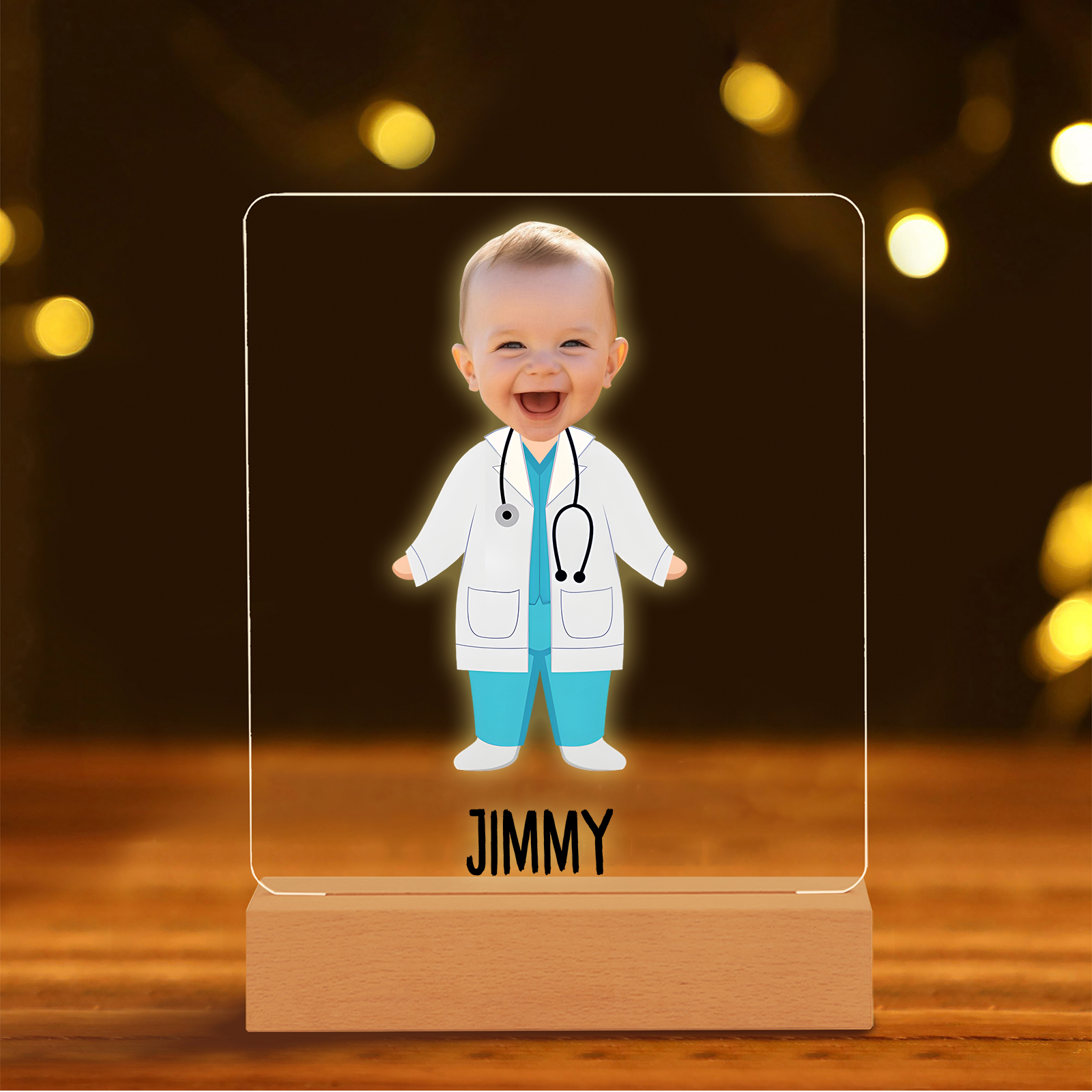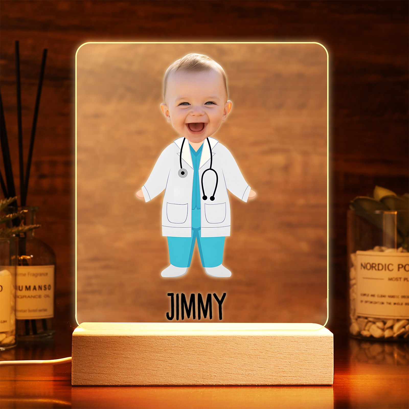 Lampada con medico 1 nome e 1 foto personalizzabili per bambino/bambina