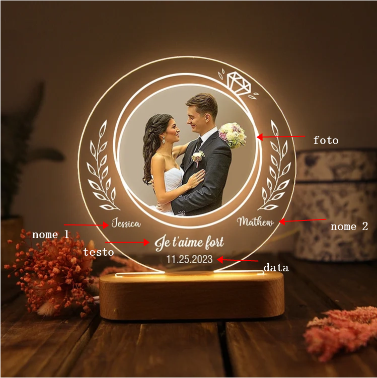 Lampada con un diamante 2 nomi data un testo e foto personalizzabili per coppia