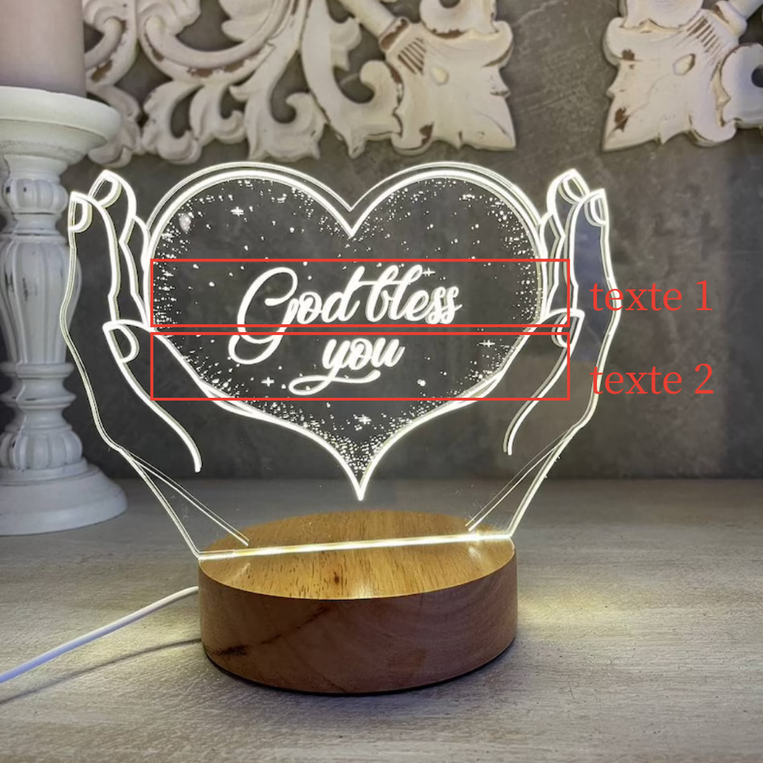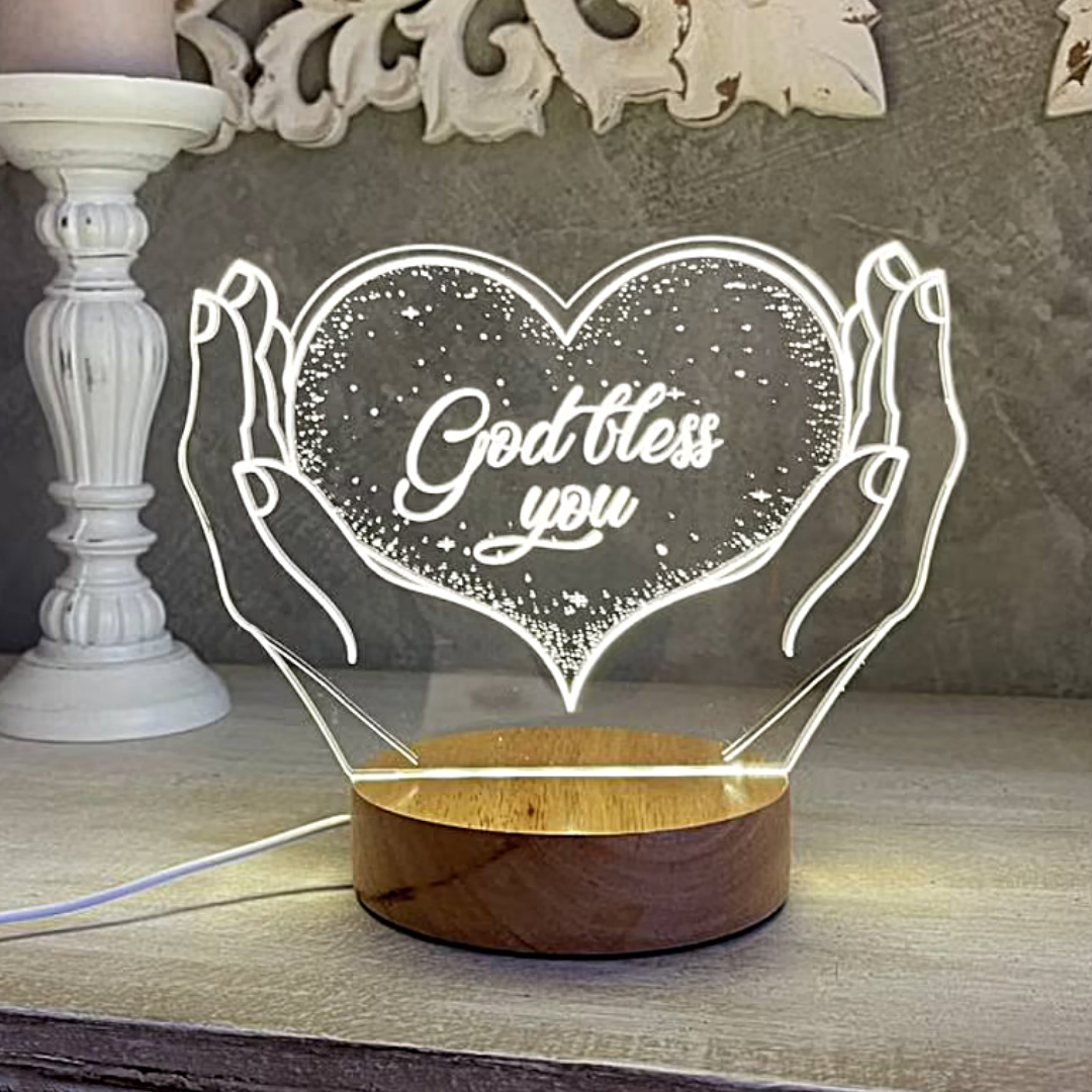 Lampada da comodino Cuore nelle mani LED Luci personalizzate nomi