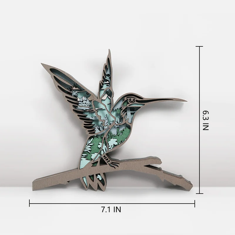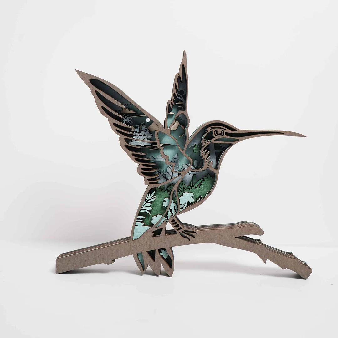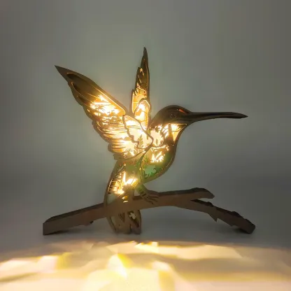 Lampada di legno con luce LED decorazione casa colibrì hummingbird