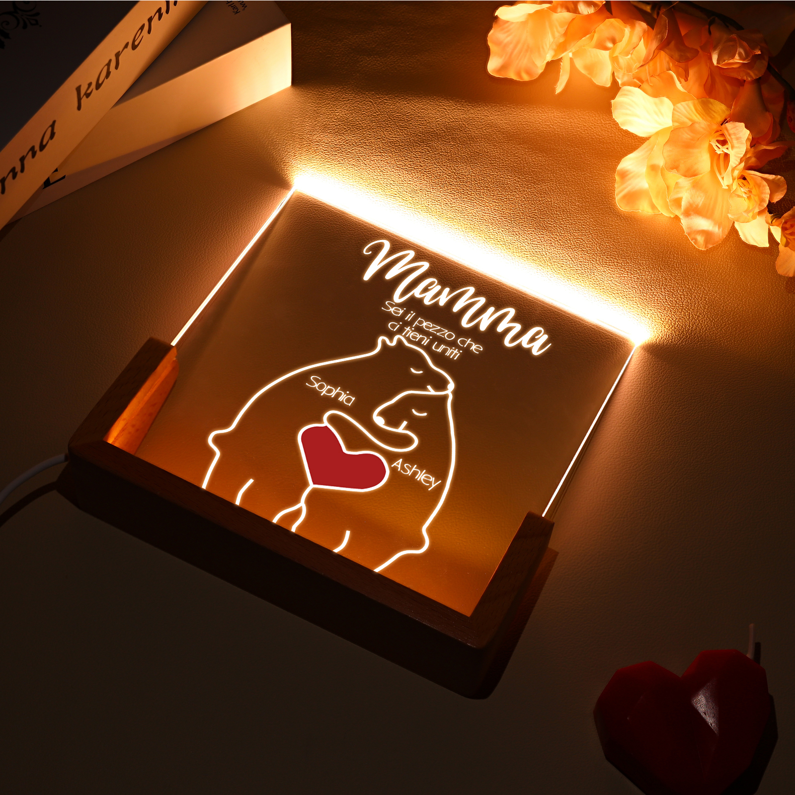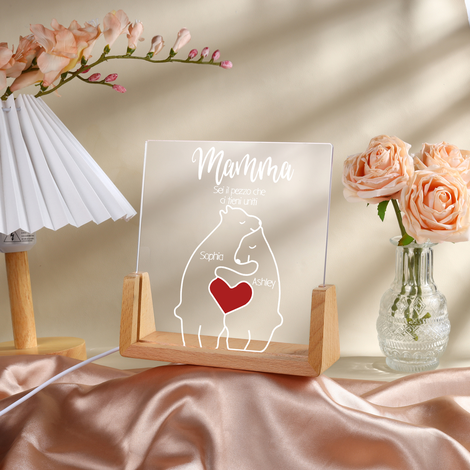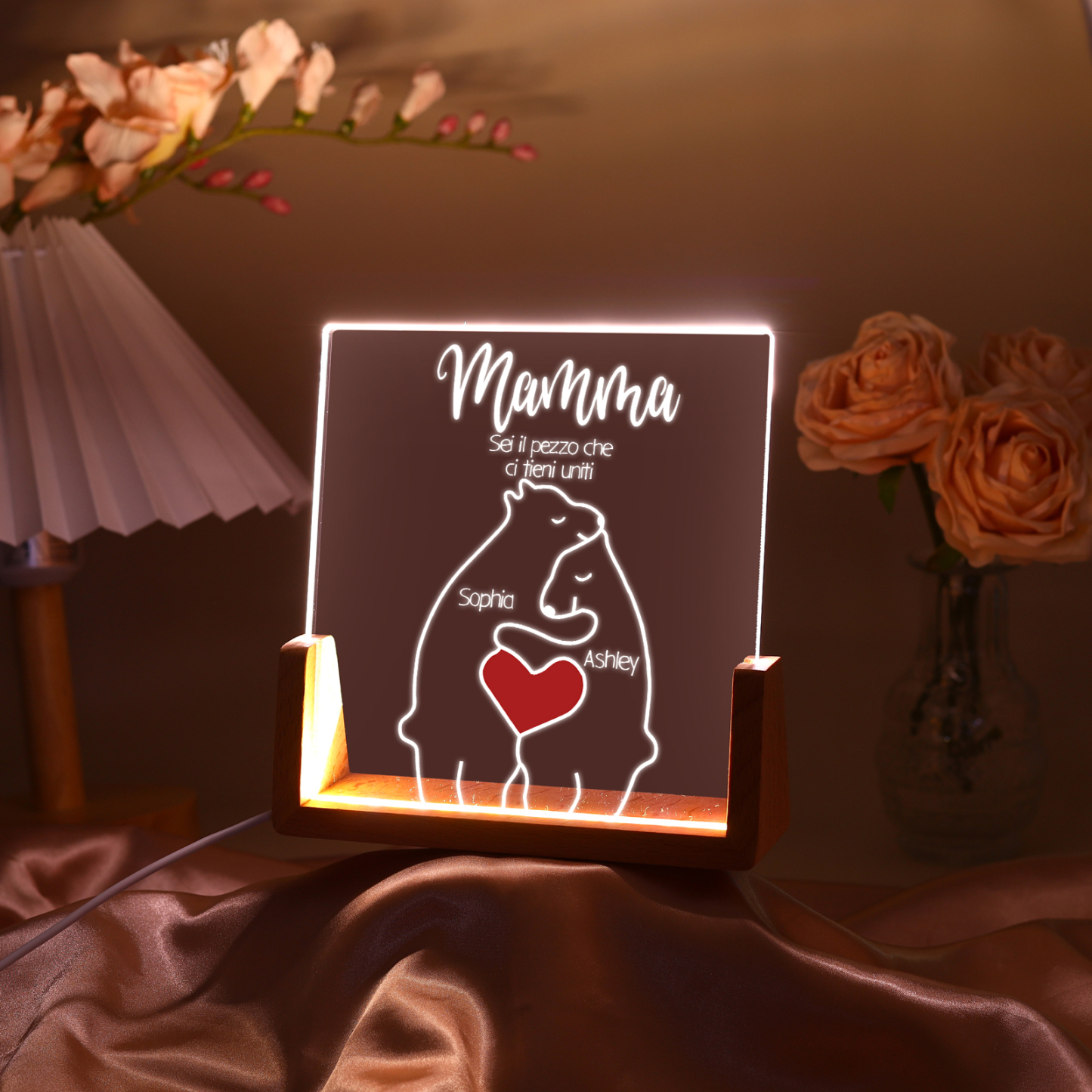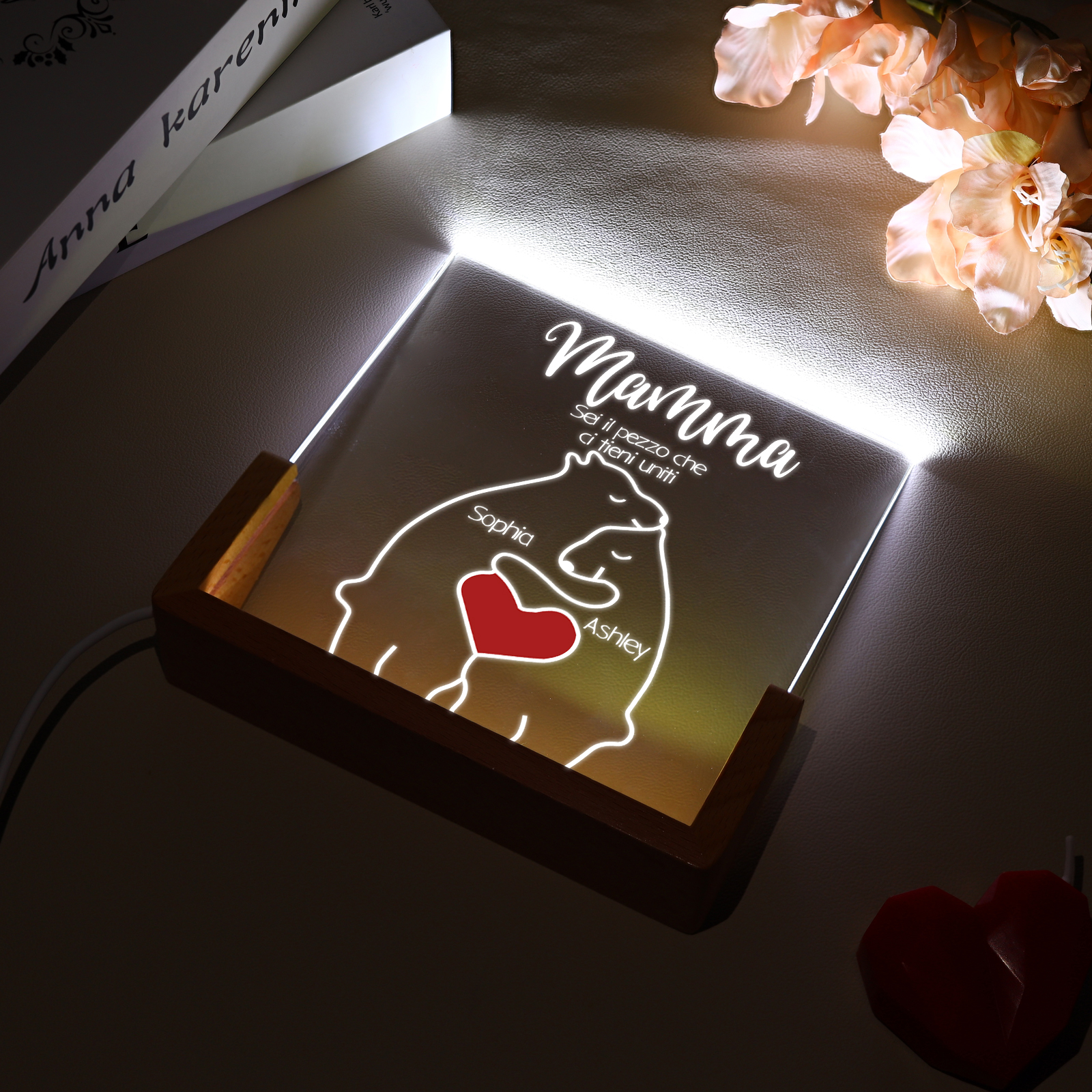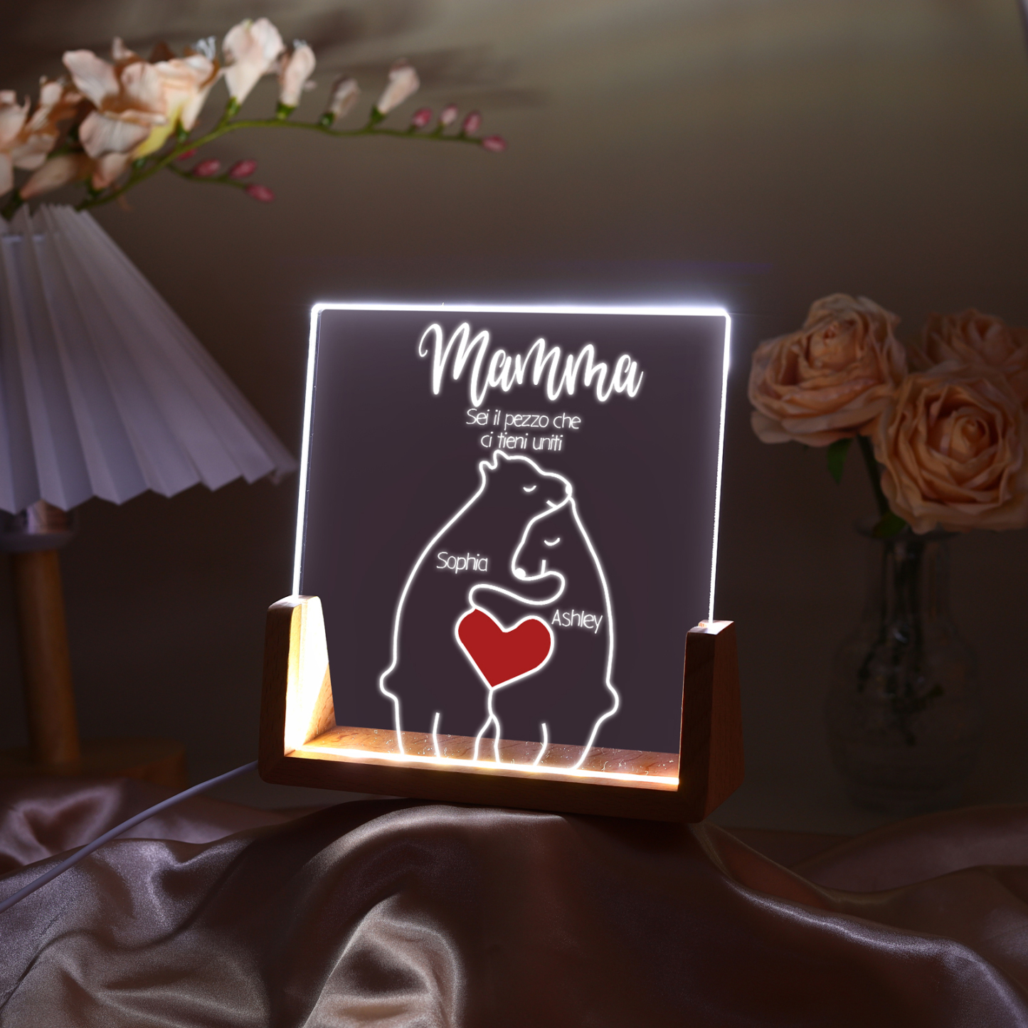 Lampada famiglia di orsi con 3 tipi di colori di LED luce 2 nomi e 2 testi personalizzati per mamma/nonna