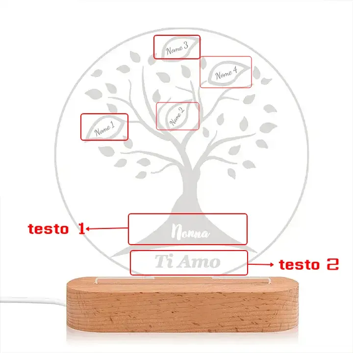 Lampada albero familiare personalizza con 4 nomi e testi