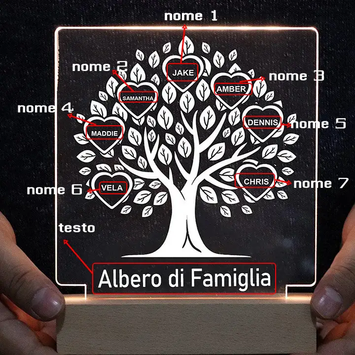 Lampada albero familiare personalizza con 7 nomi e testo