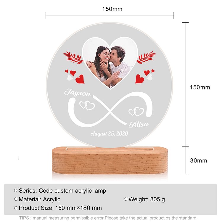 Lampada Infinito 2 nomi e foto personalizzabile per coppia