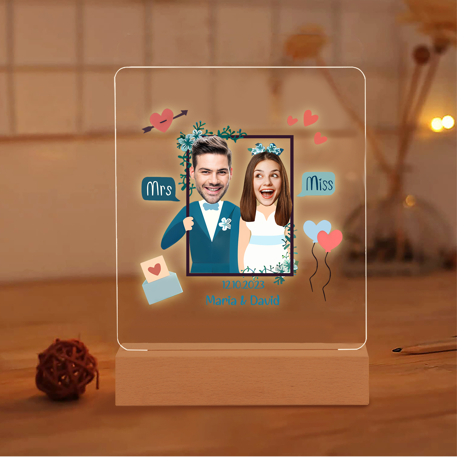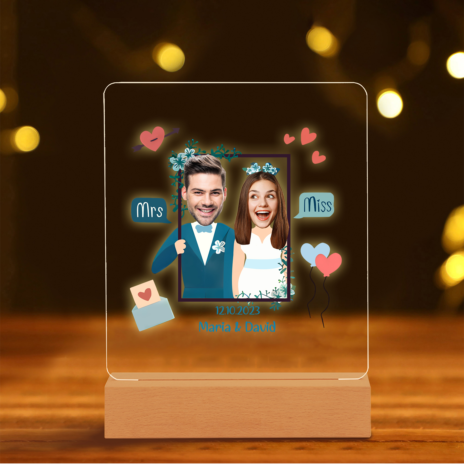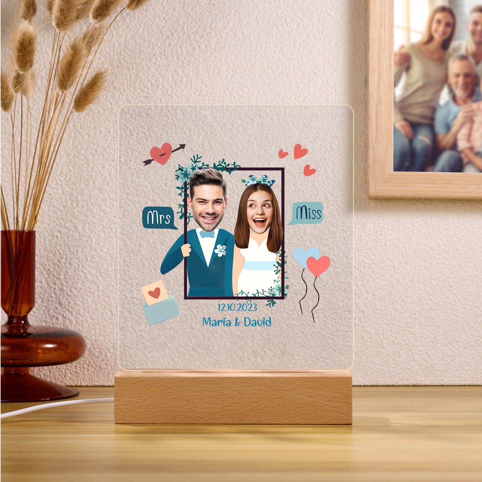 Lampada per nozze 1 data e 2 nomi e 2 foto personalizzabili per coppia