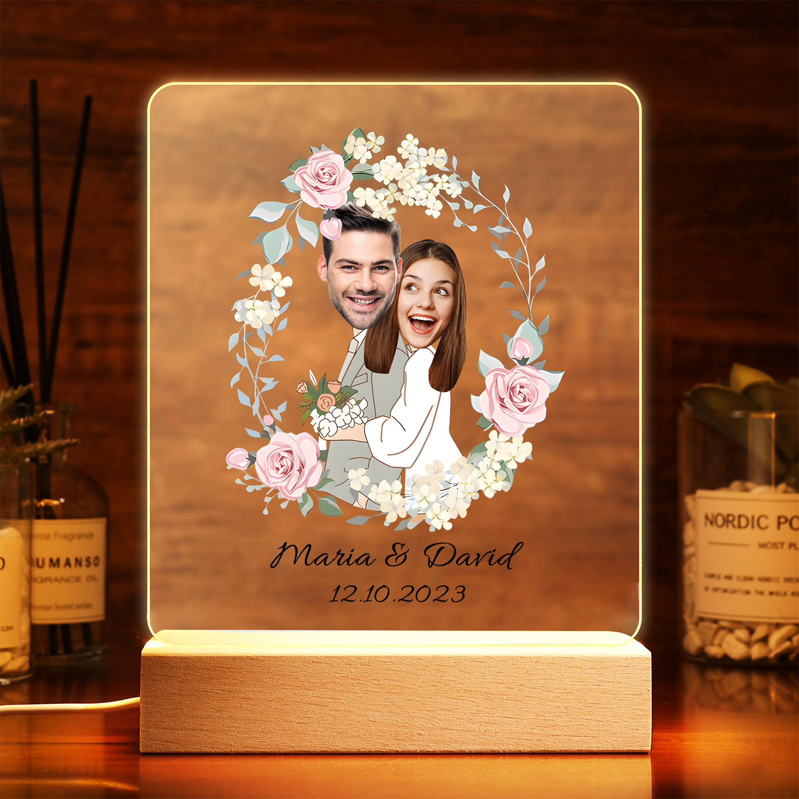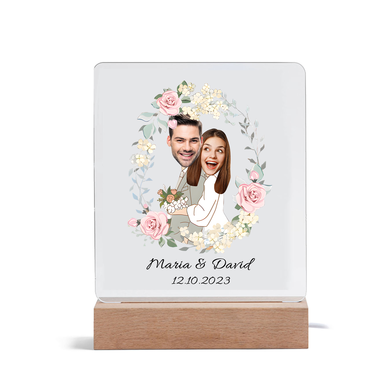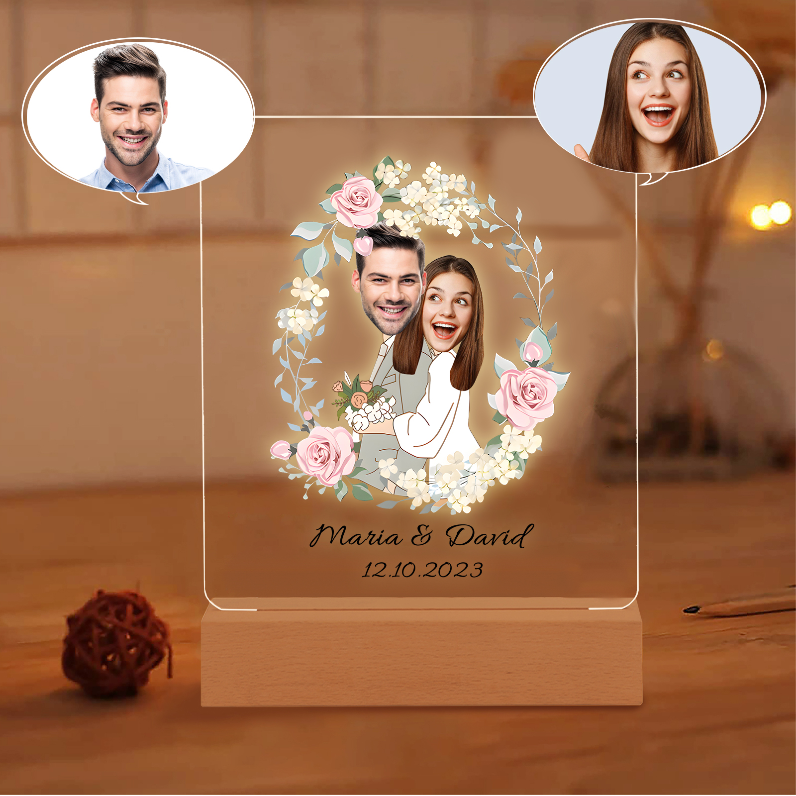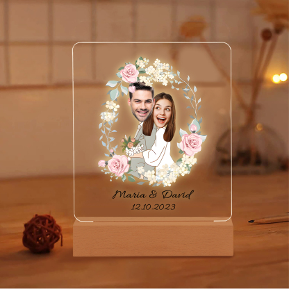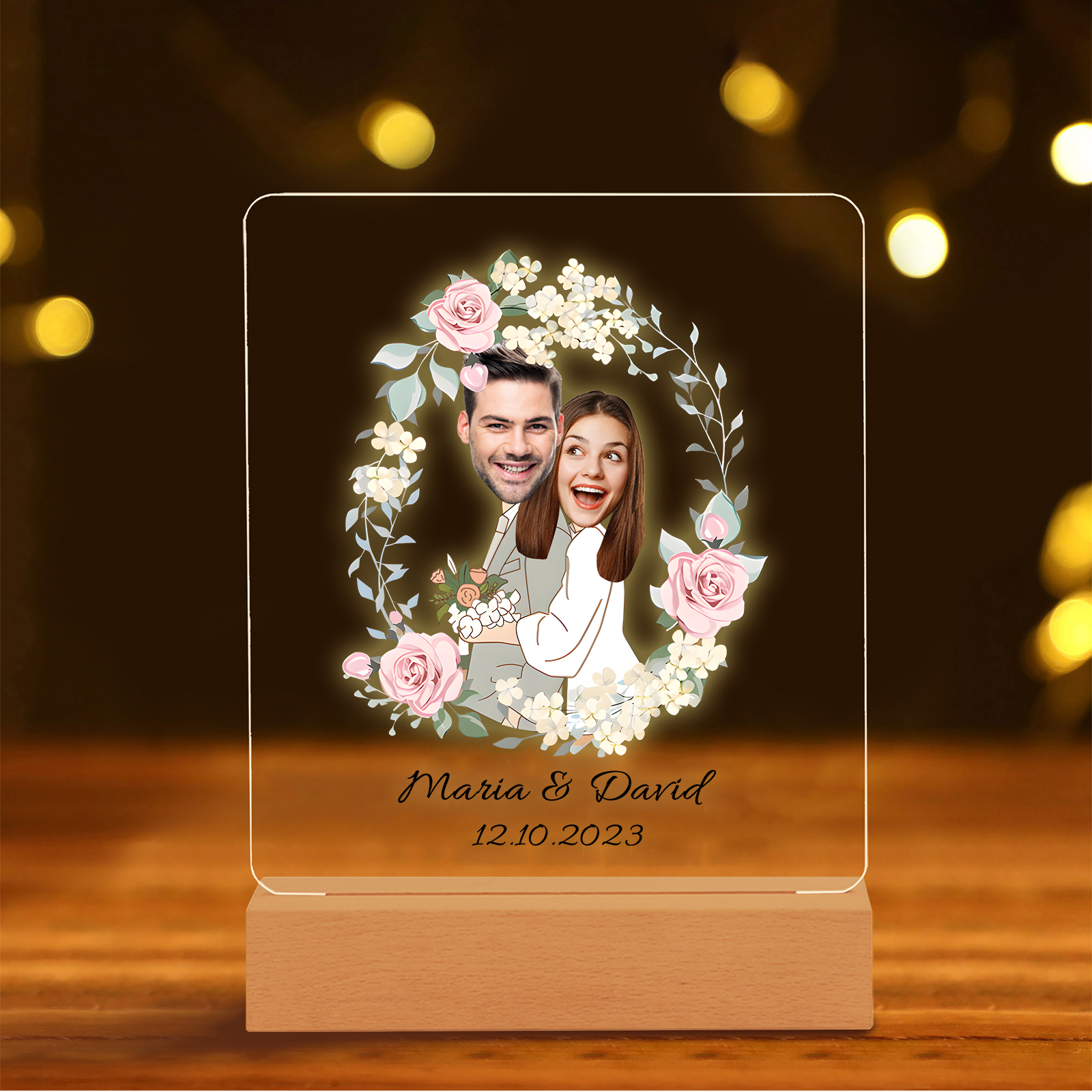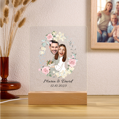 Lampada per nozze 1 data e 2 nomi e 2 foto personalizzabili per coppia