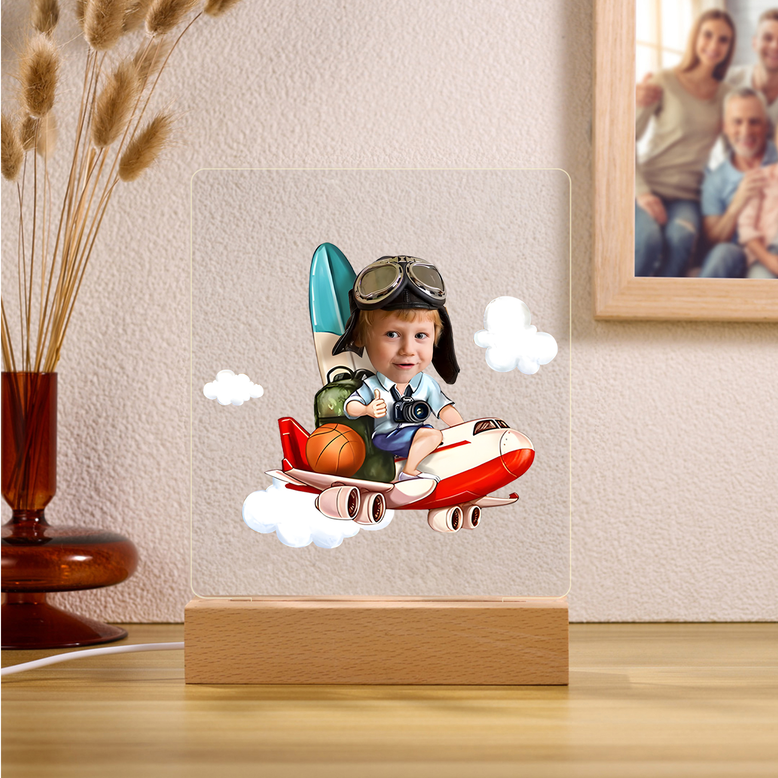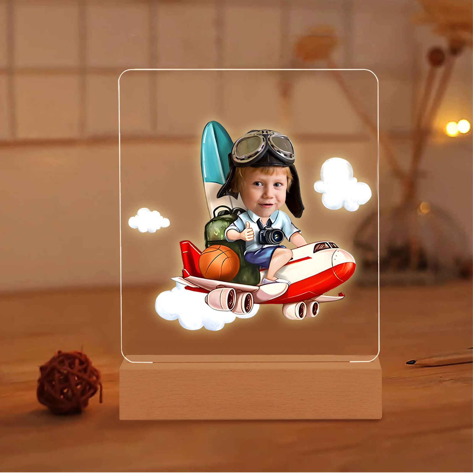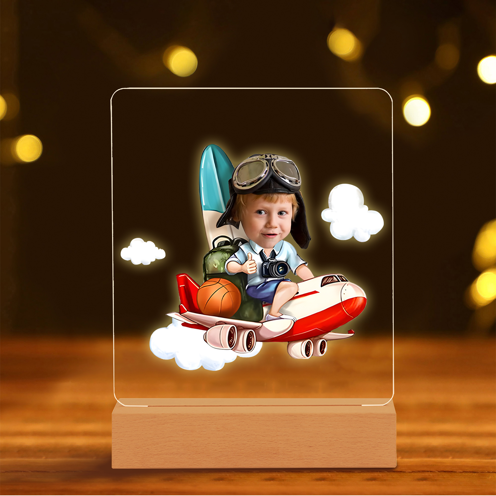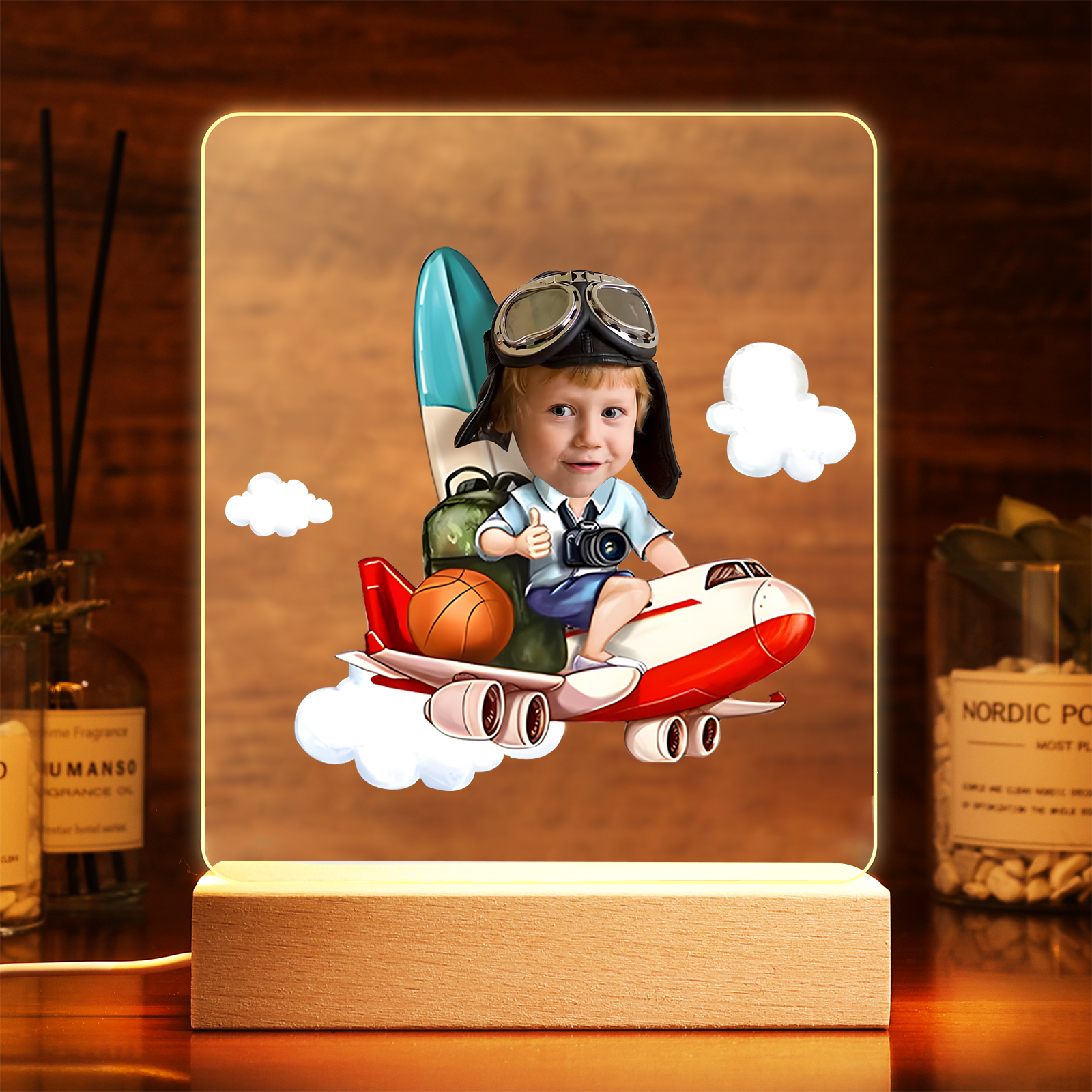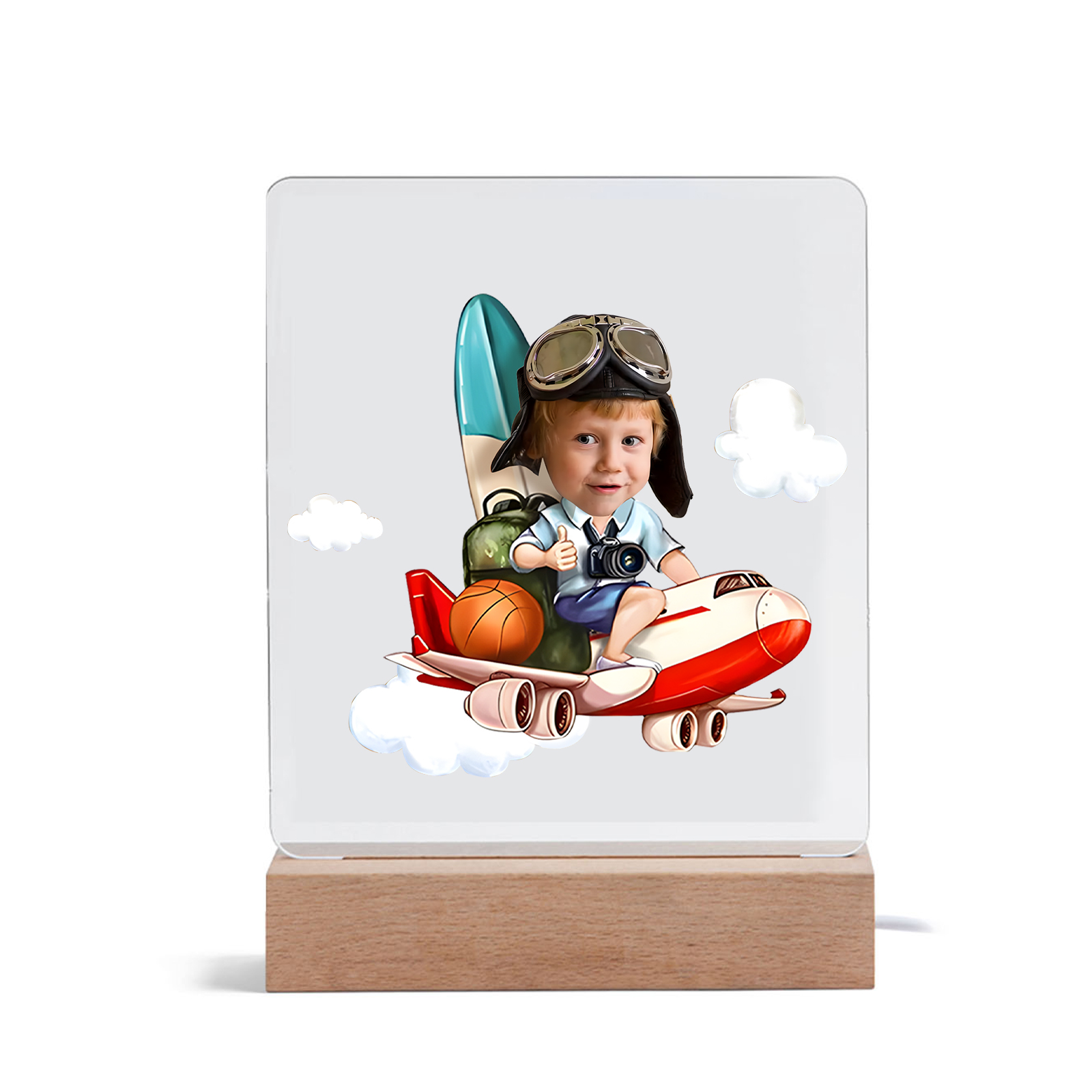 Lampada Pilota e aeromobile con 1 nome e 1 foto personalizzabili per bambino/bambina