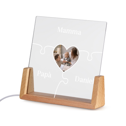 Lampada puzzle con 3 tipi di colori di LED luce 3 nomi e 1 foto personalizzati per mamma/nonna