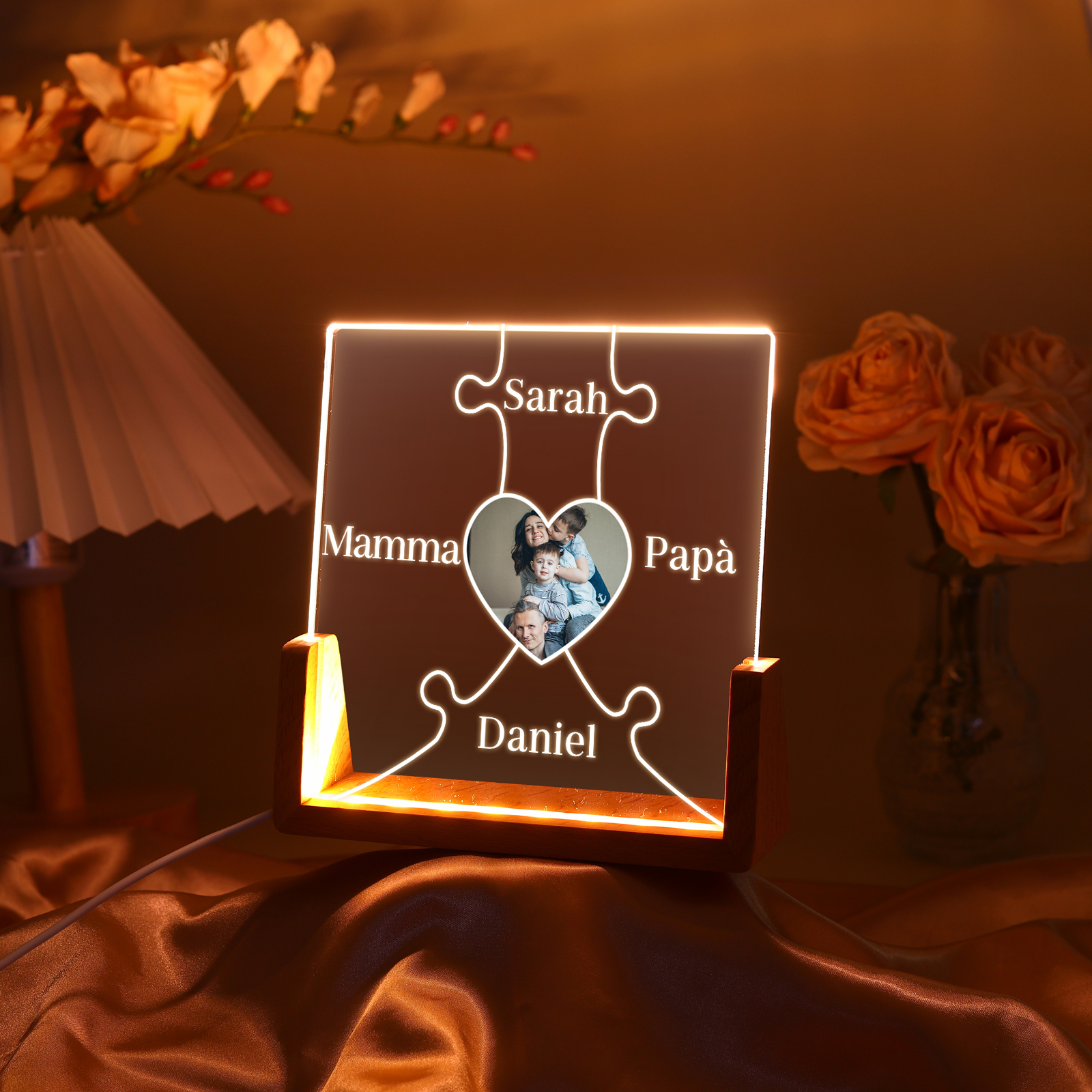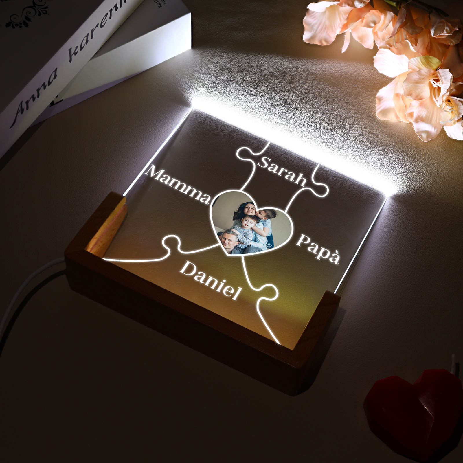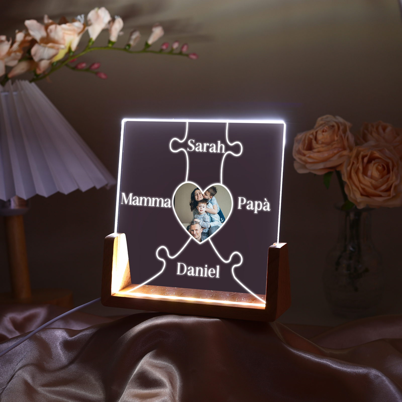 Lampada puzzle con 3 tipi di colori di LED luce 4 nomi e 1 foto personalizzati per mamma/nonna