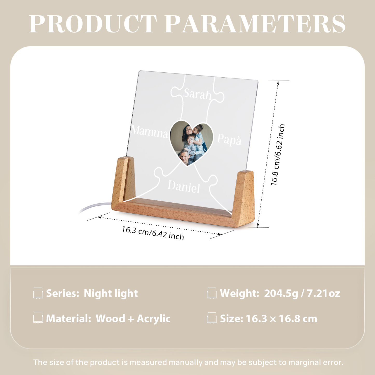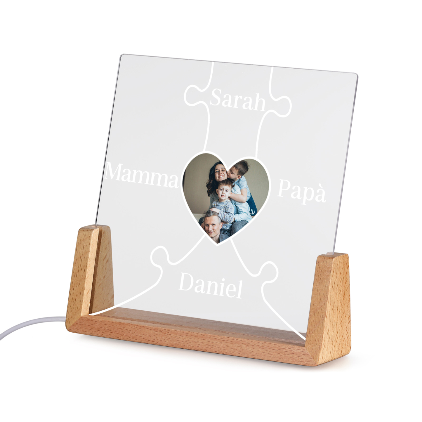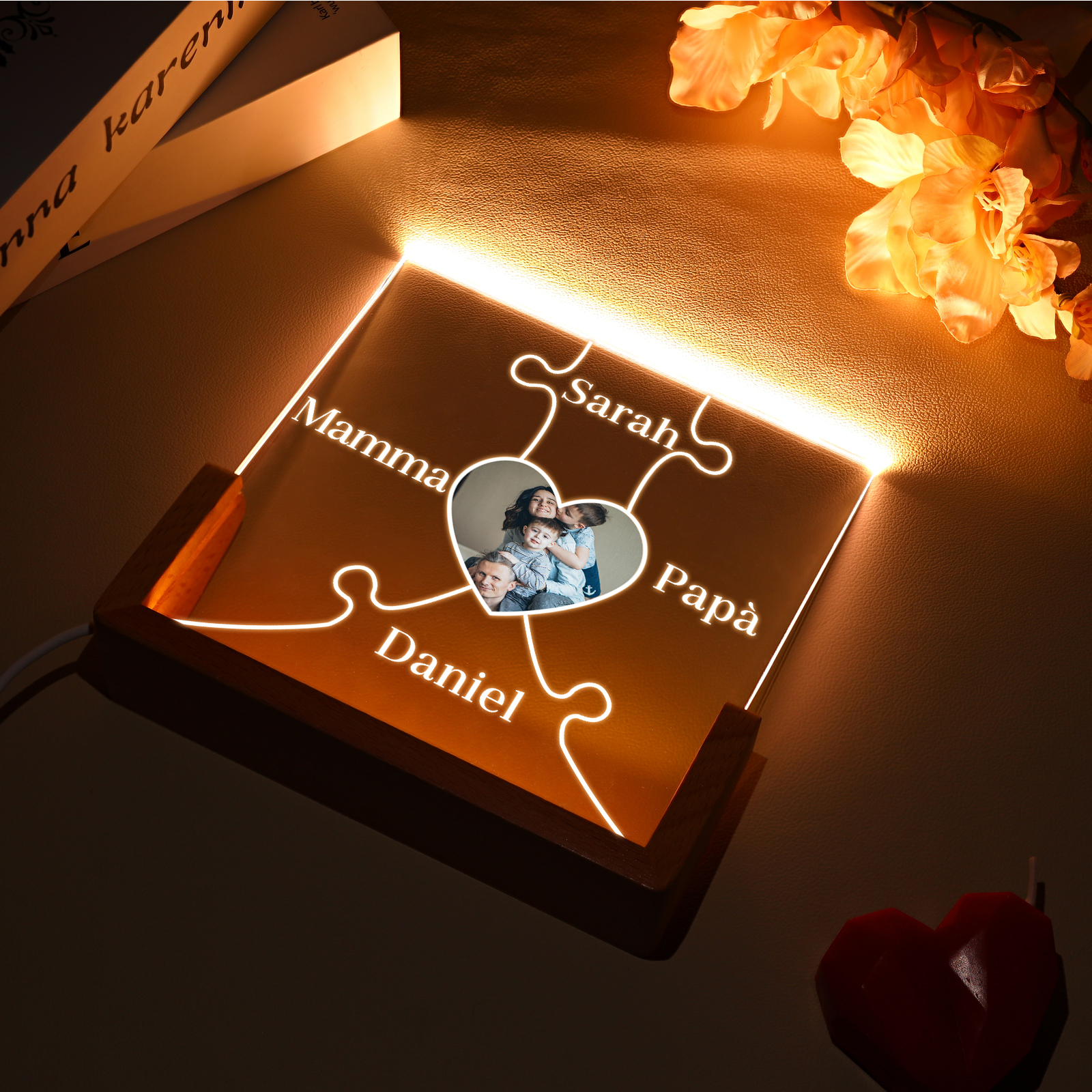 Lampada puzzle con 3 tipi di colori di LED luce 4 nomi e 1 foto personalizzati per mamma/nonna