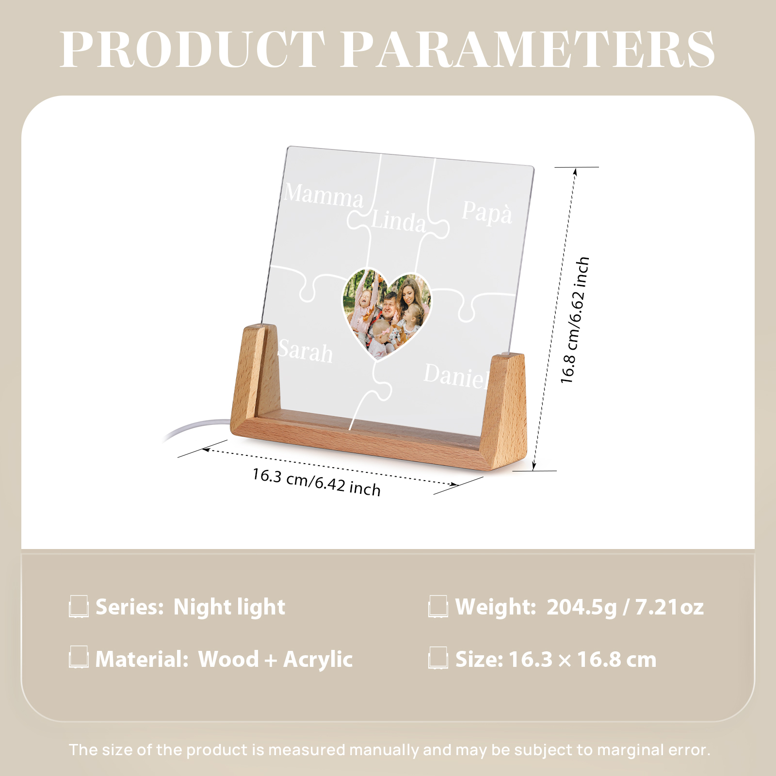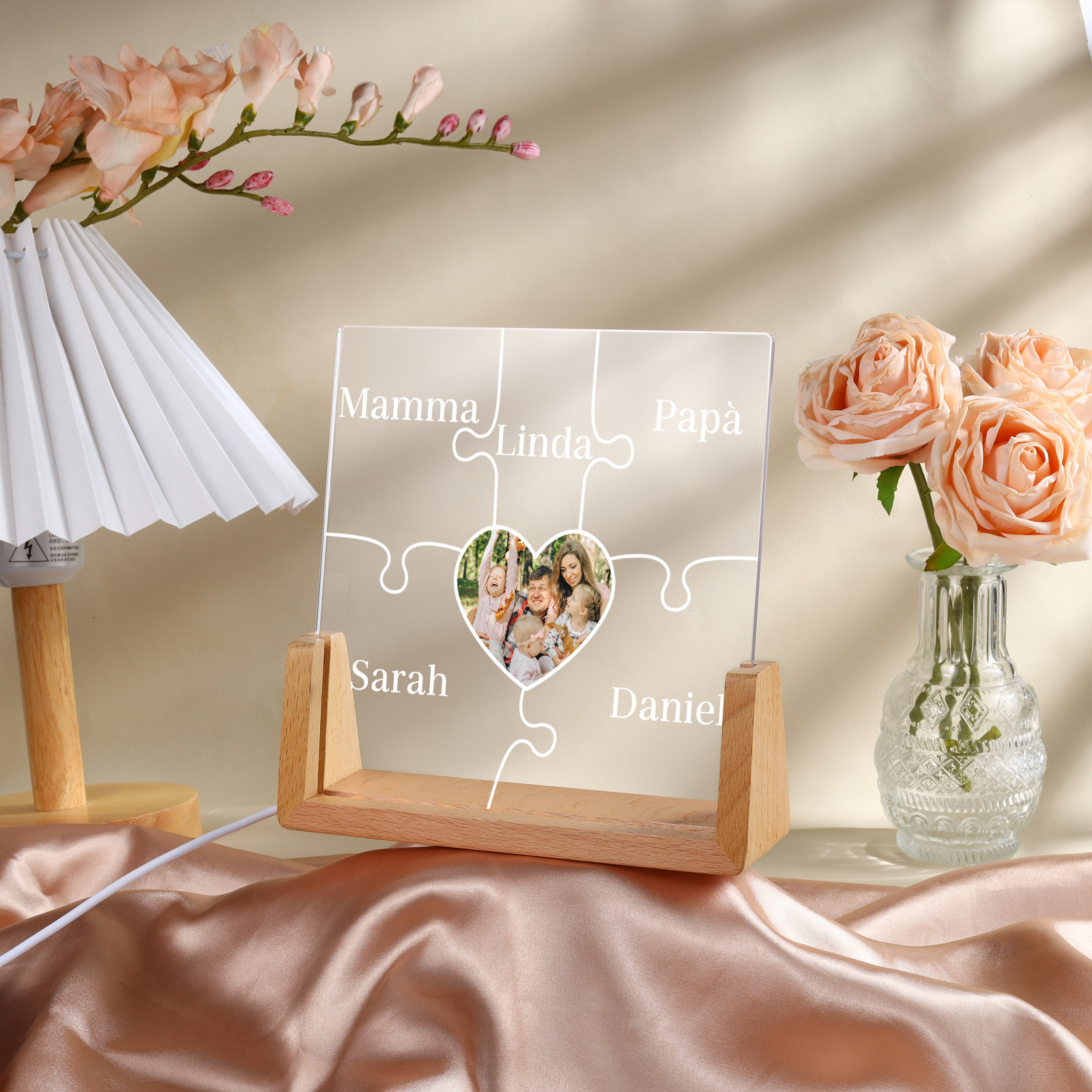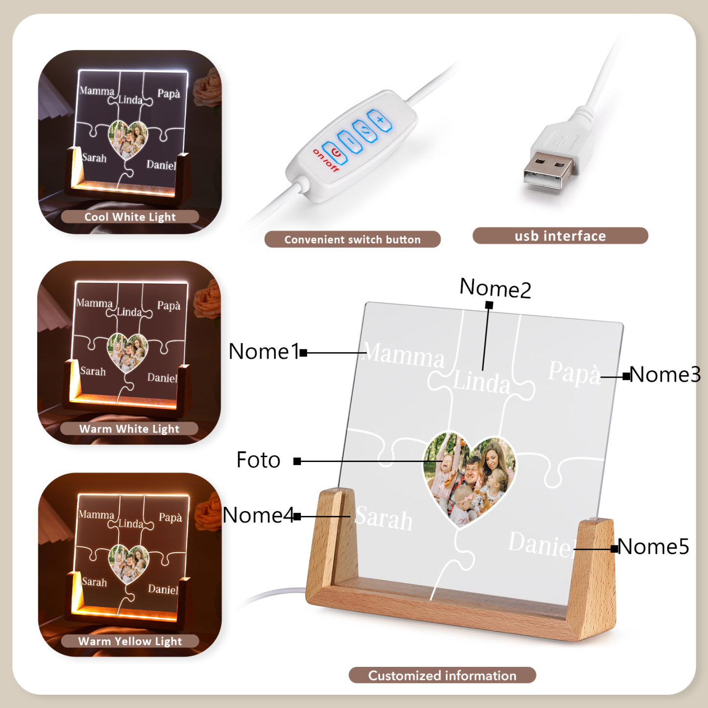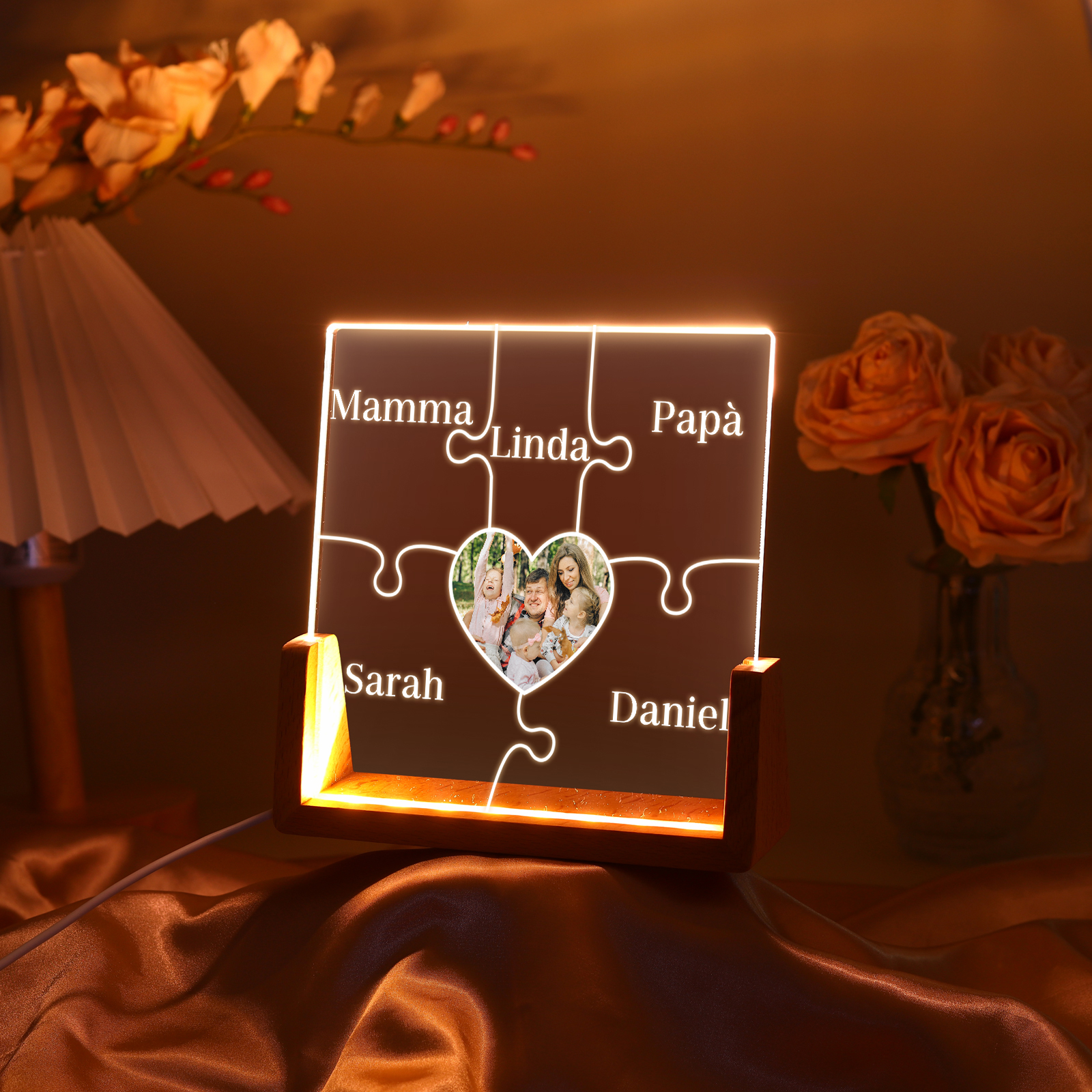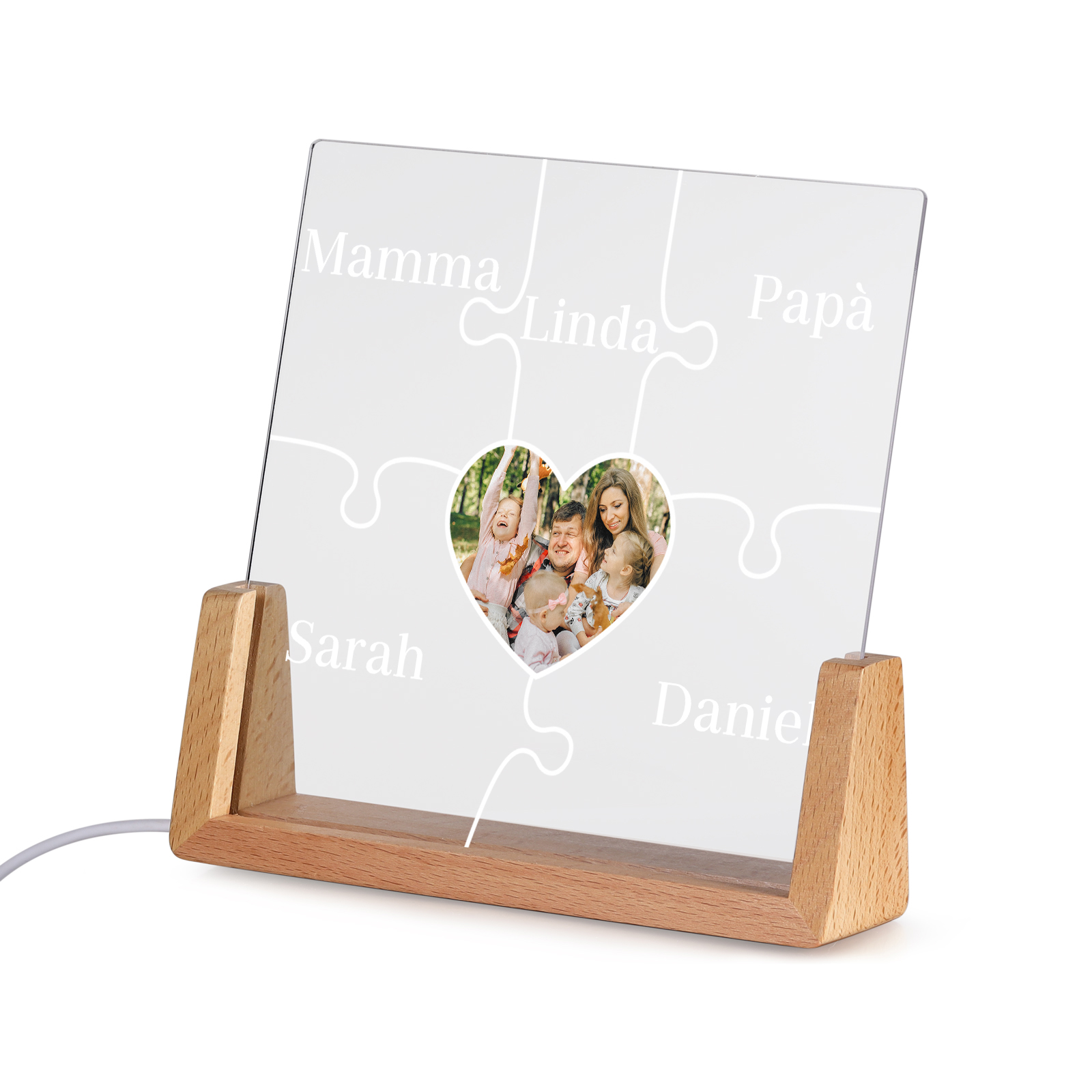 Lampada puzzle con 3 tipi di colori di LED luce 5 nomi e 1 foto personalizzati per mamma/nonna