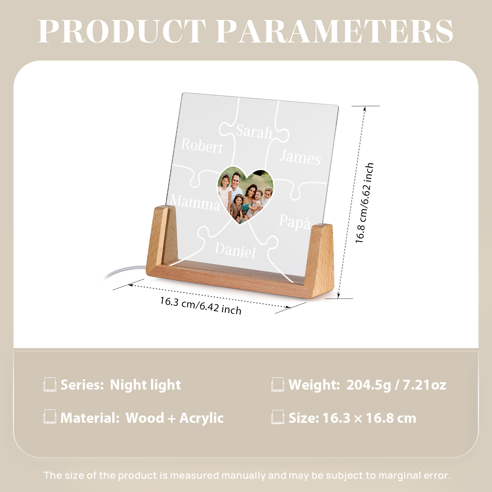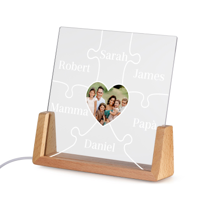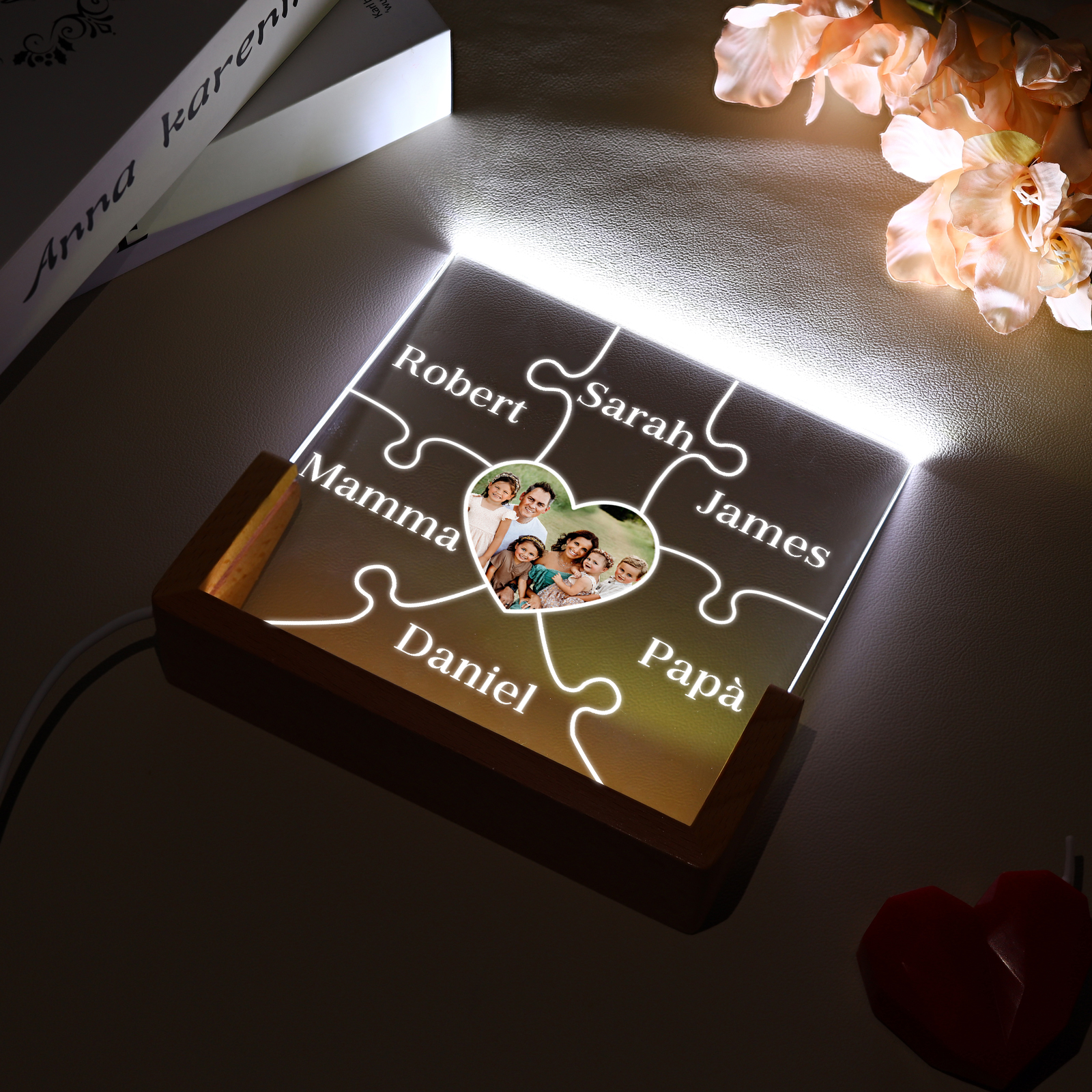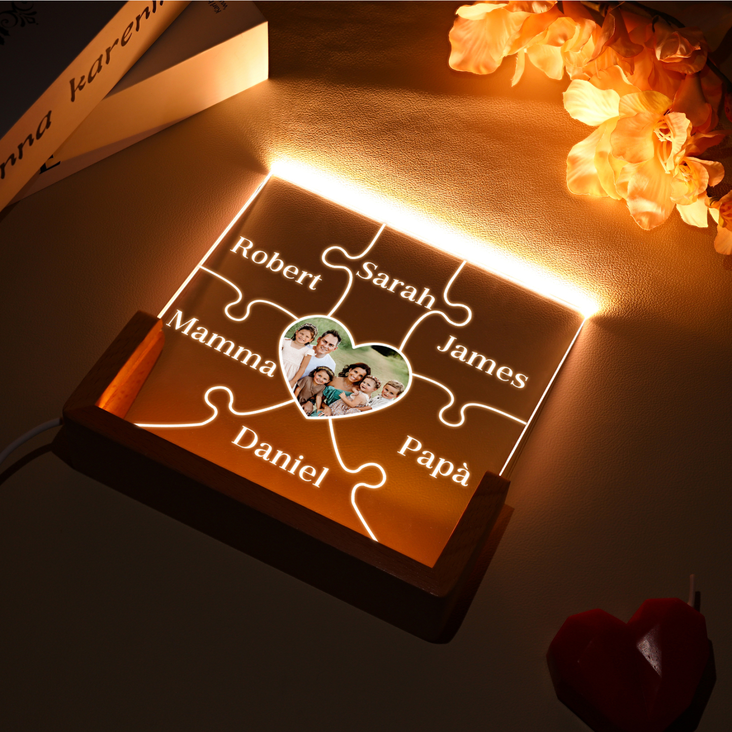 Lampada puzzle con 3 tipi di colori di LED luce 6 nomi e 1 foto personalizzati per mamma/nonna