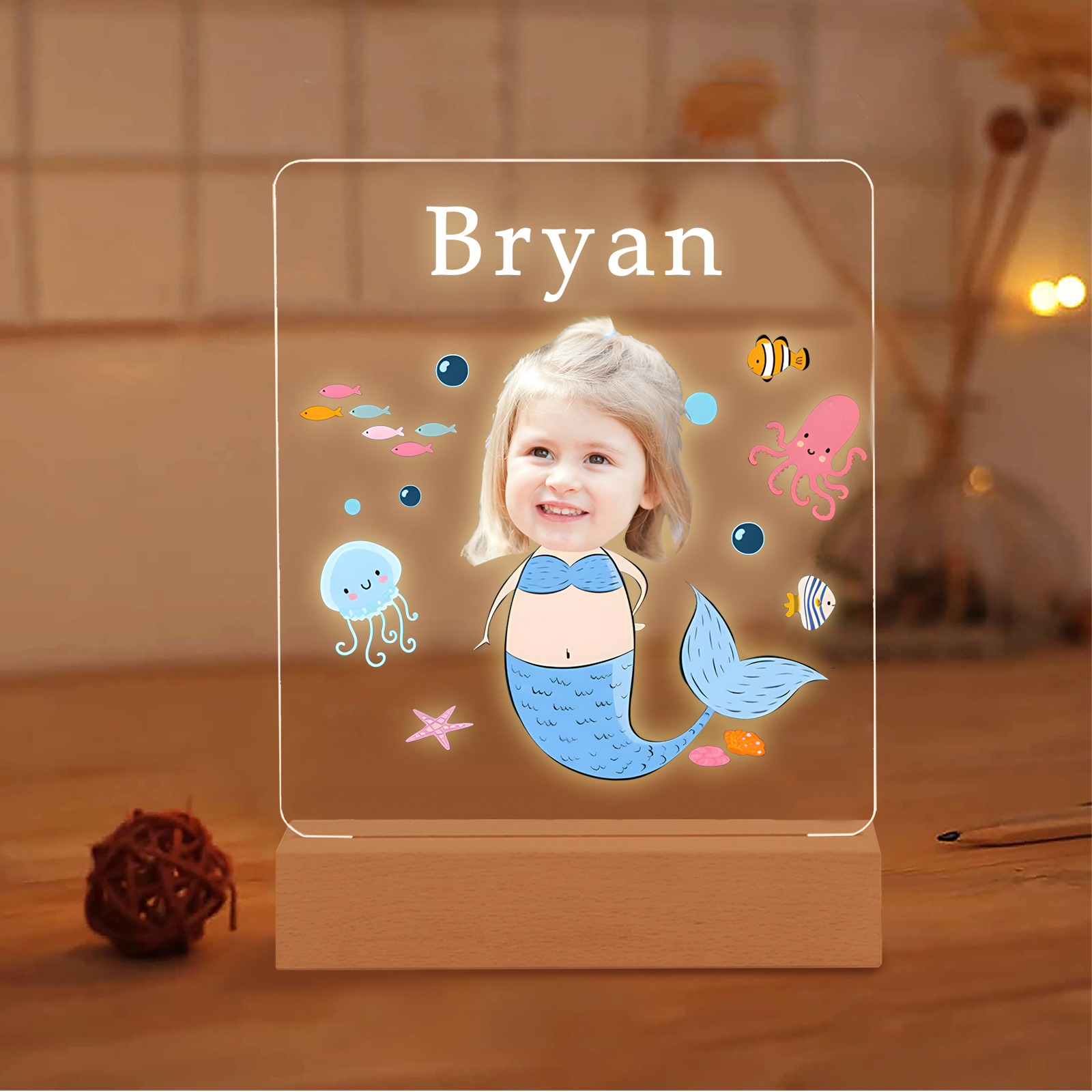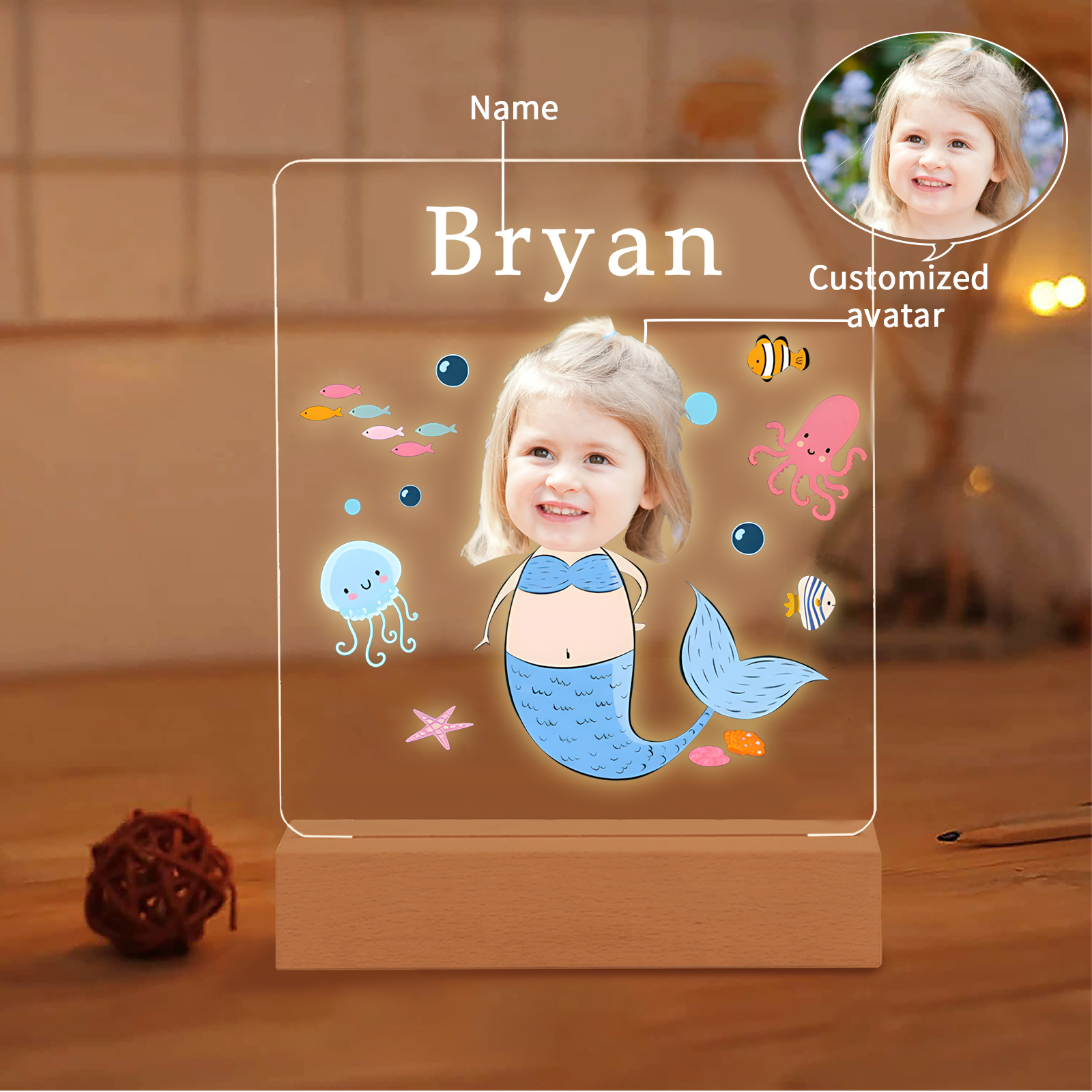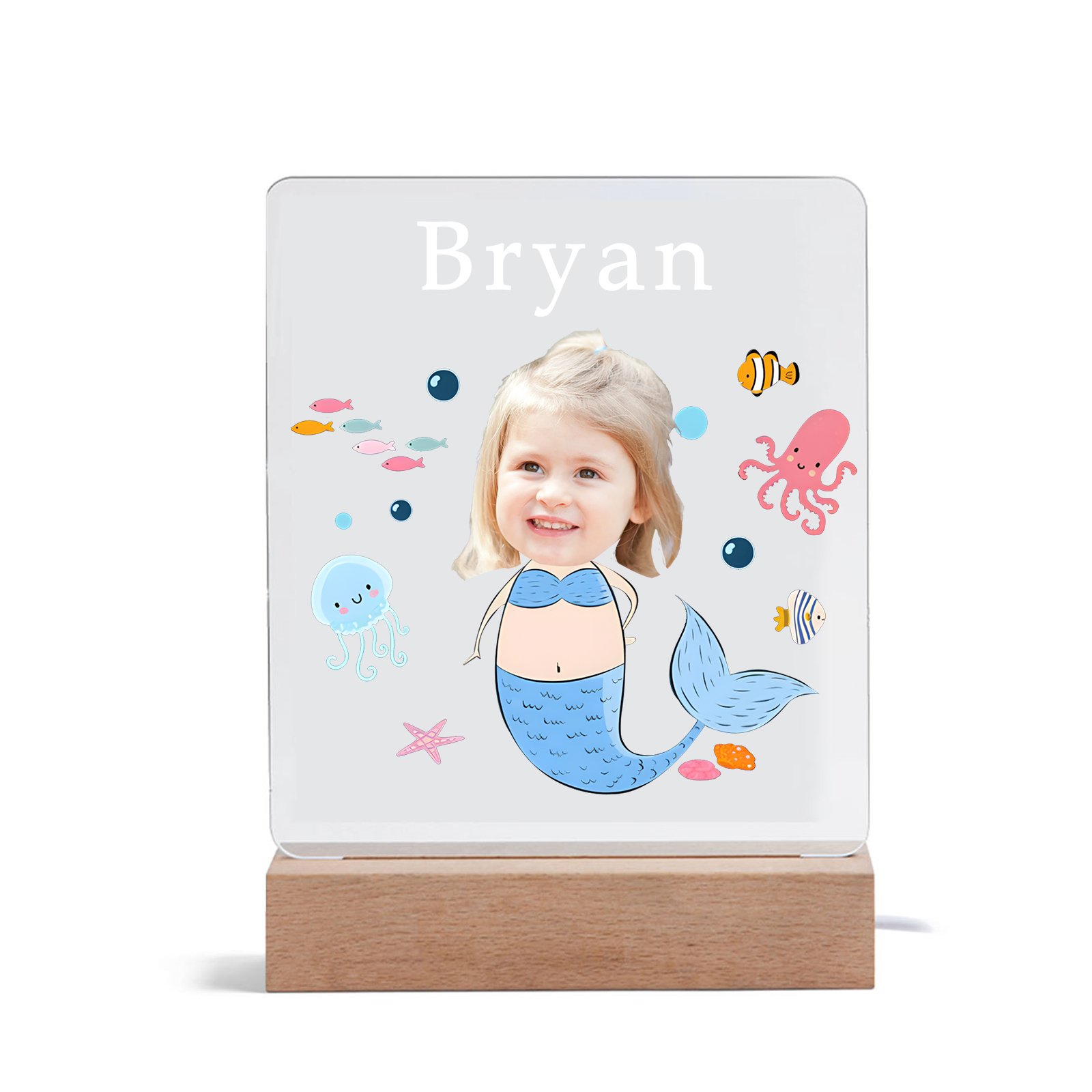Lampada sirena con 1 nome e 1 foto personalizzabili per bambino/bambina