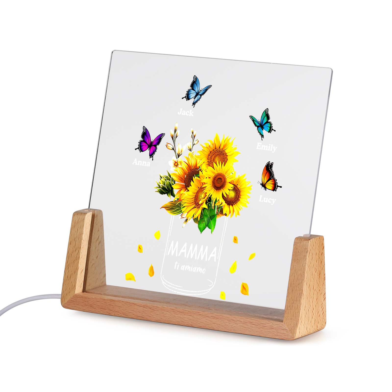 Lampada un mazzo di girasoli e farfalle con 3 tipi di colori di LED luce 4 nomi e 2 testi personalizzati per mamma/nonna