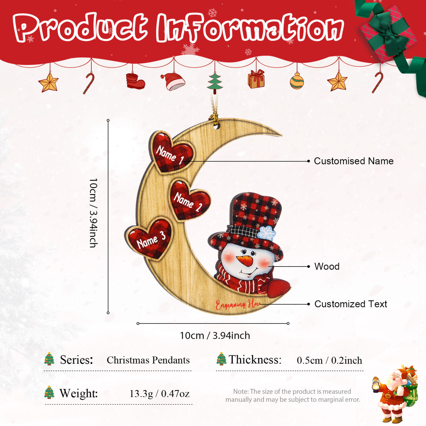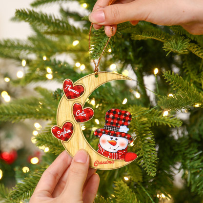 Luna & Pupazzo di neve-Decorazione di legno natalizia 3 nomi personalizzabili