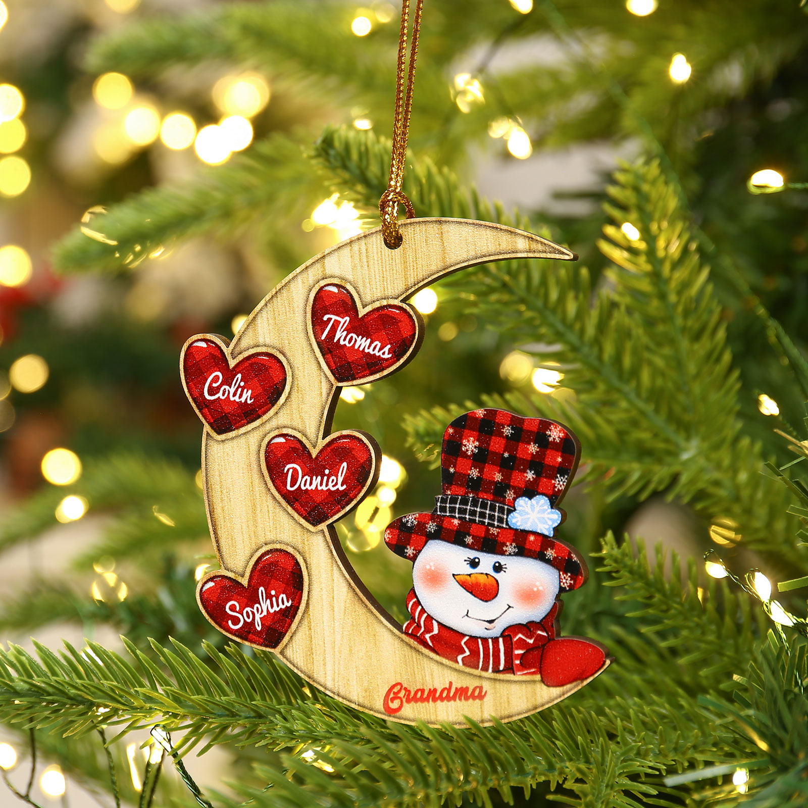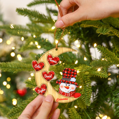 Luna & Pupazzo di neve-Decorazione di legno natalizia 4 nomi personalizzabili