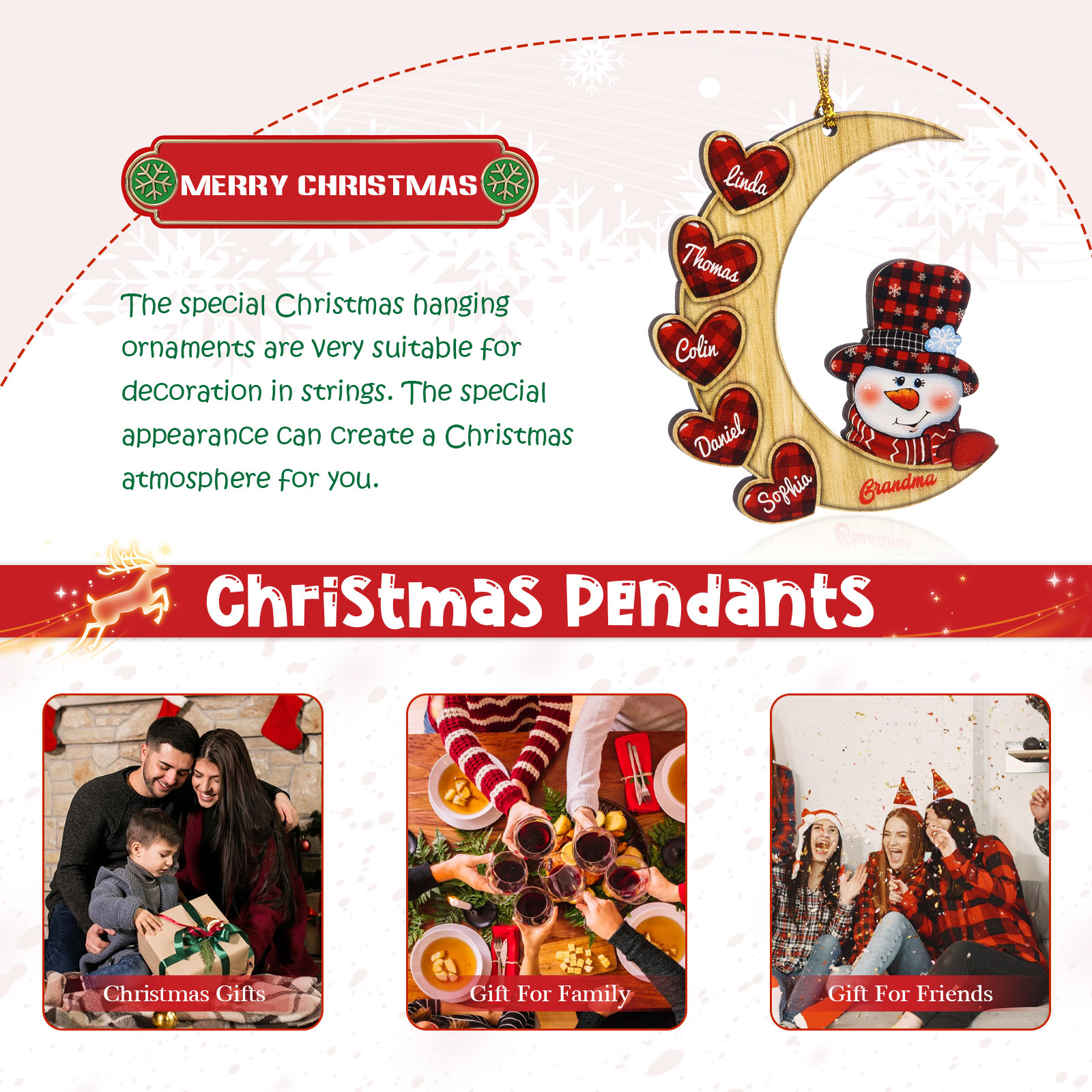 Luna & Pupazzo di neve-Decorazione di legno natalizia 5 nomi personalizzabili