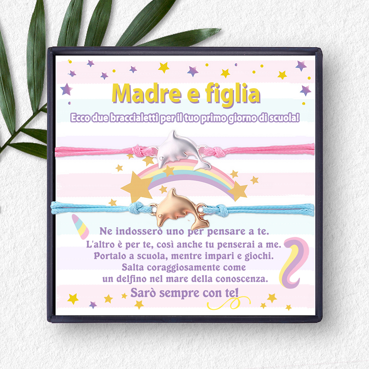 Madre e figlia-2PCS Braccialetti delfino con carta per bambini a tornare a scuola