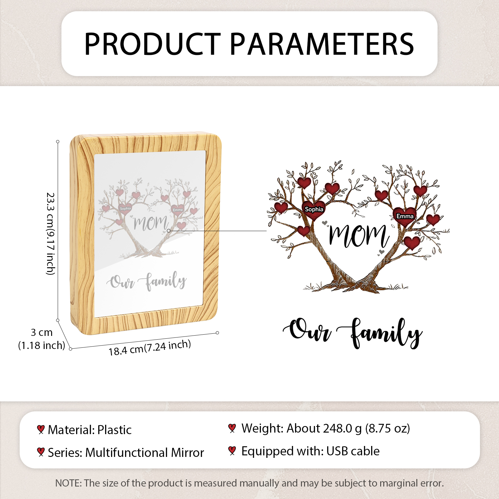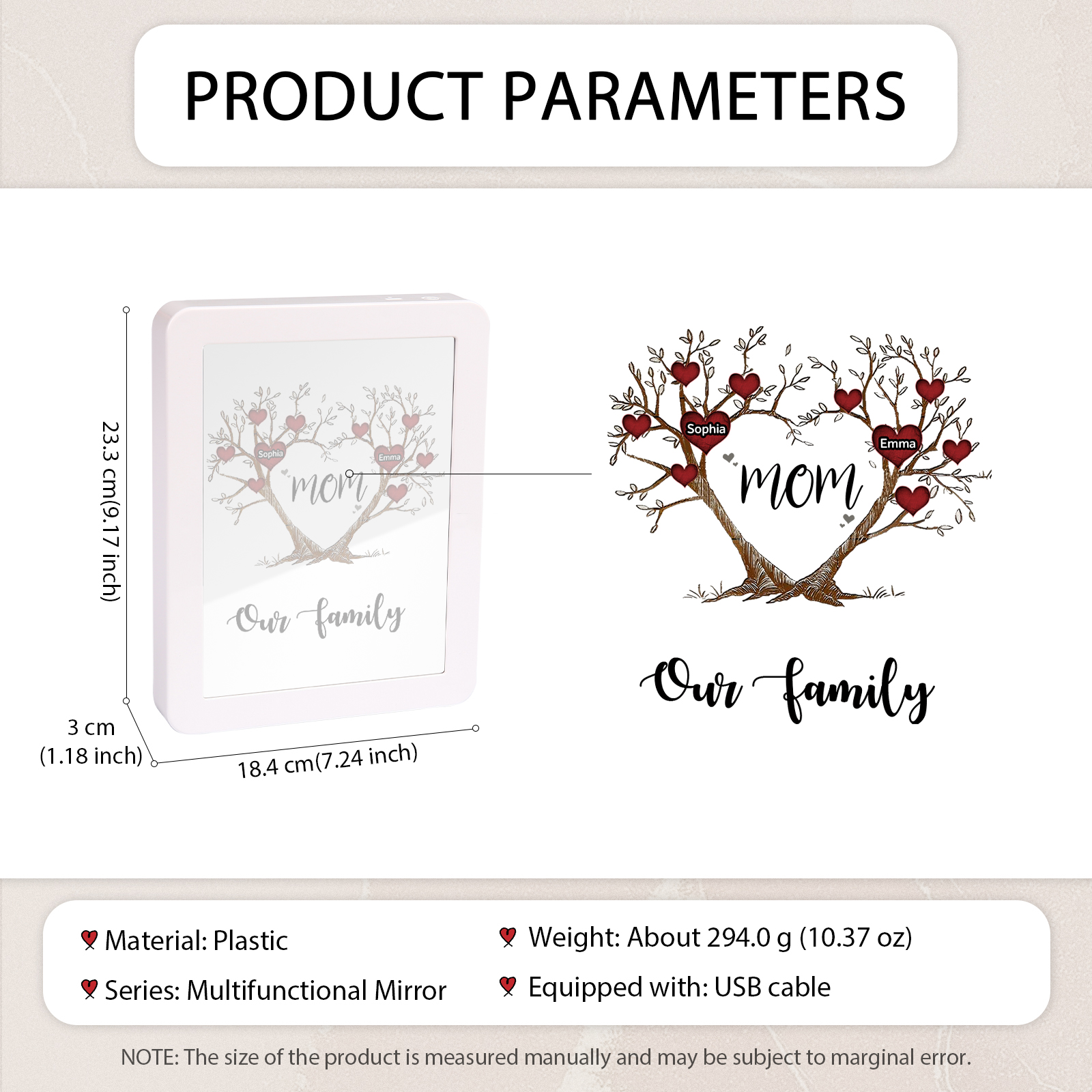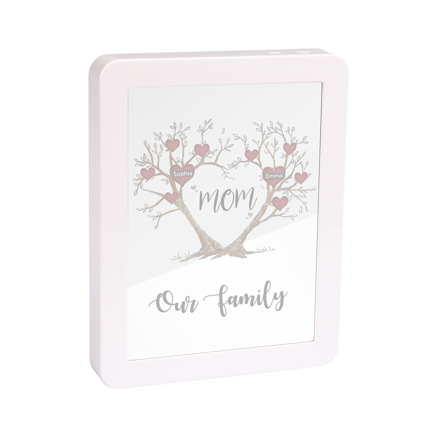 Mamma-Cornice albero di cuore con LED luce a tre colori 2 nomi e 2 testi personalizzati anche usato come specchio
