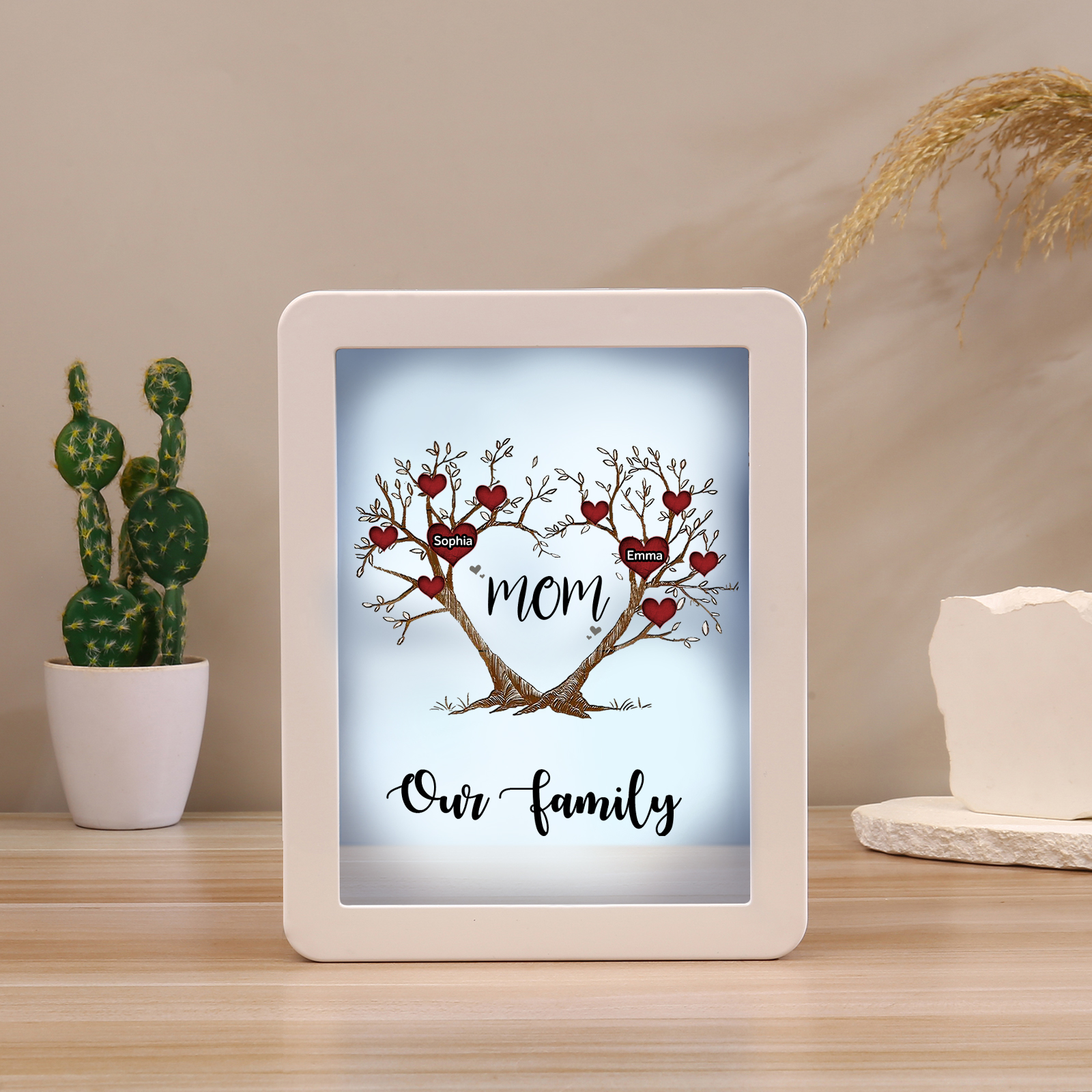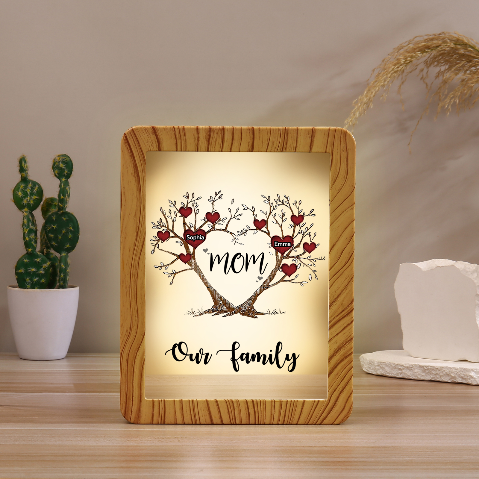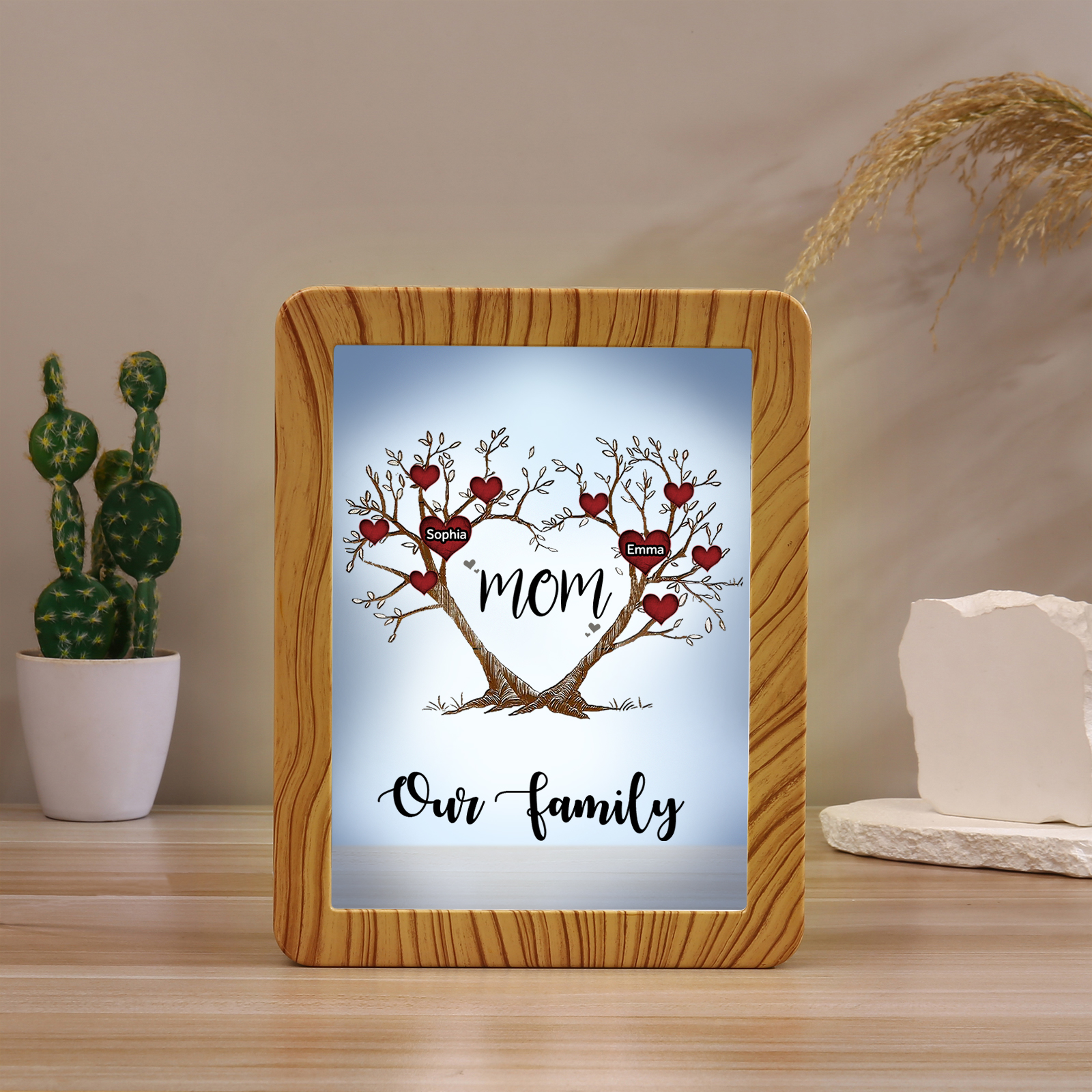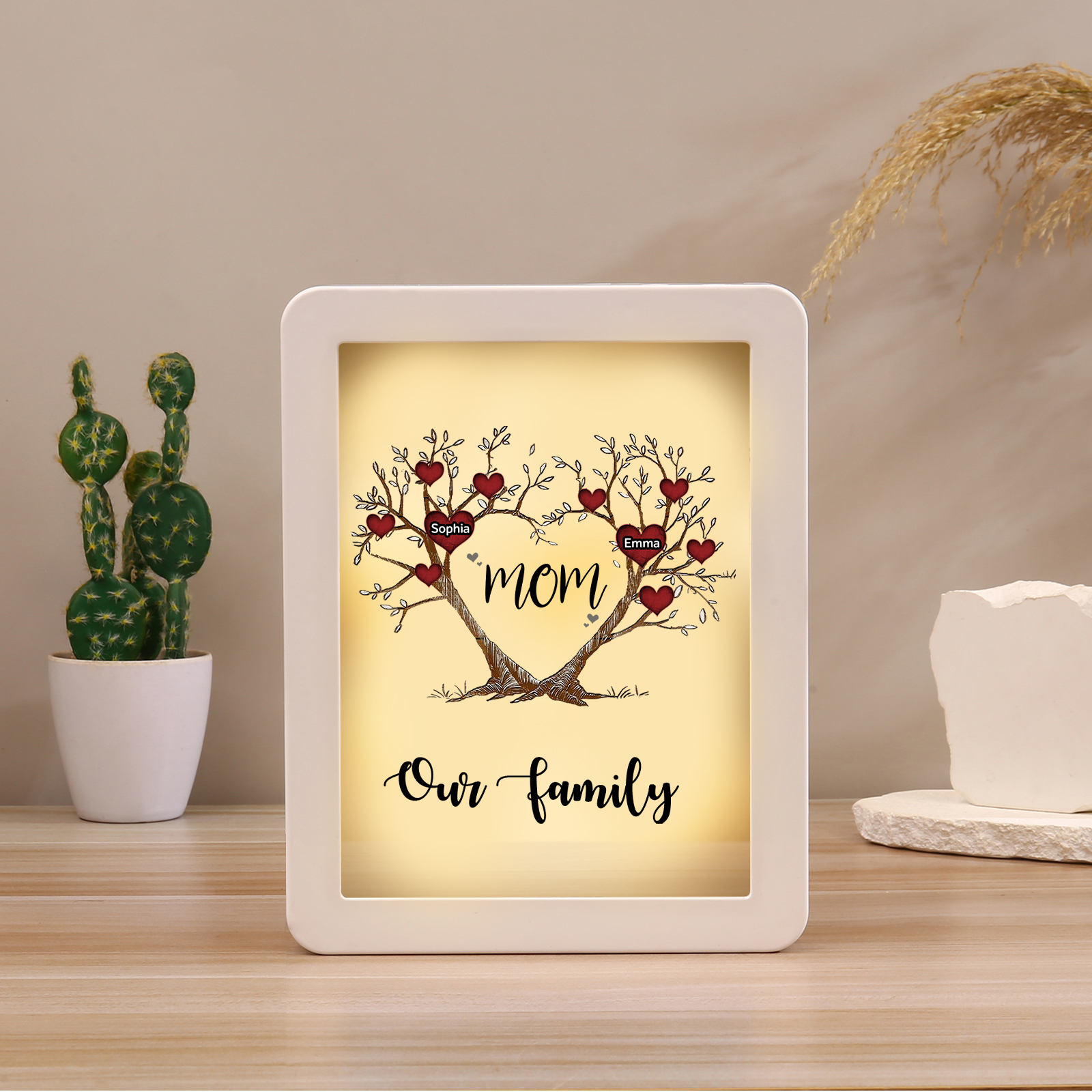 Mamma-Cornice albero di cuore con LED luce a tre colori 2 nomi e 2 testi personalizzati anche usato come specchio