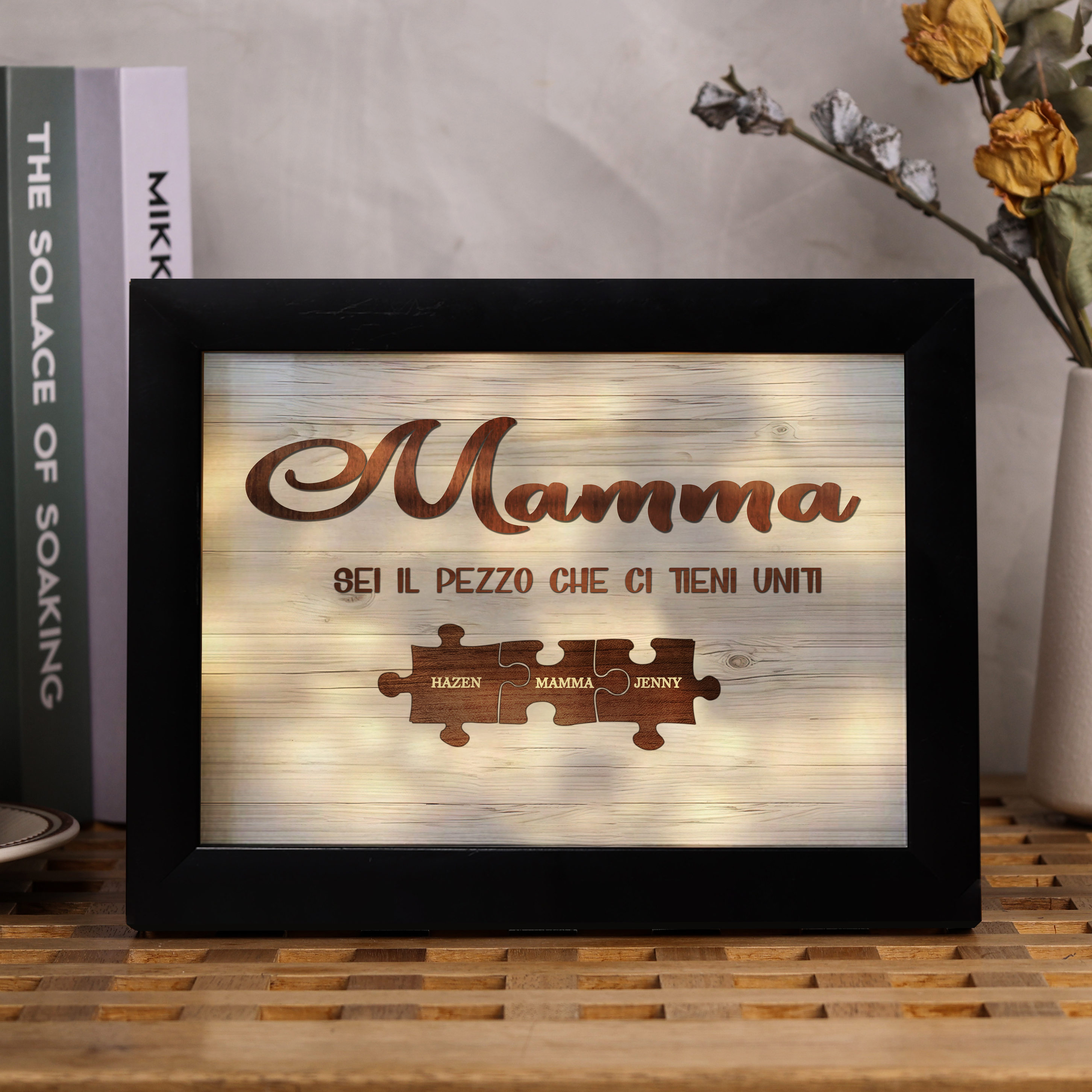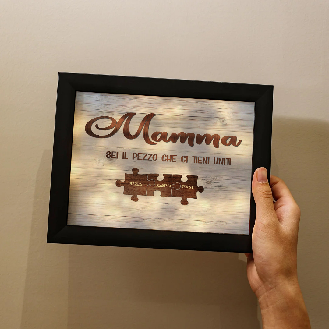 Mamma-Cornice con LED luce puzzle 3 nomi e 2 testi personalizzati regalo per mamma
