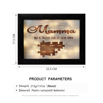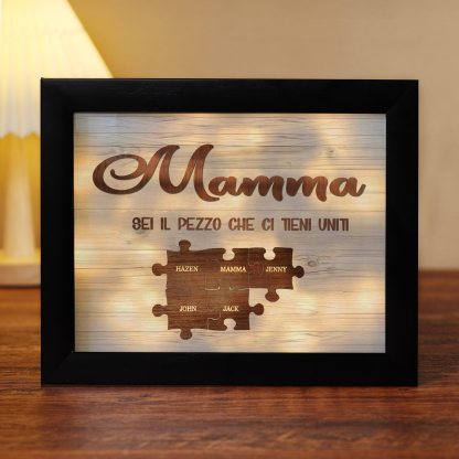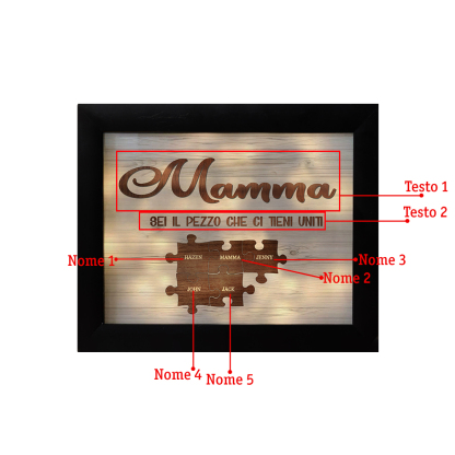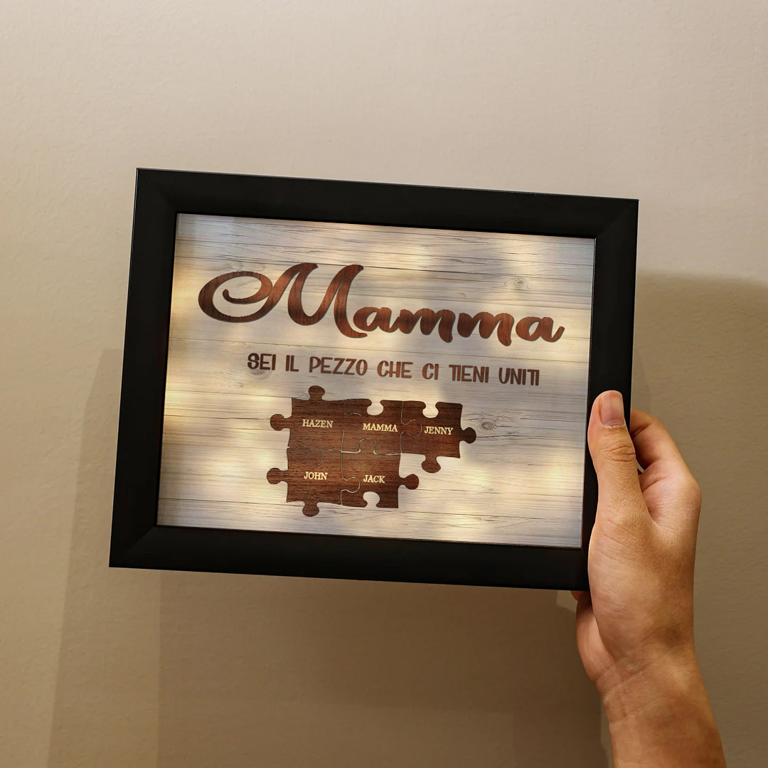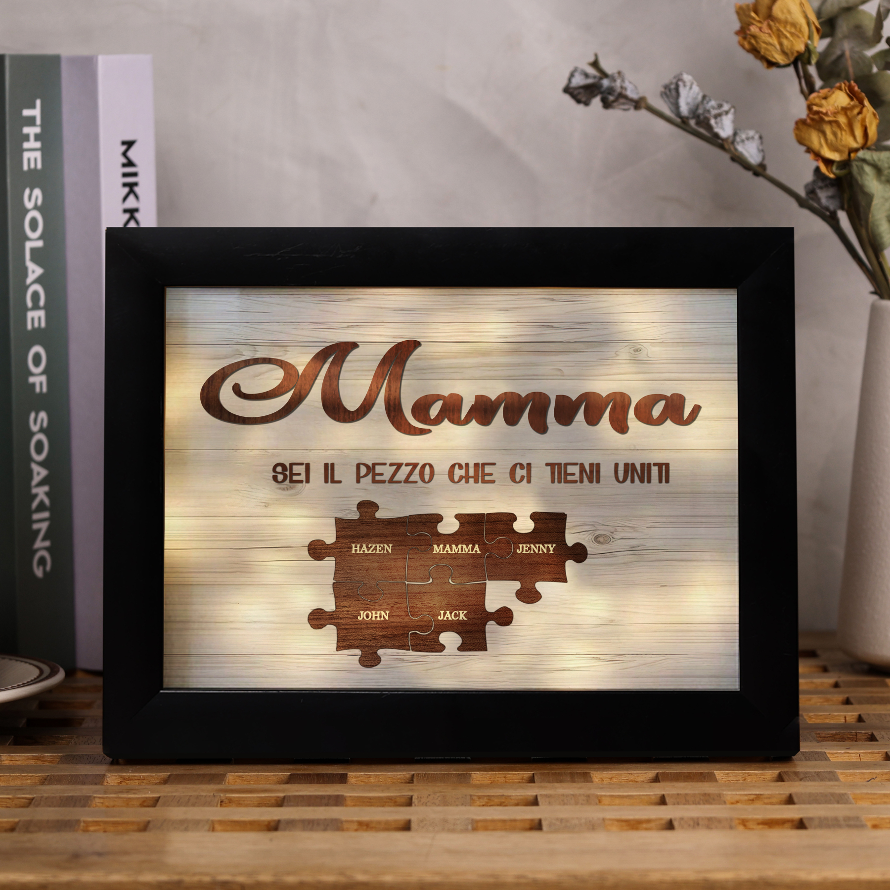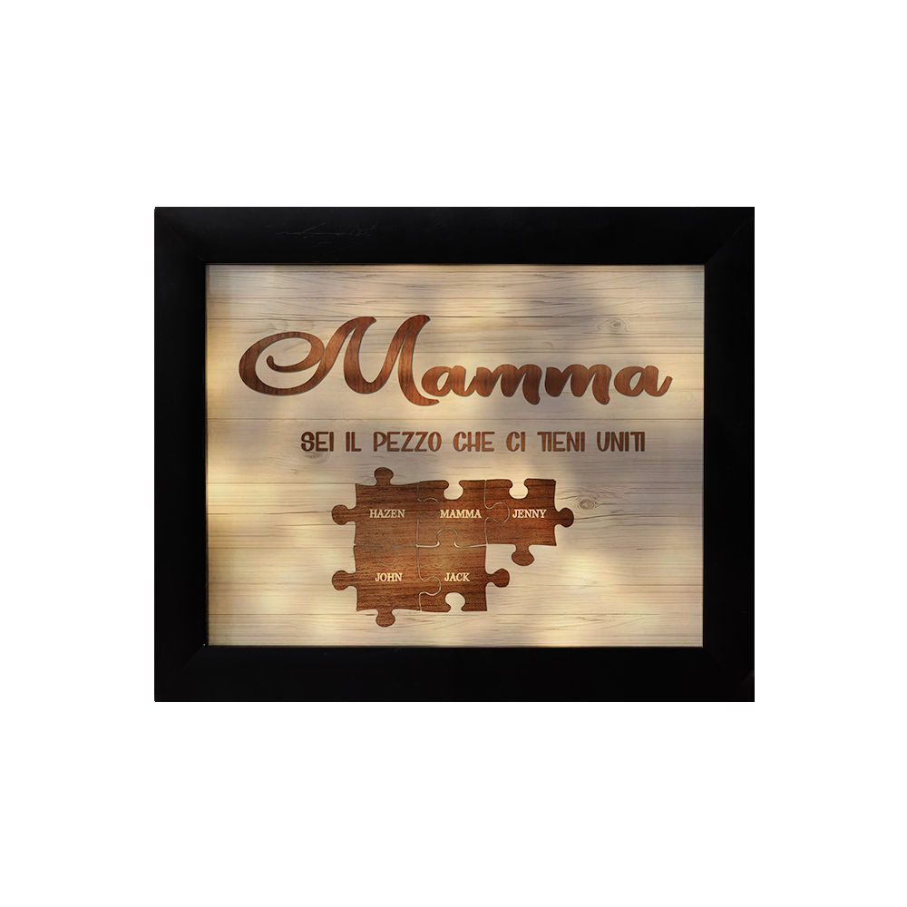 Mamma-Cornice con LED luce puzzle 5 nomi e 2 testi personalizzati regalo per mamma