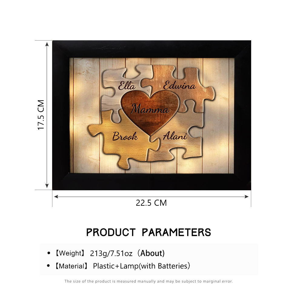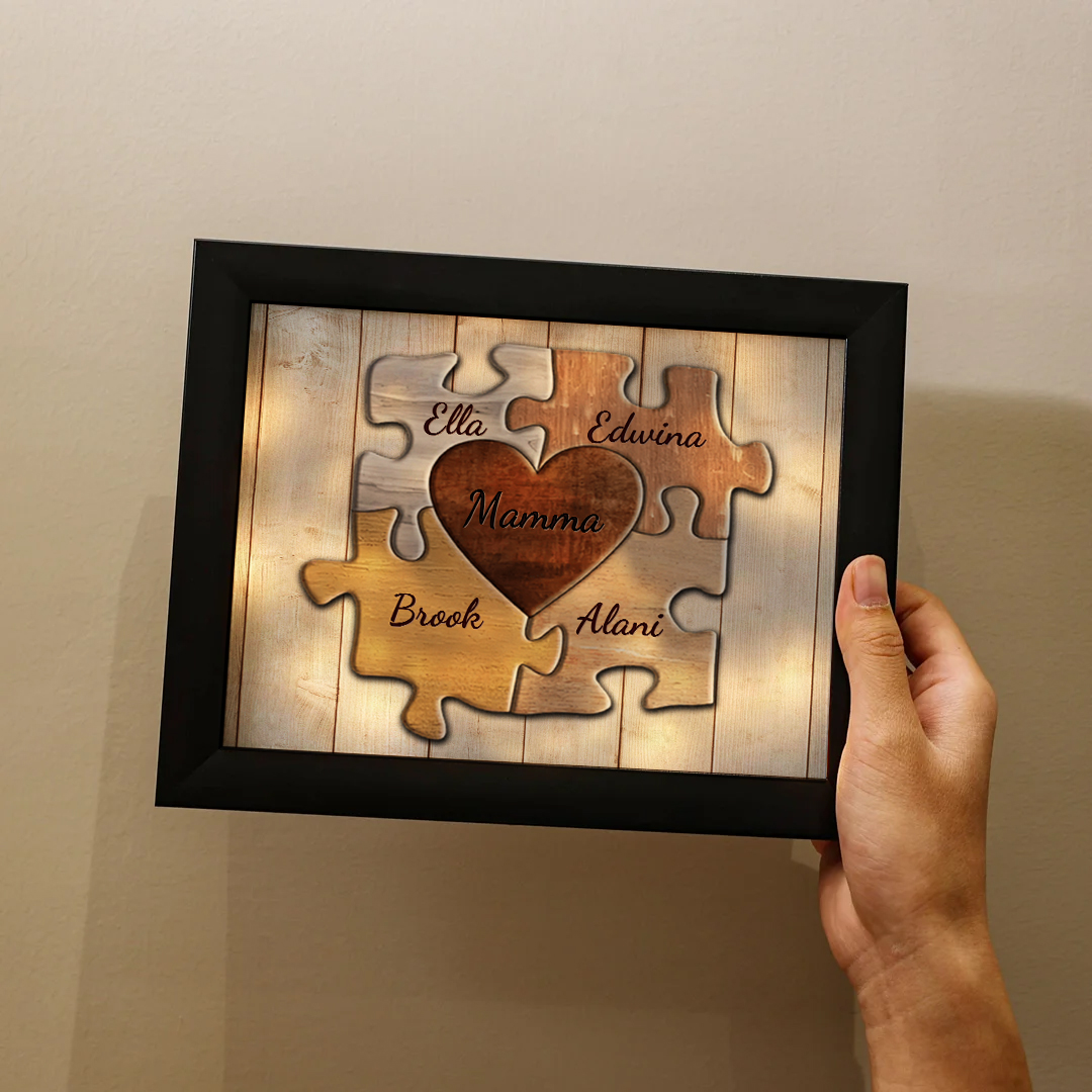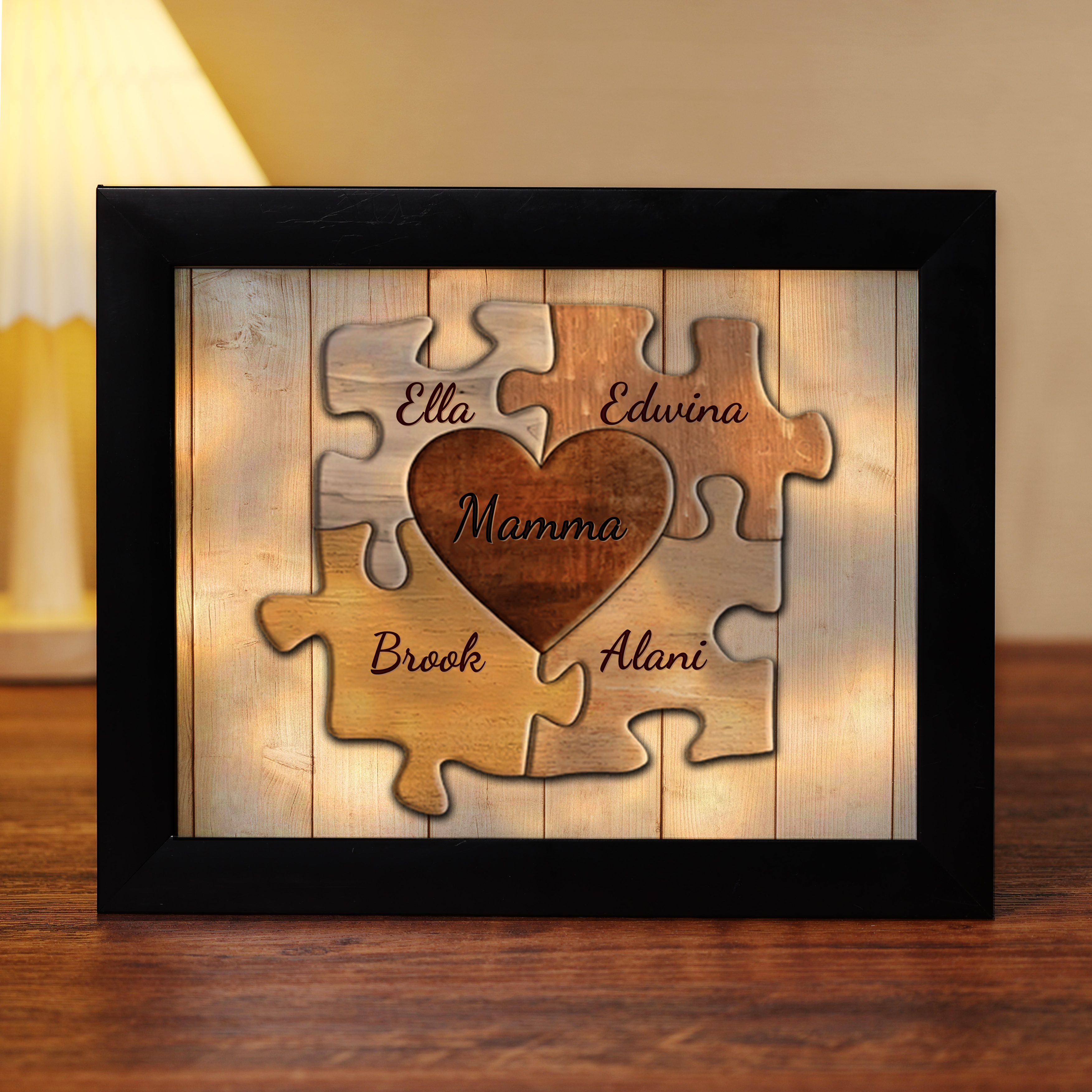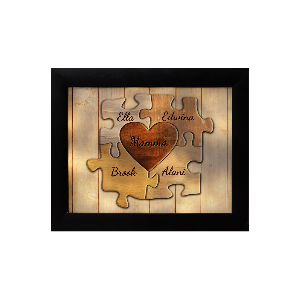 Mamma-Cornice con LED luce puzzle cuore 4 nomi e 1 testo personalizzati regalo per mamma