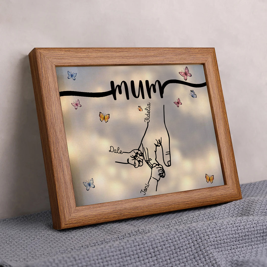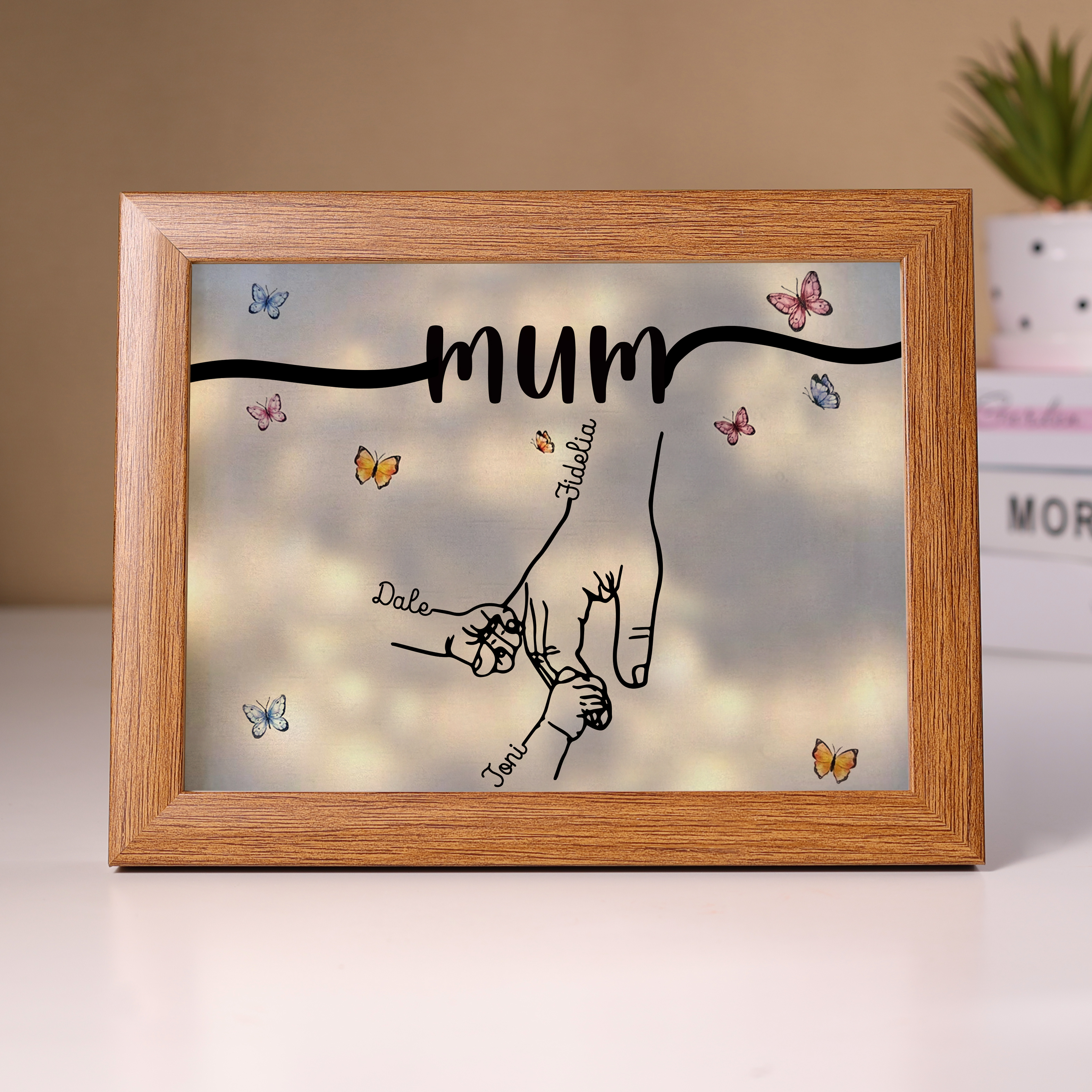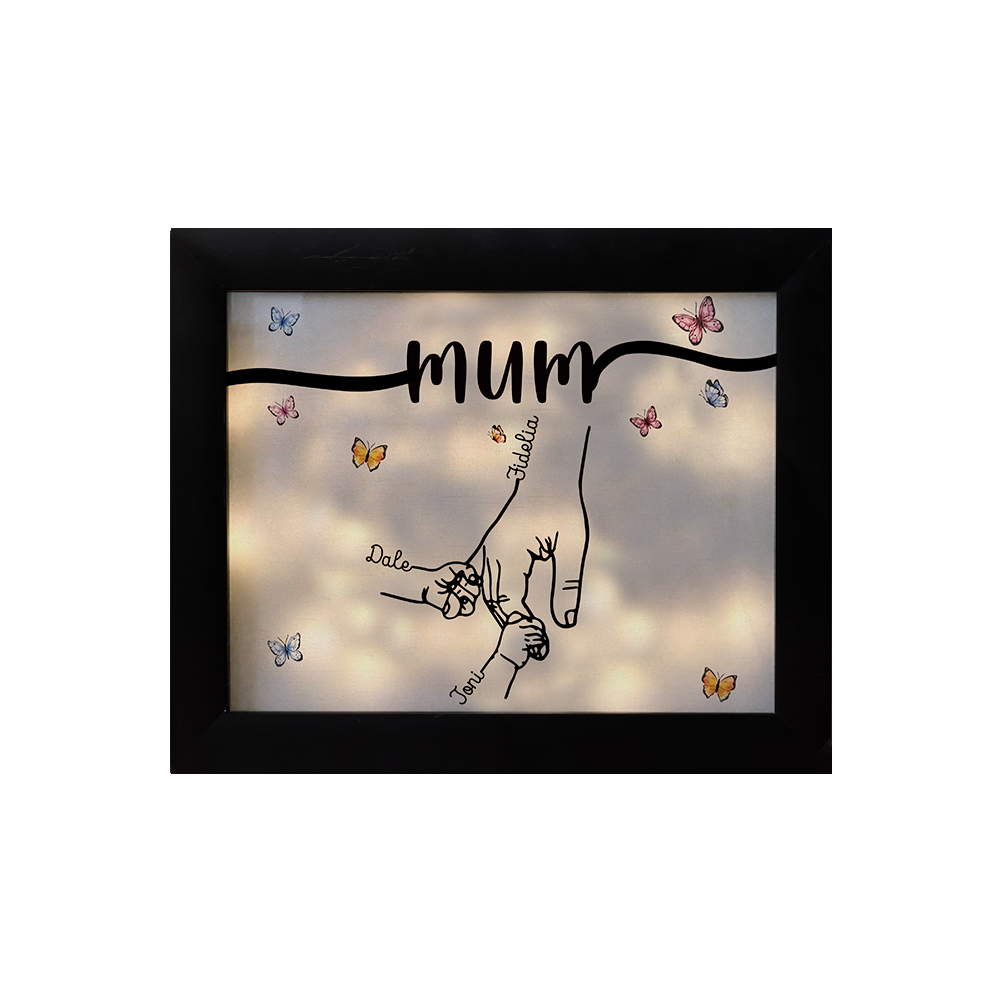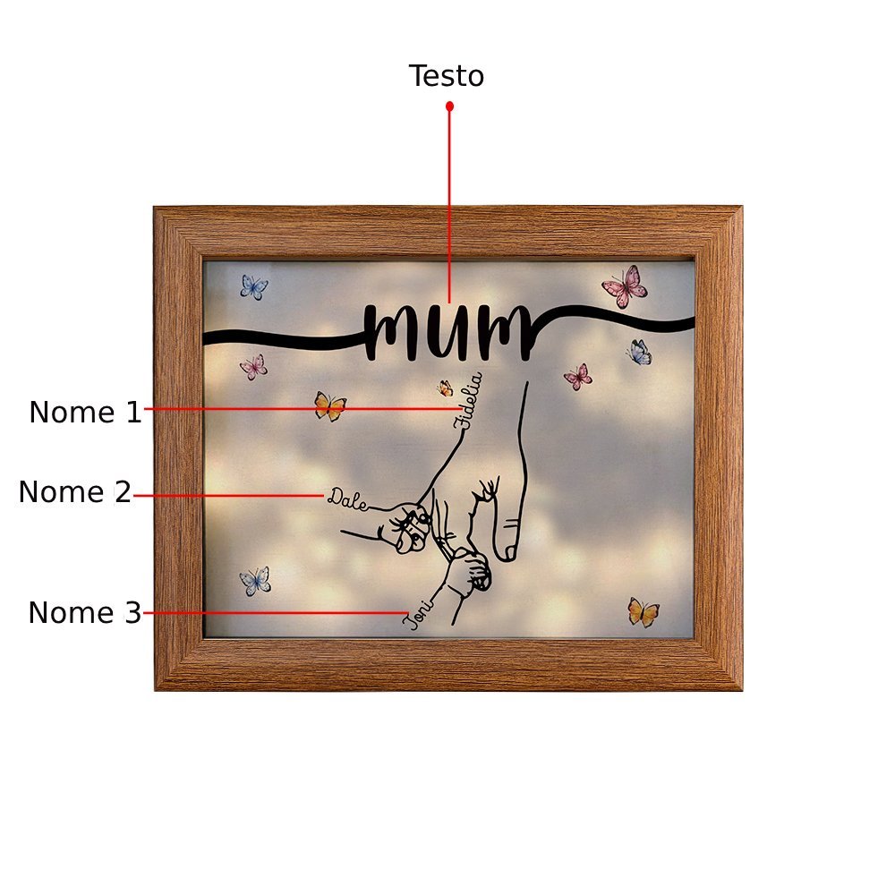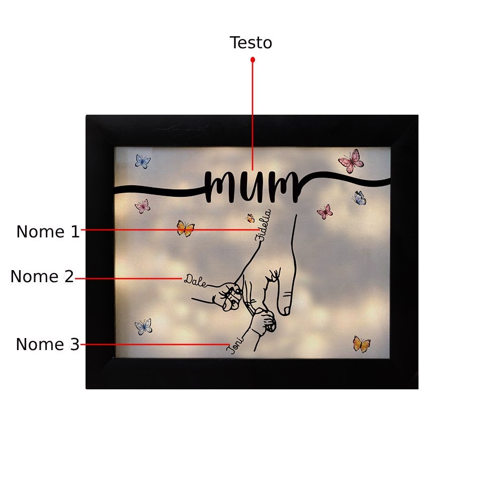 Mamma-Cornice con luce mano nella mano 3 nomi e 1 testo personalizzati regalo per mamma