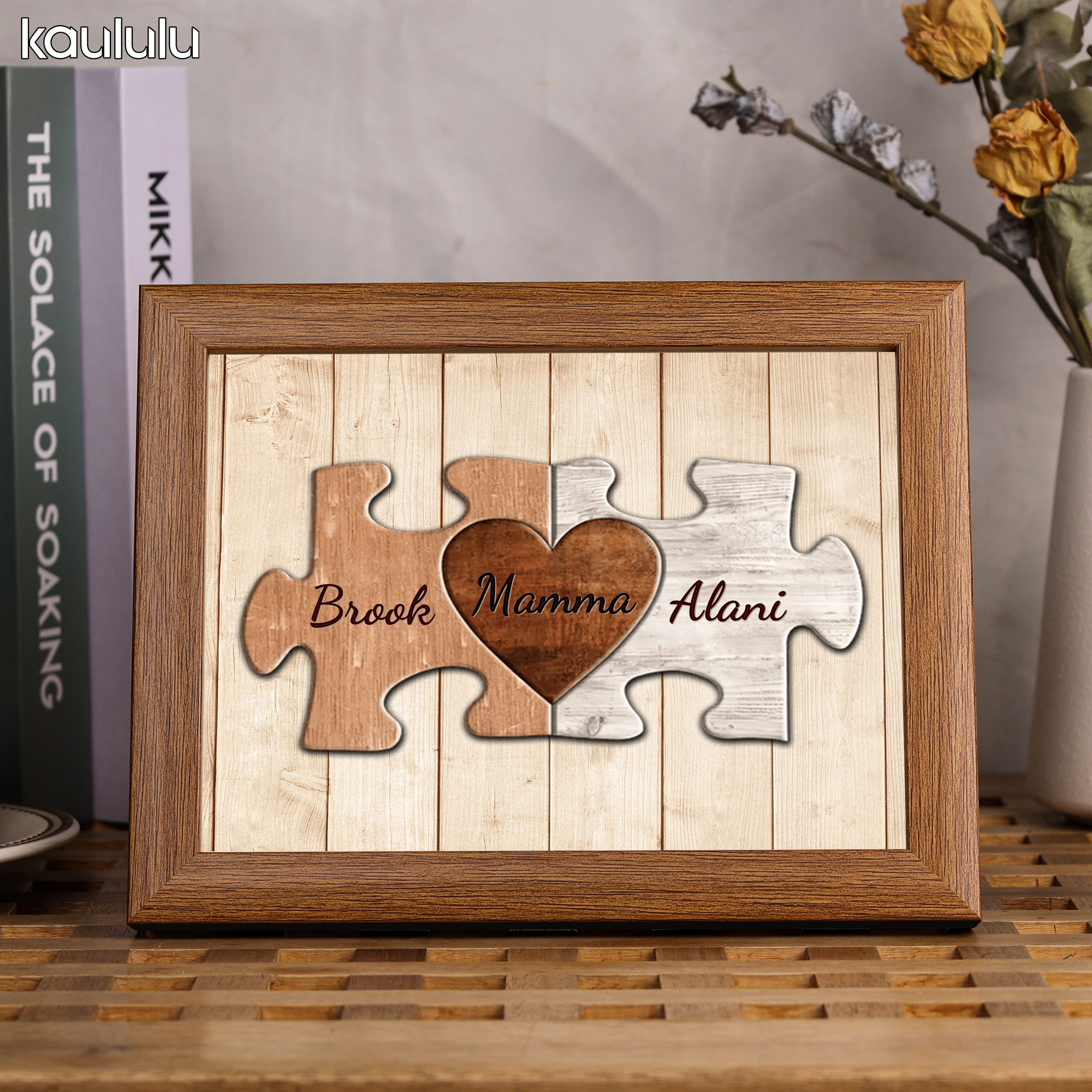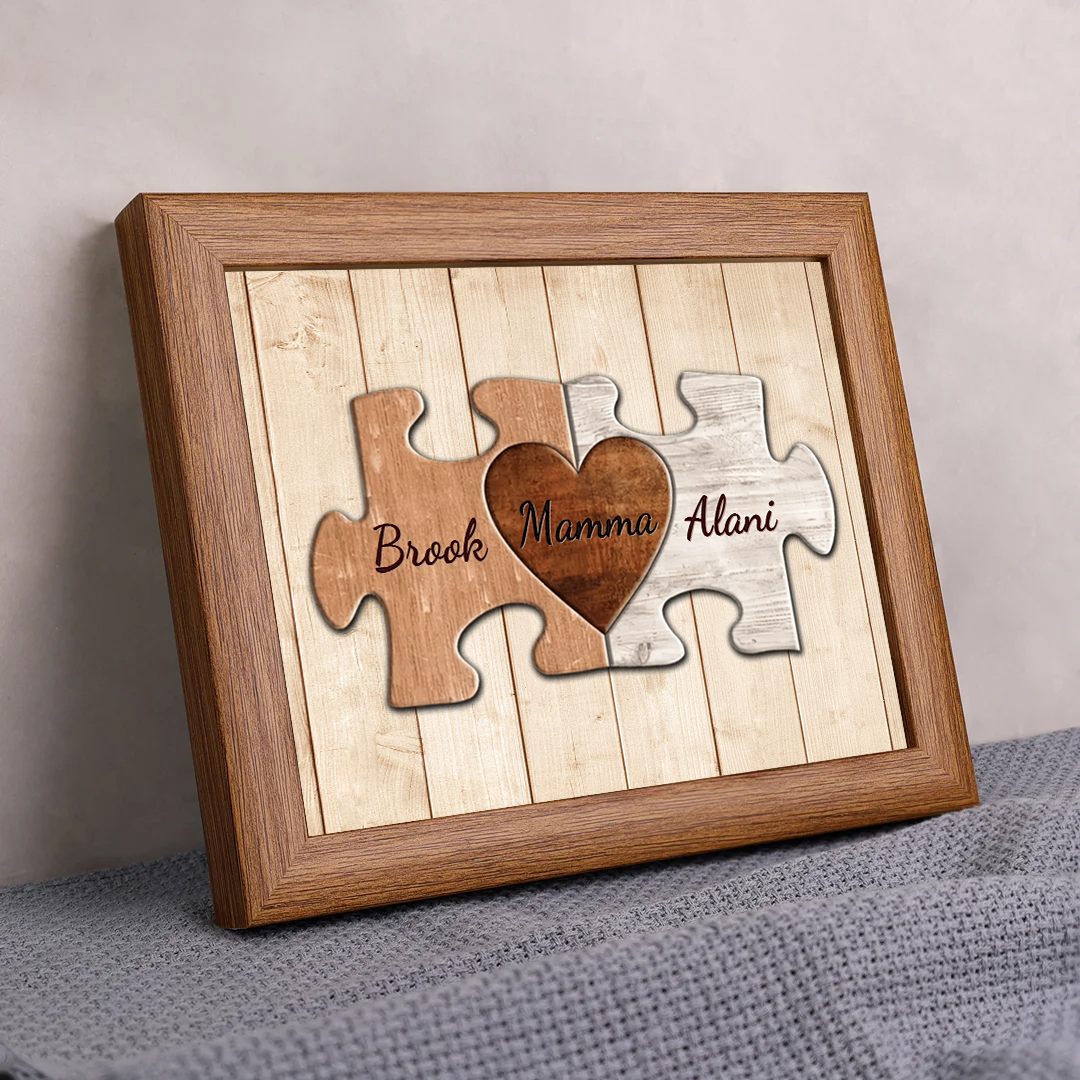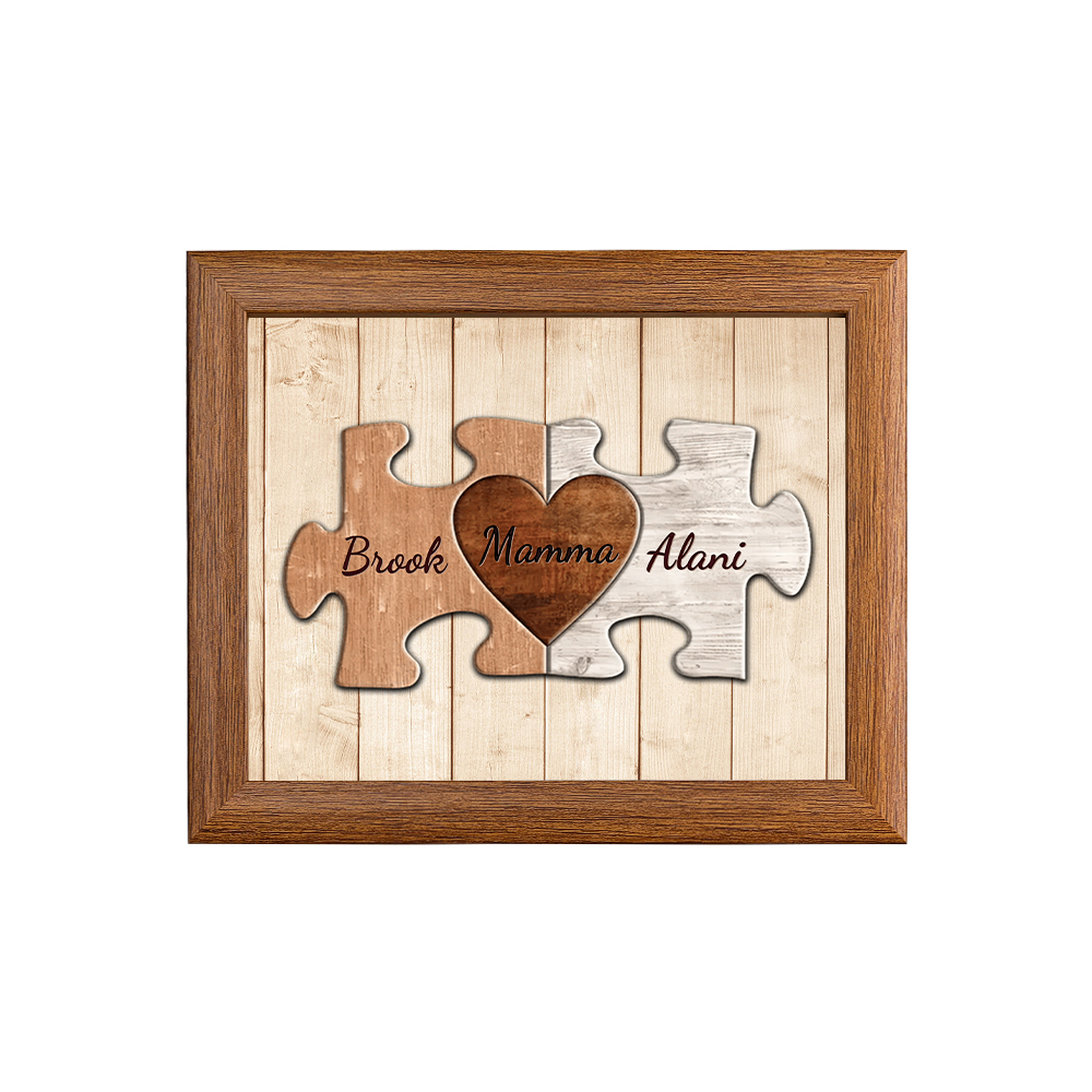 Mamma-Cornice puzzle cuore 2 nomi e 1 testo personalizzati regalo per mamma