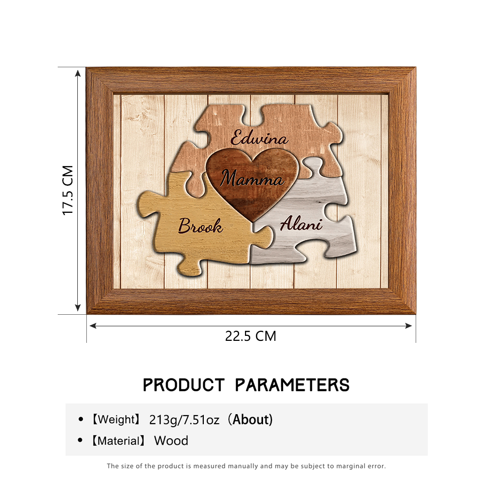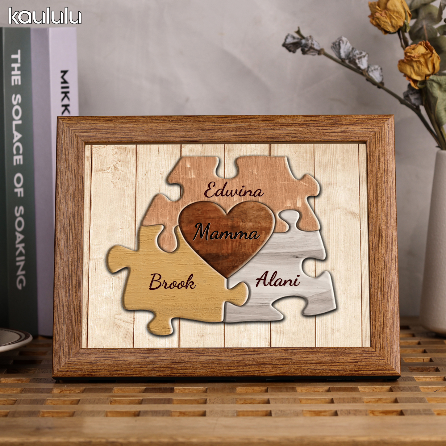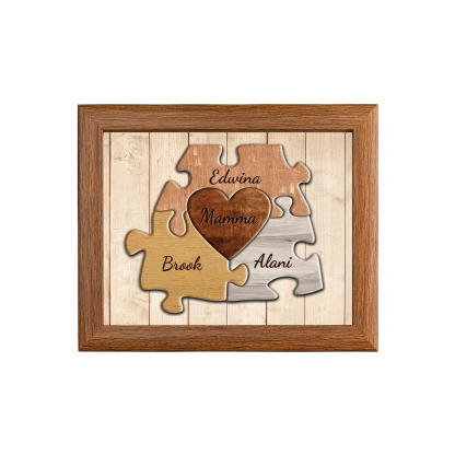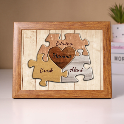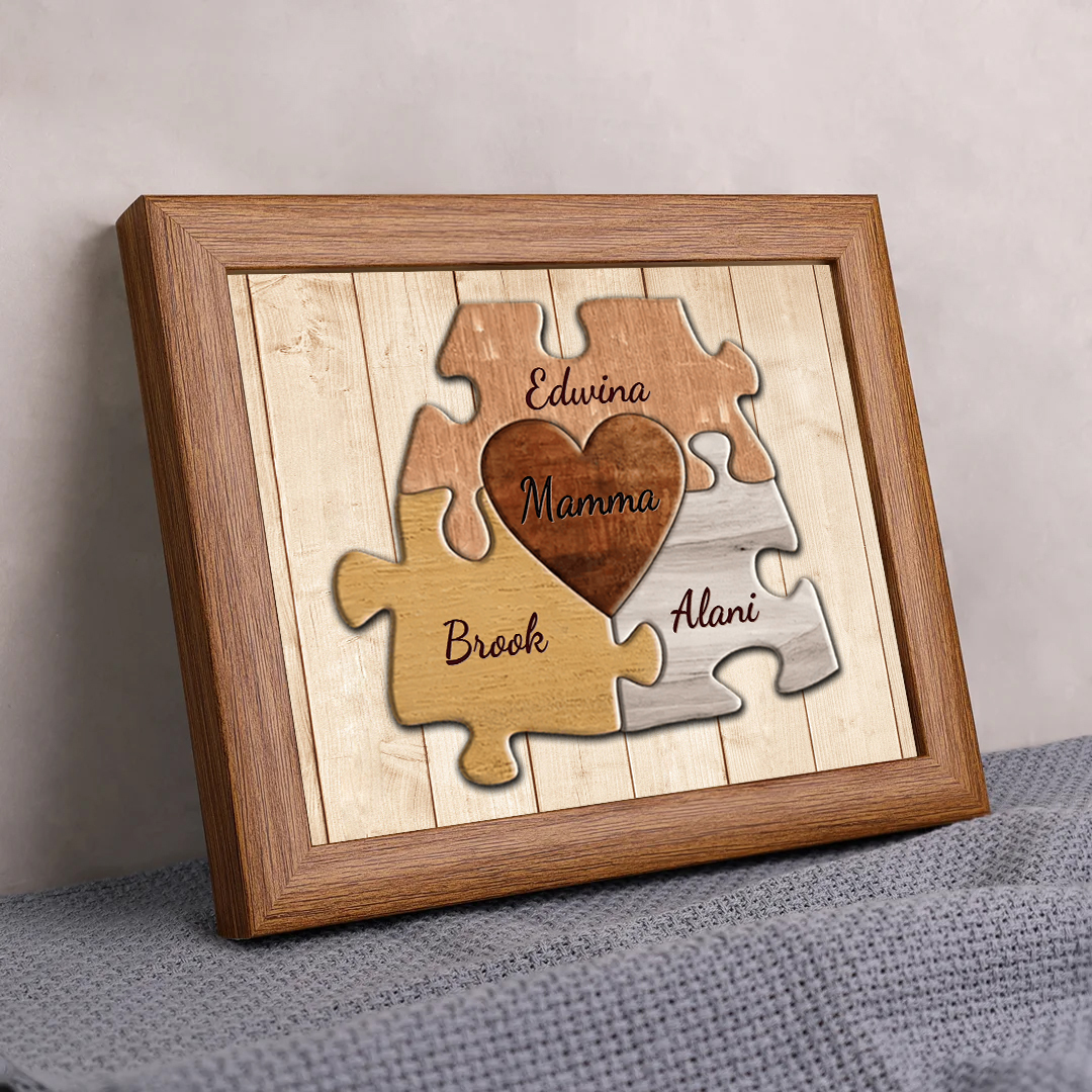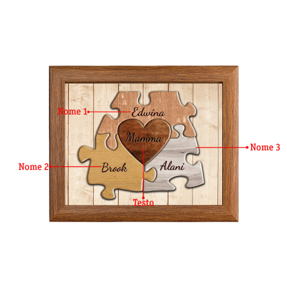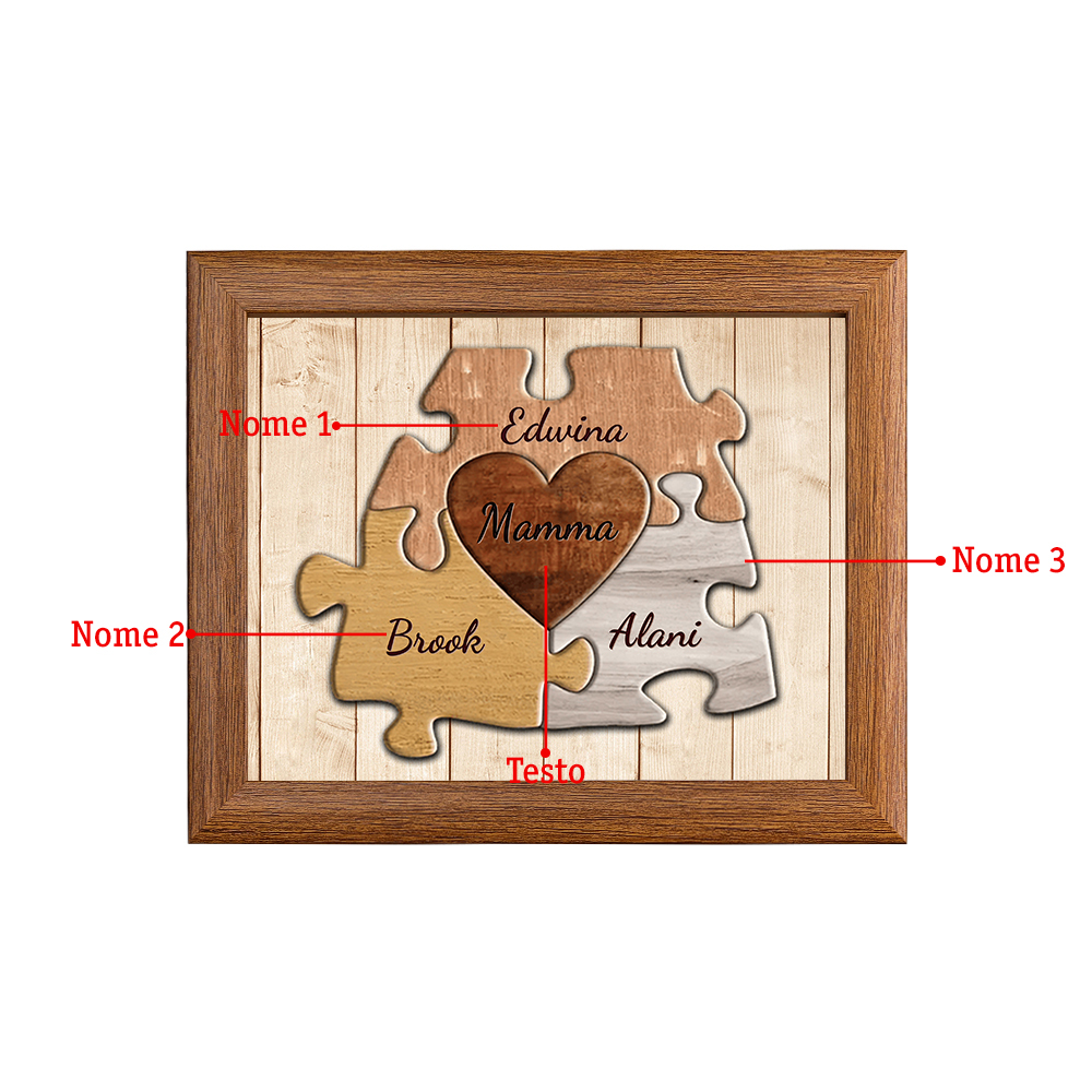 Mamma-Cornice puzzle cuore 3 nomi e 1 testo personalizzati regalo per mamma