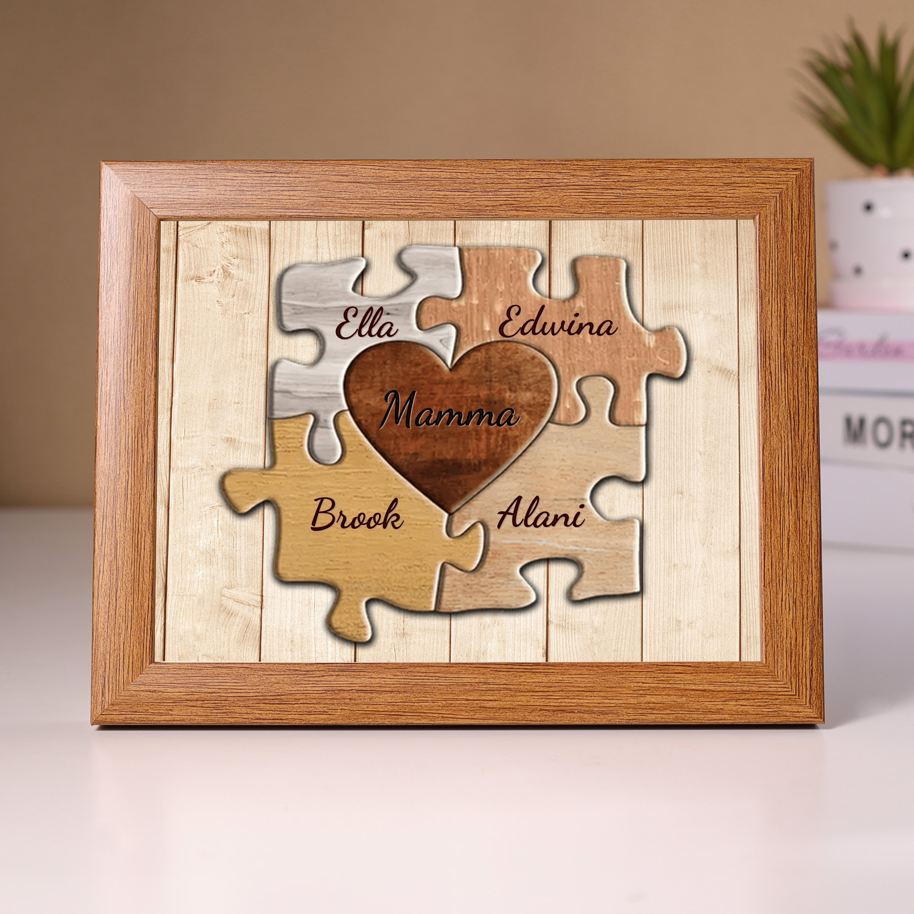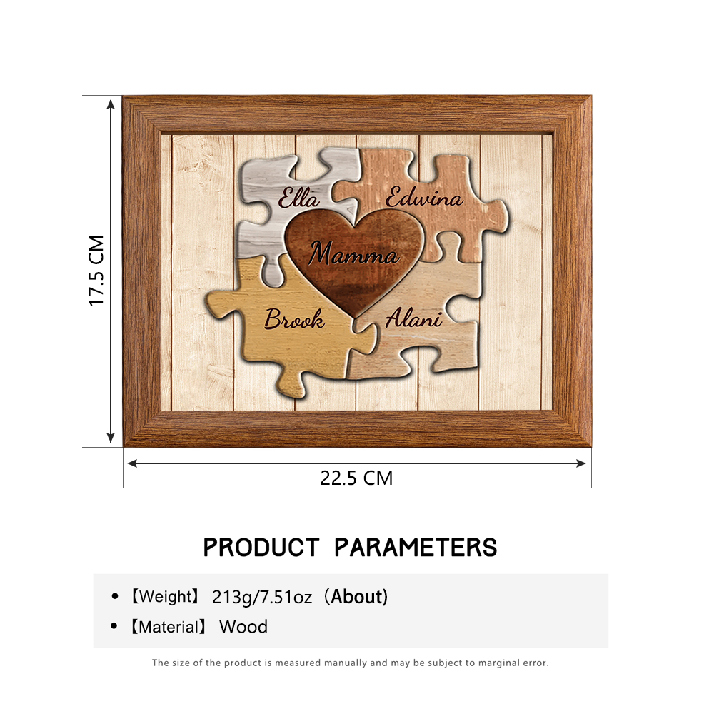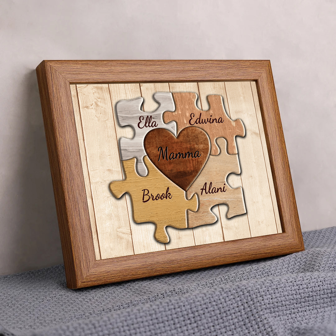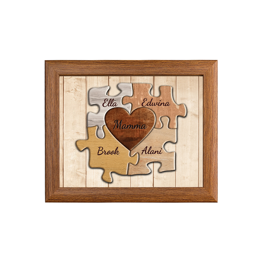 Mamma-Cornice puzzle cuore 4 nomi e 1 testo personalizzati regalo per mamma