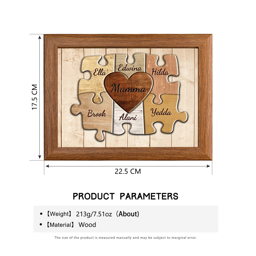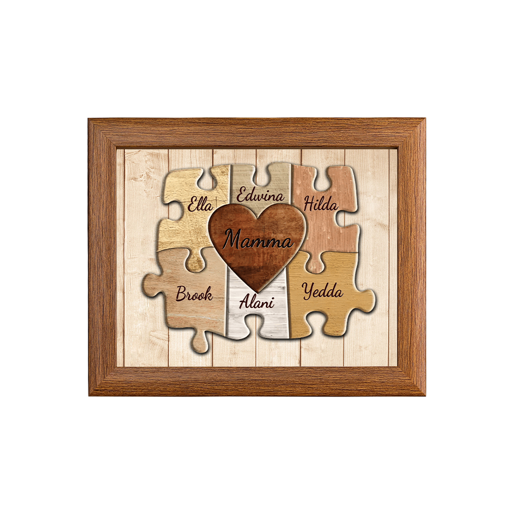 Mamma-Cornice puzzle cuore 6 nomi e 1 testo personalizzati regalo per mamma