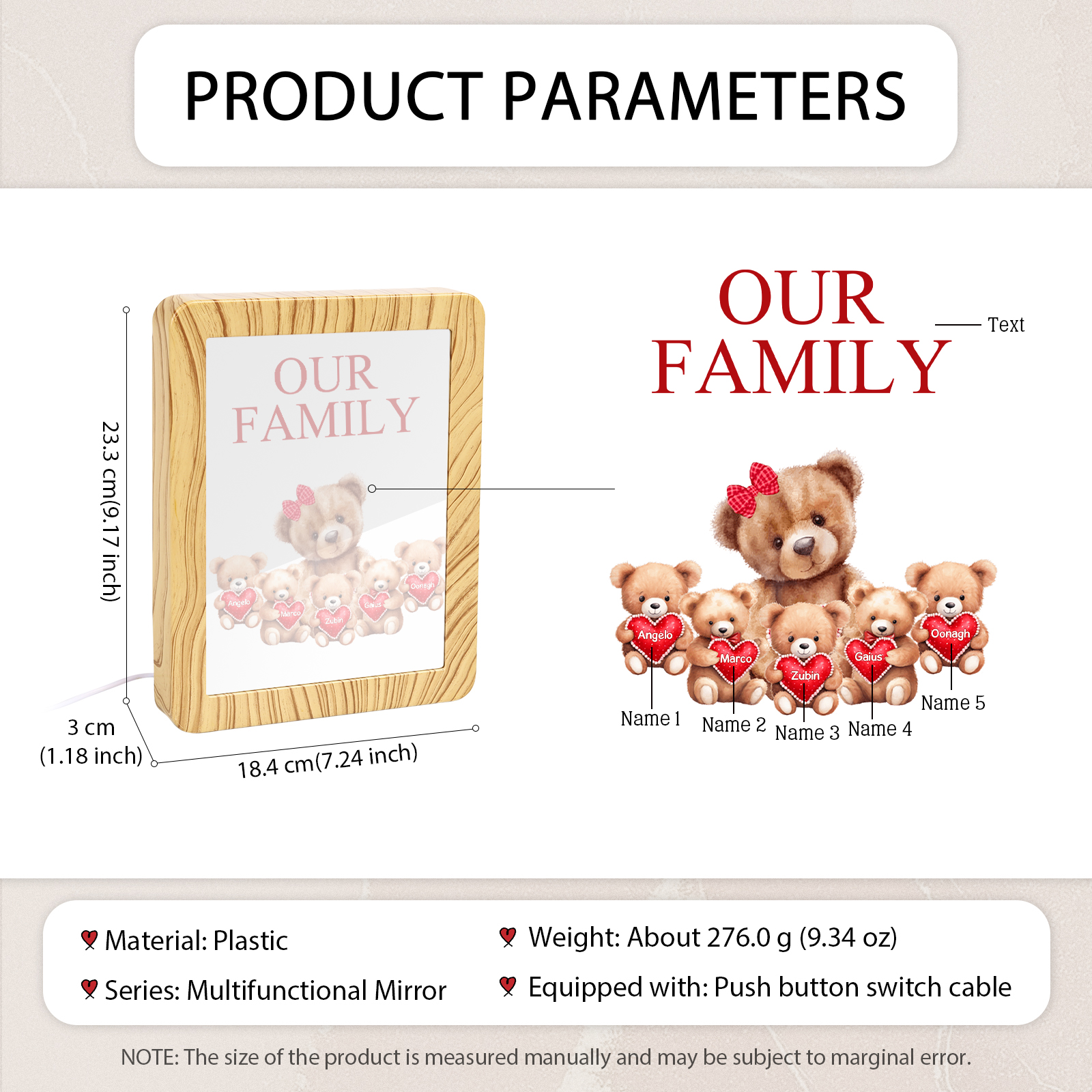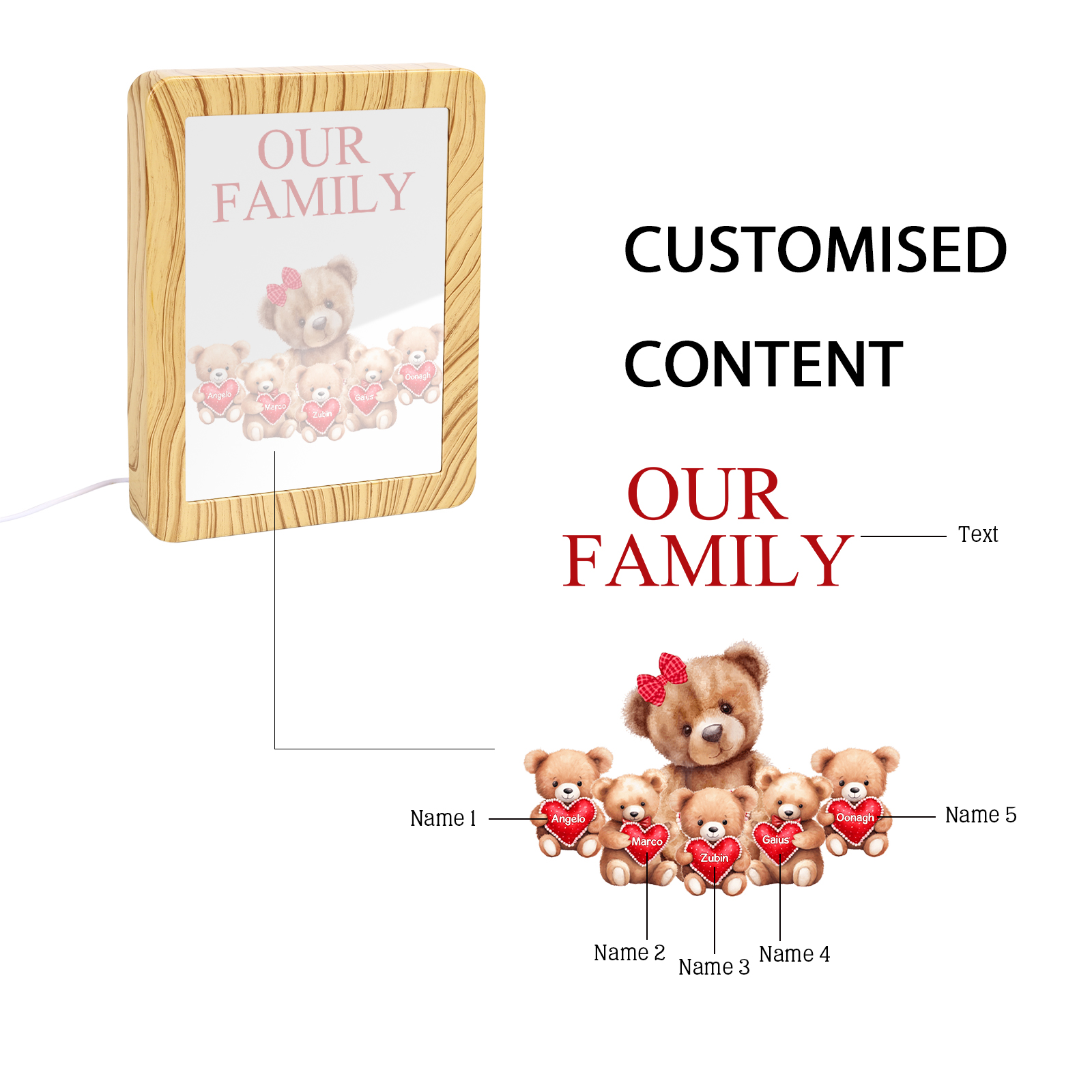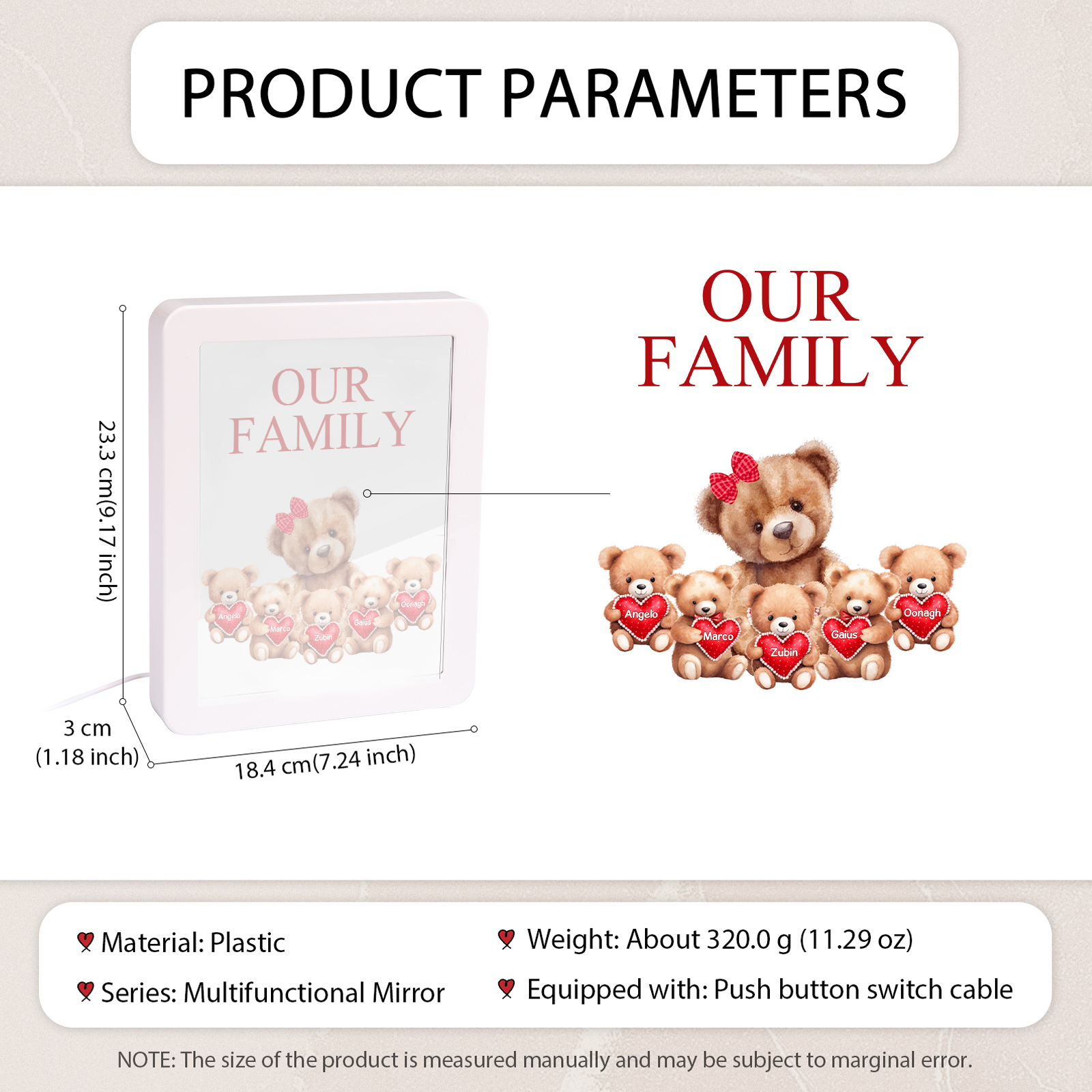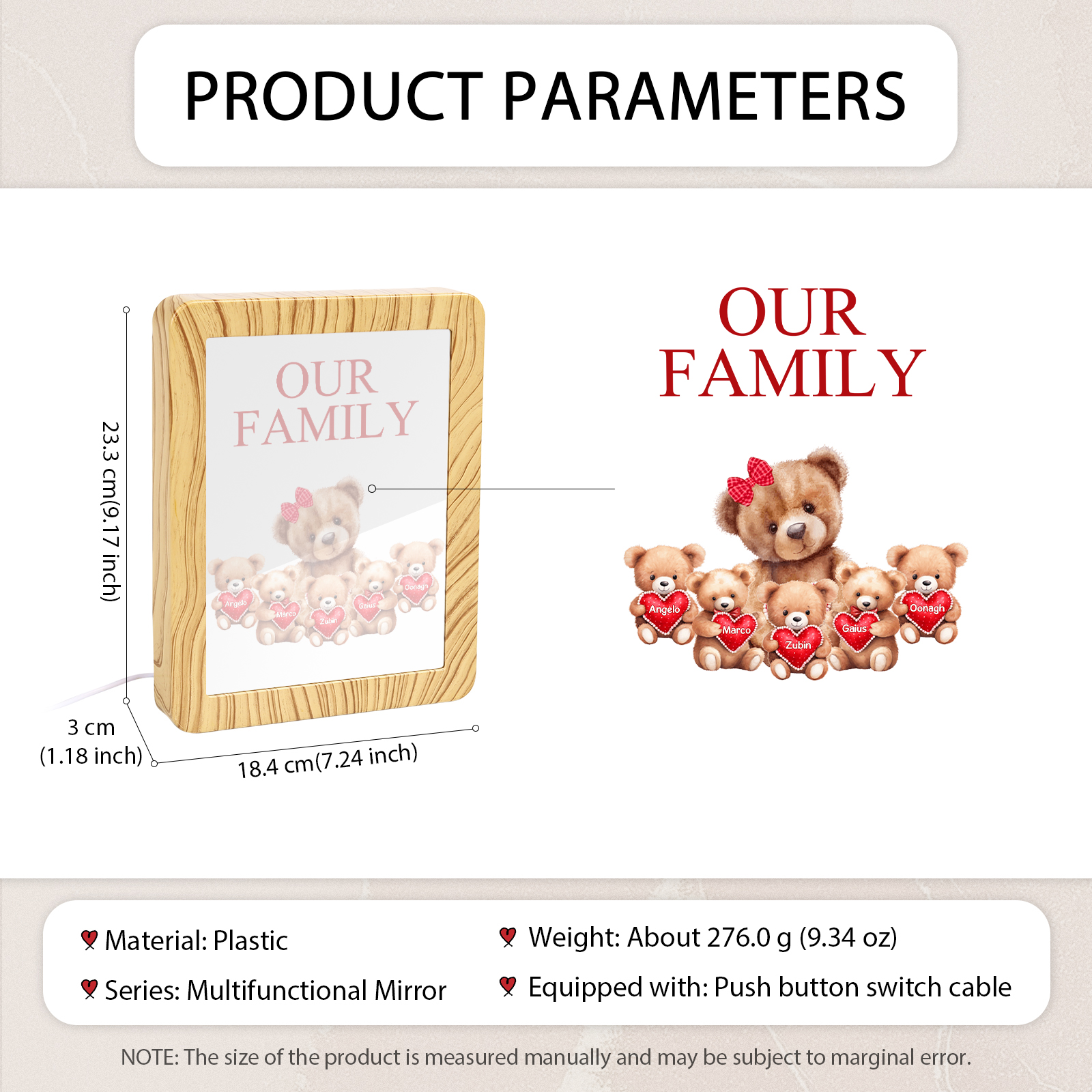 Mamma-Cornice verticale orsacchiotto con LED luce 5 nomi e 1 testo personalizzati anche usato come specchio