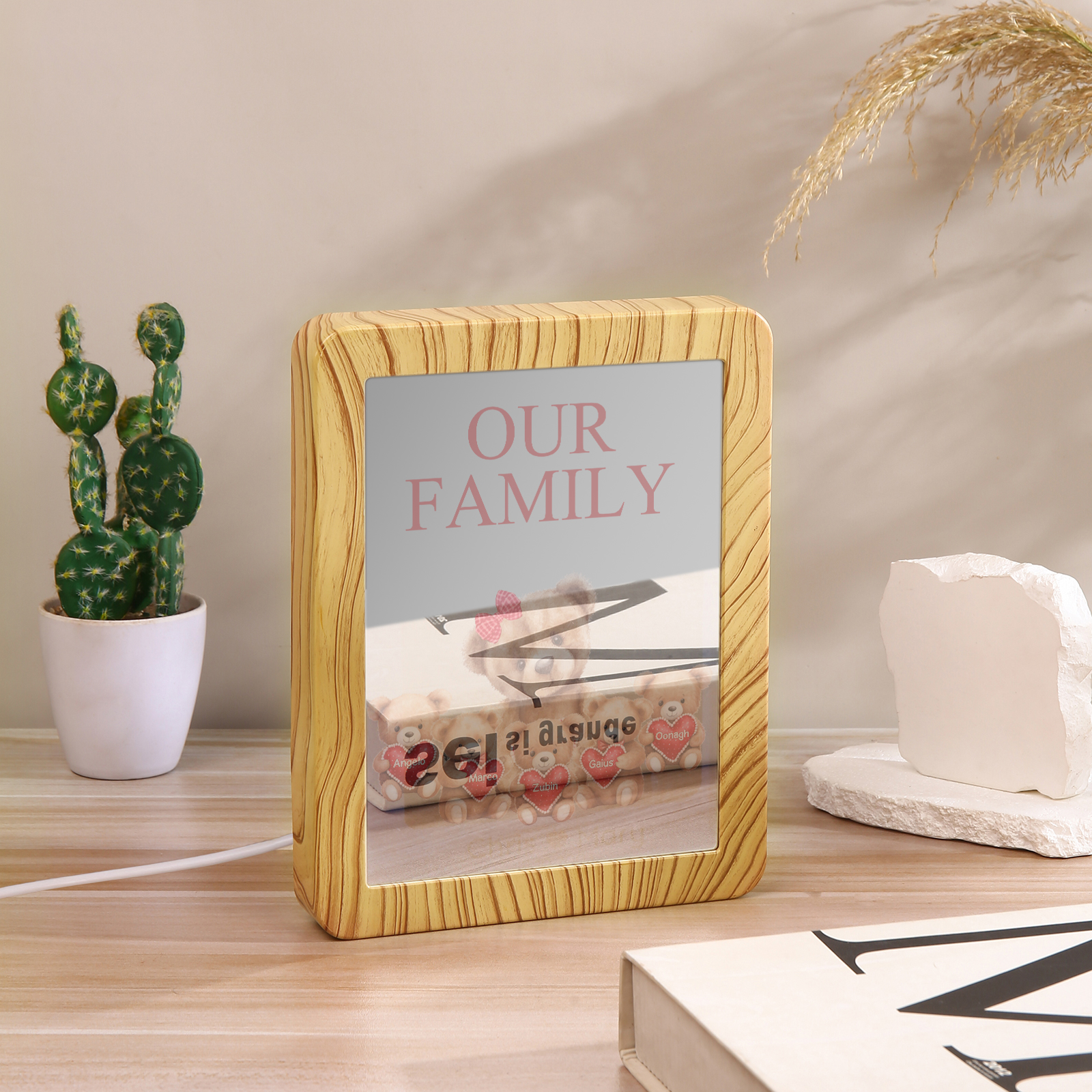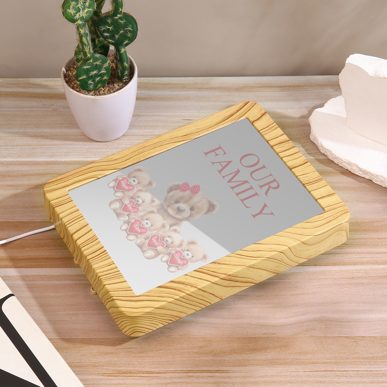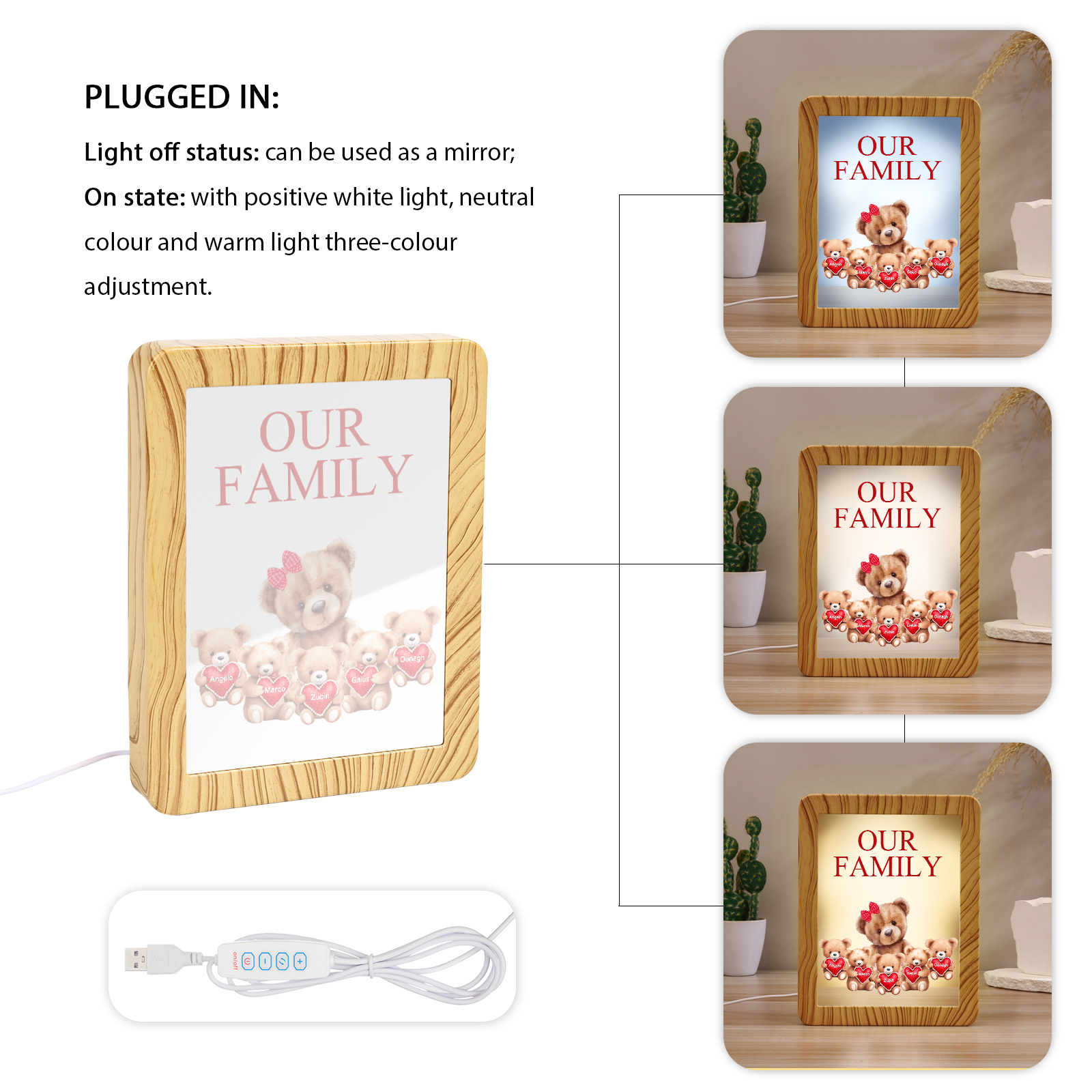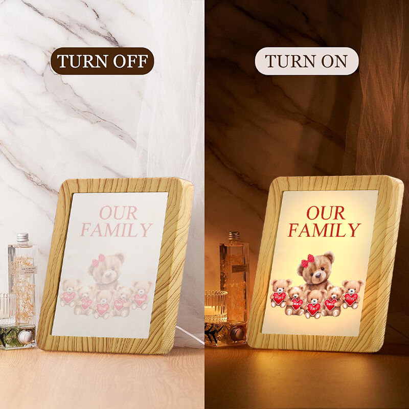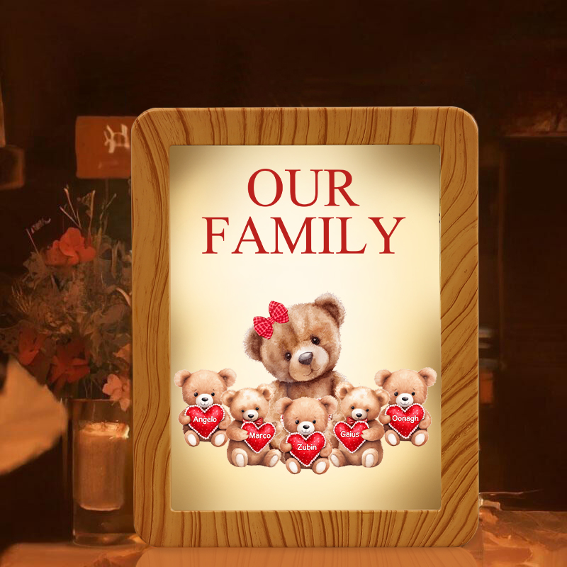 Mamma-Cornice verticale orsacchiotto con LED luce 5 nomi e 1 testo personalizzati anche usato come specchio